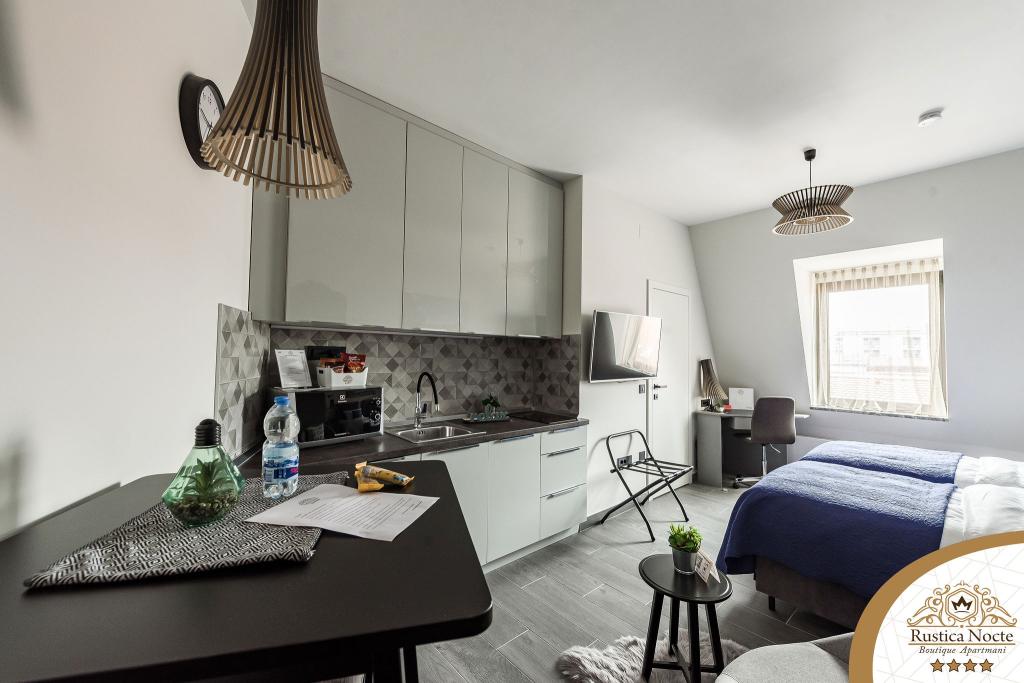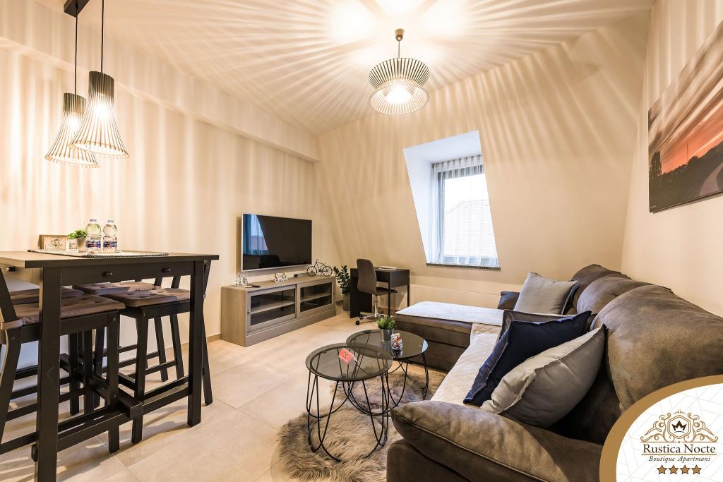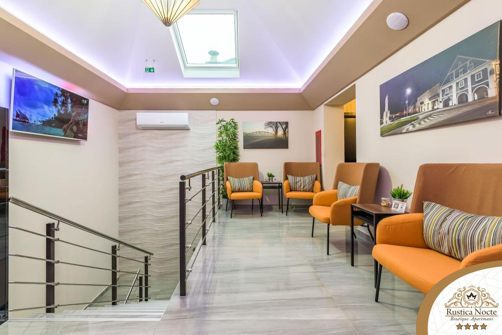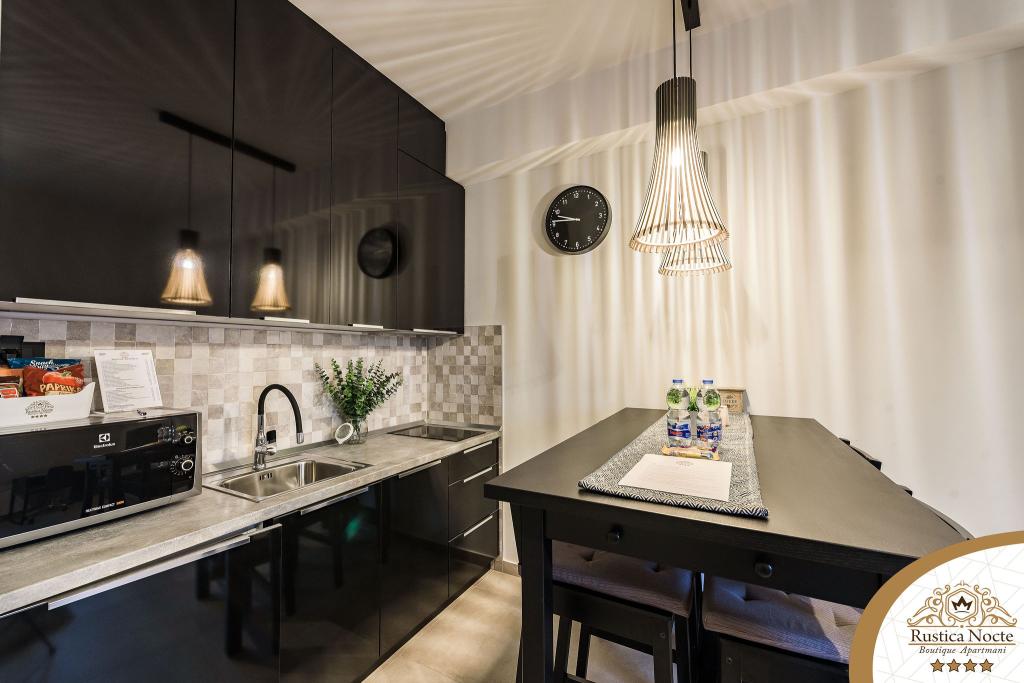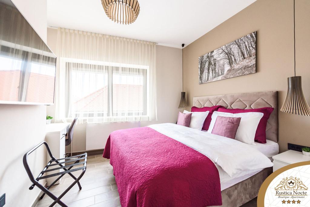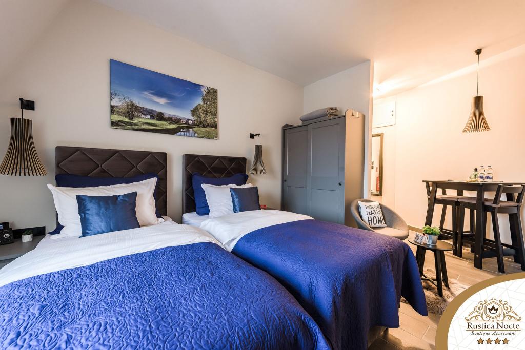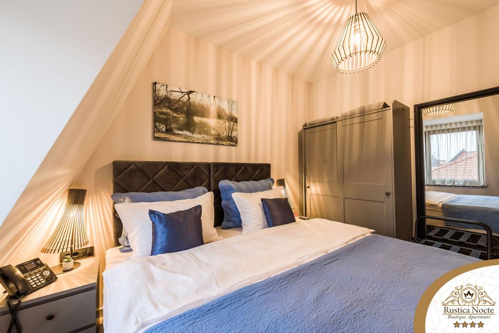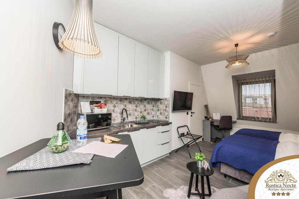 În chiar inima Slavoniei, la începutul zonei pietonale din Požega, apartamentele Rustica Nocte Boutique sunt locul perfect pentru o vacanță de vis. Pentru a vă face vacanța cât mai plăcută, apartamentele noastre moderne vă oferă dotări de cea mai bună calitate, și dorim în special să evidențiem sistemul de management inteligent pentru întregul apartament, Wi-Fi gratuit de mare viteză și Internet prin cablu și wireless, Paturi boxspring king size, seifuri digitale, televizoare ultra HD Ambilight Receptoare TV de 50 inch cu Netflix, programe prin satelit și locale și iluminare LED Ambilight la ferestre, băi ventilate și încălzite și bucătării complet echipate în fiecare dintre apartamente. Fiecare apartament include, de asemenea, un minibar cu băuturi nealcoolice și alcoolice și gustări. Apartamentele au și un colț pentru copii cu mese, jucării, cărți de colorat și saltele de joacă. Cu toate acestea, vă puteți planifica vacanța foarte fără griji.