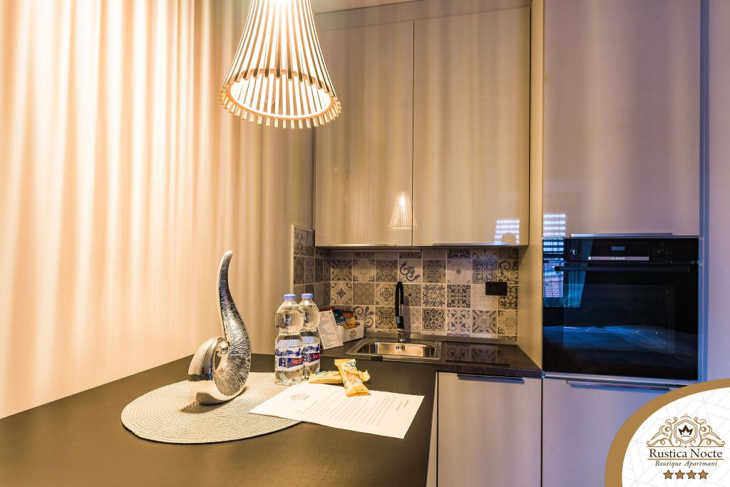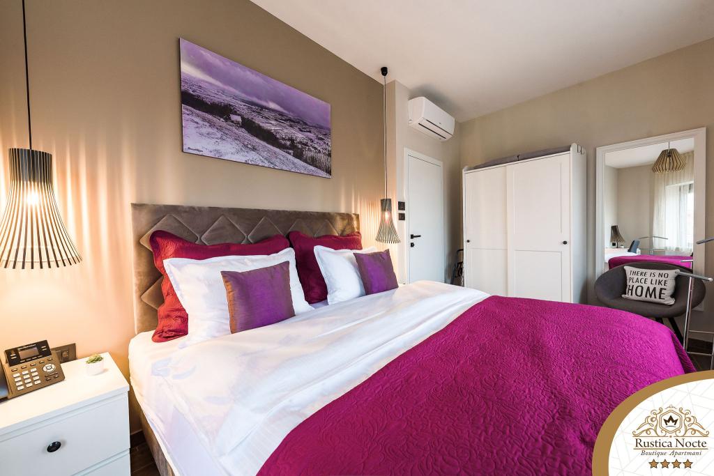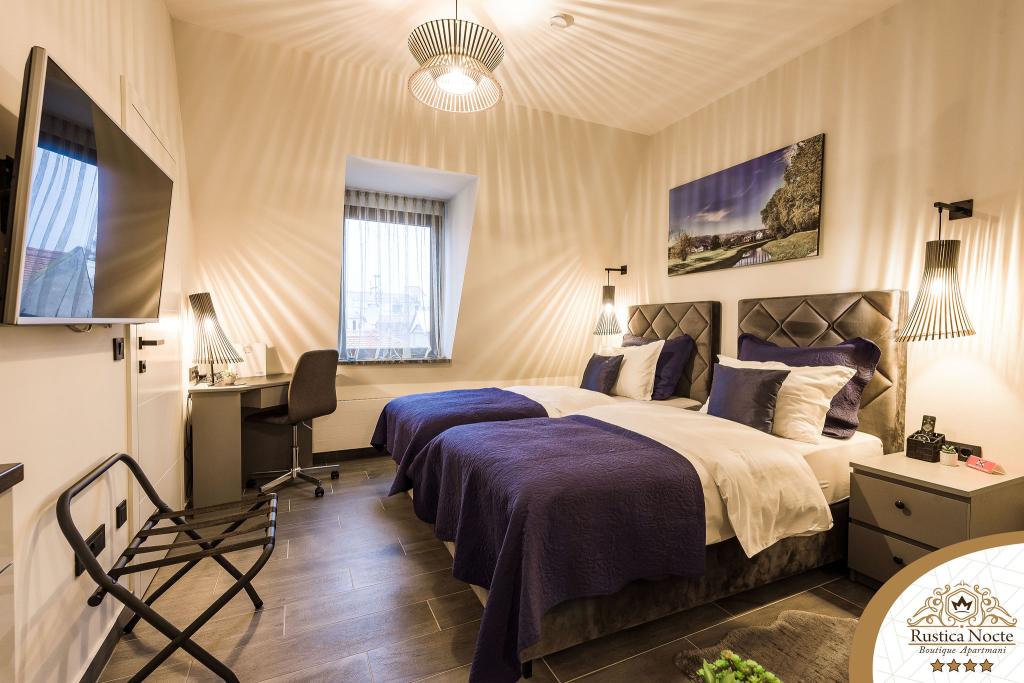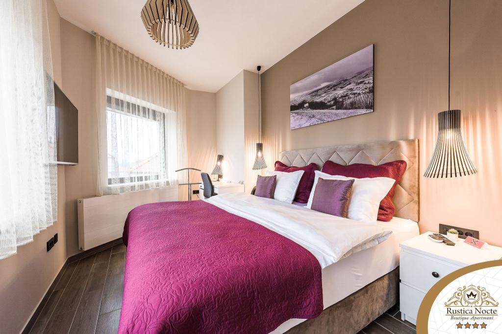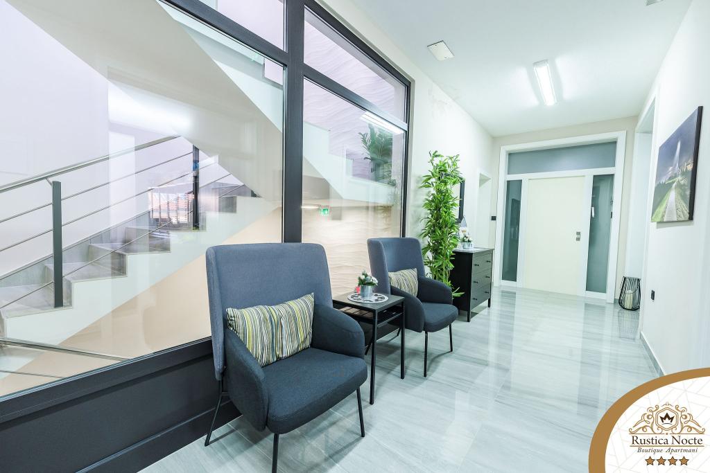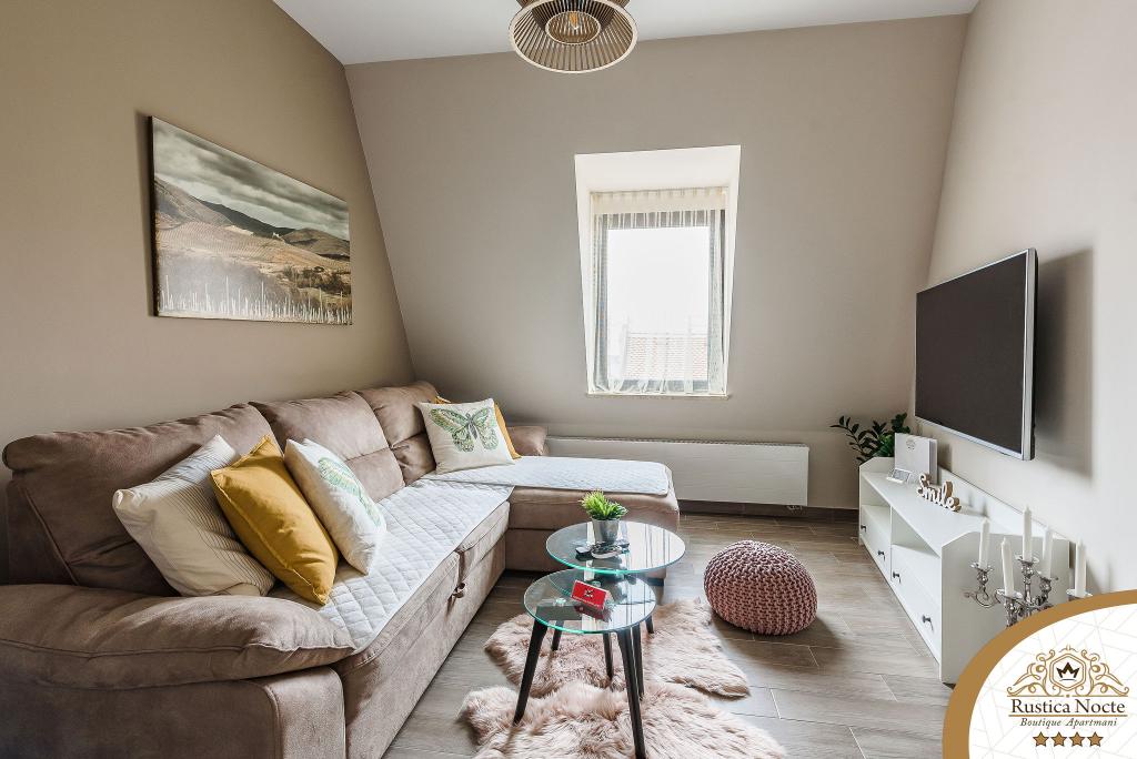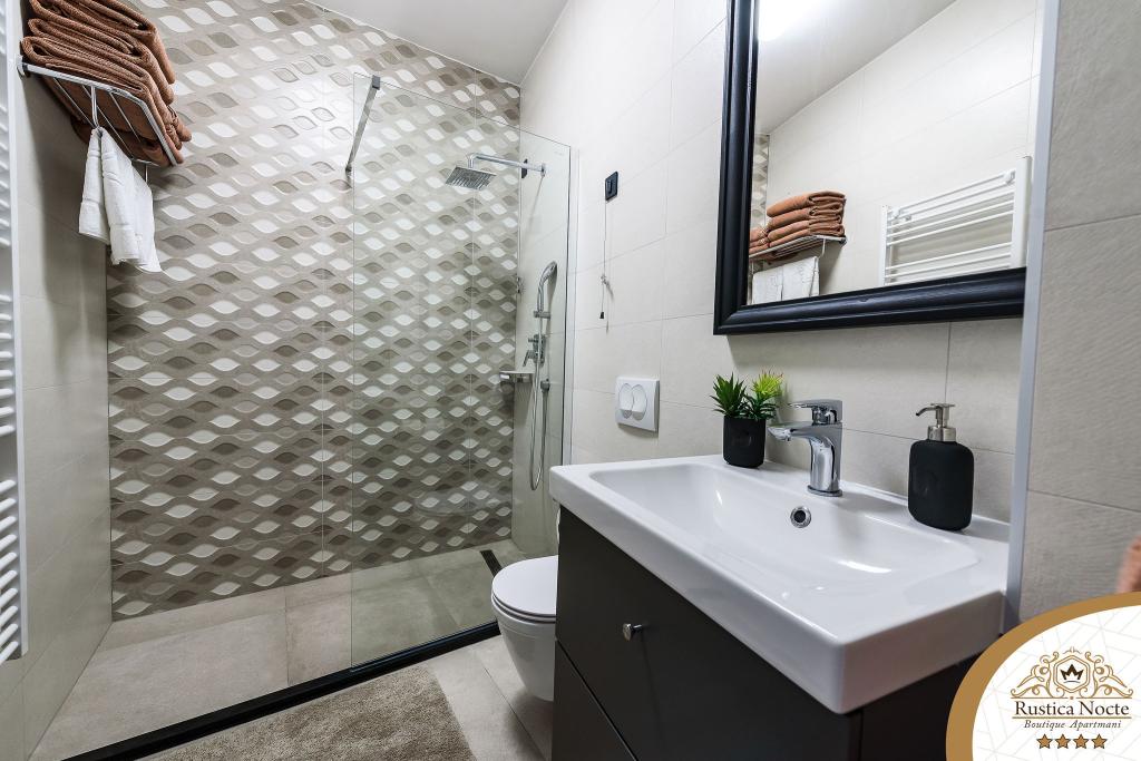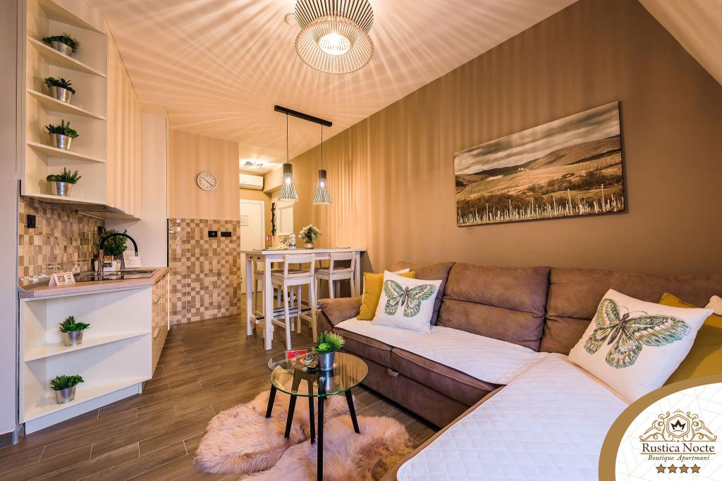 În chiar inima Slavoniei, la începutul zonei pietonale din Požega, apartamentele Rustica Nocte Boutique sunt locul perfect pentru o vacanță de vis. Pentru a vă face vacanța cât mai plăcută, apartamentele noastre moderne vă oferă dotări de cea mai bună calitate, și dorim în special să evidențiem sistemul de management inteligent pentru întregul apartament, Wi-Fi gratuit de mare viteză și Internet prin cablu și wireless, Paturi boxspring king size, seifuri digitale, televizoare ultra HD Ambilight Receptoare TV de 50 inch cu Netflix, programe prin satelit și locale și iluminare LED Ambilight la ferestre, băi ventilate și încălzite și bucătării complet echipate în fiecare dintre apartamente. Fiecare apartament include, de asemenea, un minibar cu băuturi nealcoolice și alcoolice și gustări. Apartamentele au și un colț pentru copii cu mese, jucării, cărți de colorat și saltele de joacă. Cu toate acestea, vă puteți planifica vacanța foarte fără griji.