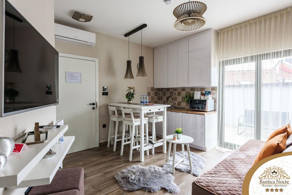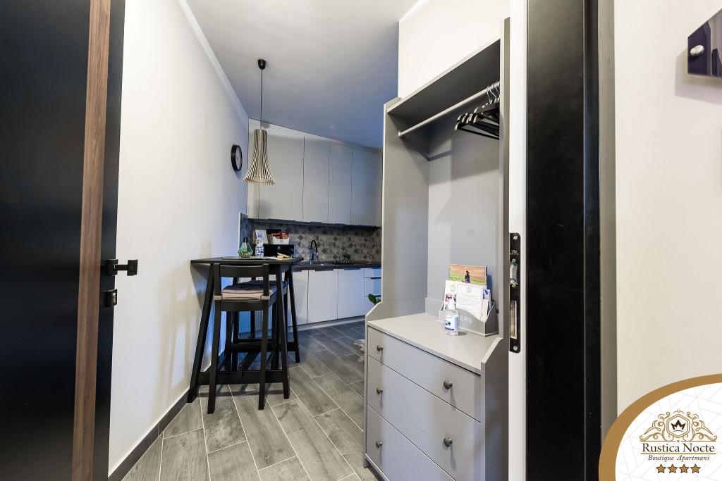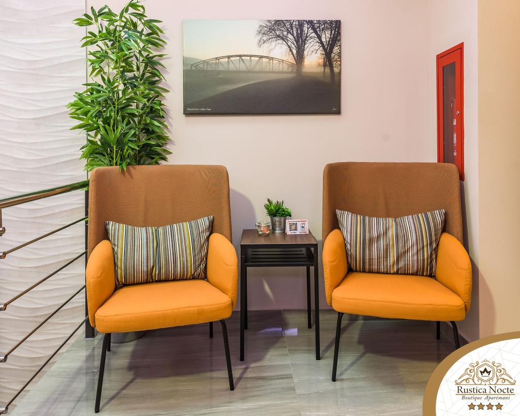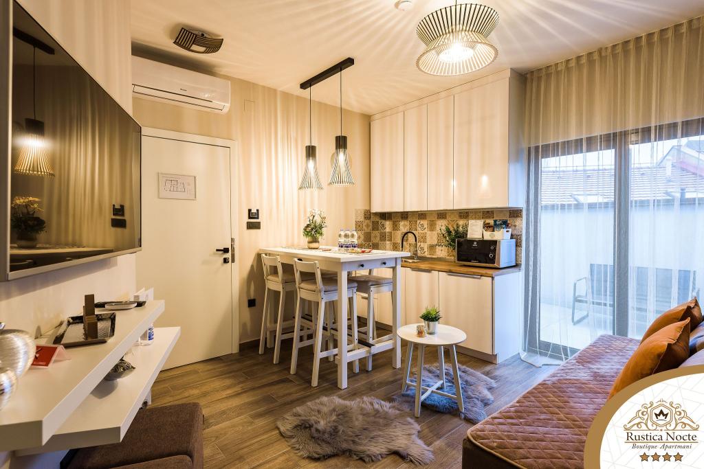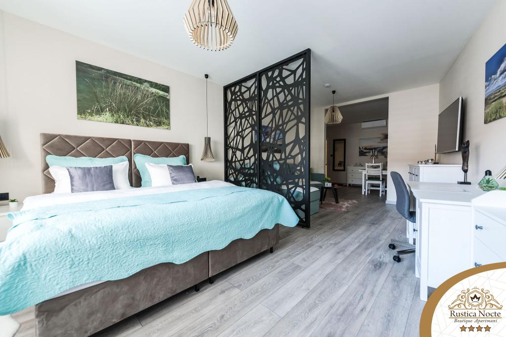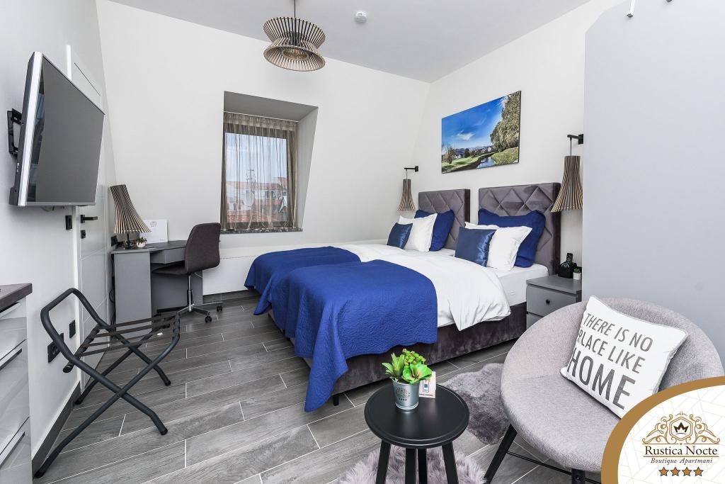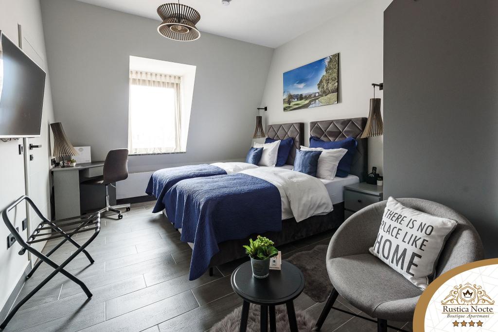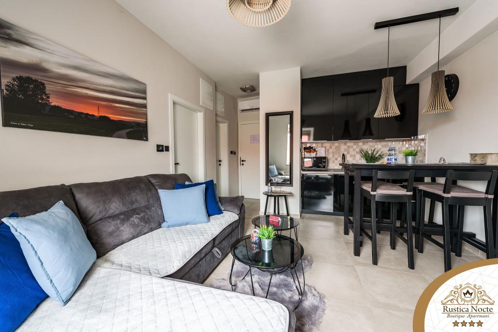 În chiar inima Slavoniei, la începutul zonei pietonale din Požega, apartamentele Rustica Nocte Boutique sunt locul perfect pentru o vacanță de vis. Pentru a vă face vacanța cât mai plăcută, apartamentele noastre moderne vă oferă dotări de cea mai bună calitate, și dorim în special să evidențiem sistemul de management inteligent pentru întregul apartament, Wi-Fi gratuit de mare viteză și Internet prin cablu și wireless, Paturi boxspring king size, seifuri digitale, televizoare ultra HD Ambilight Receptoare TV de 50 inch cu Netflix, programe prin satelit și locale și iluminare LED Ambilight la ferestre, băi ventilate și încălzite și bucătării complet echipate în fiecare dintre apartamente. Fiecare apartament include, de asemenea, un minibar cu băuturi nealcoolice și alcoolice și gustări. Apartamentele au și un colț pentru copii cu mese, jucării, cărți de colorat și saltele de joacă. Cu toate acestea, vă puteți planifica vacanța foarte fără griji.