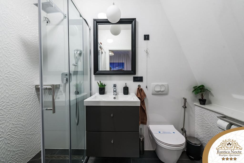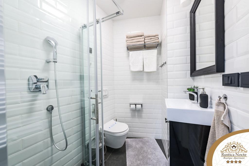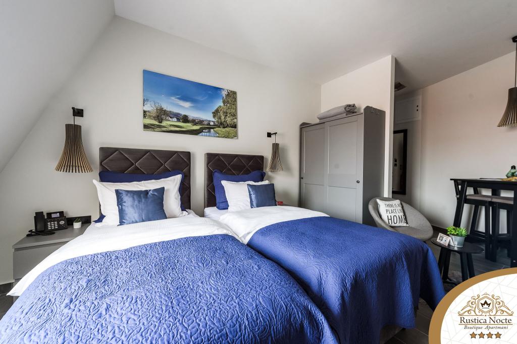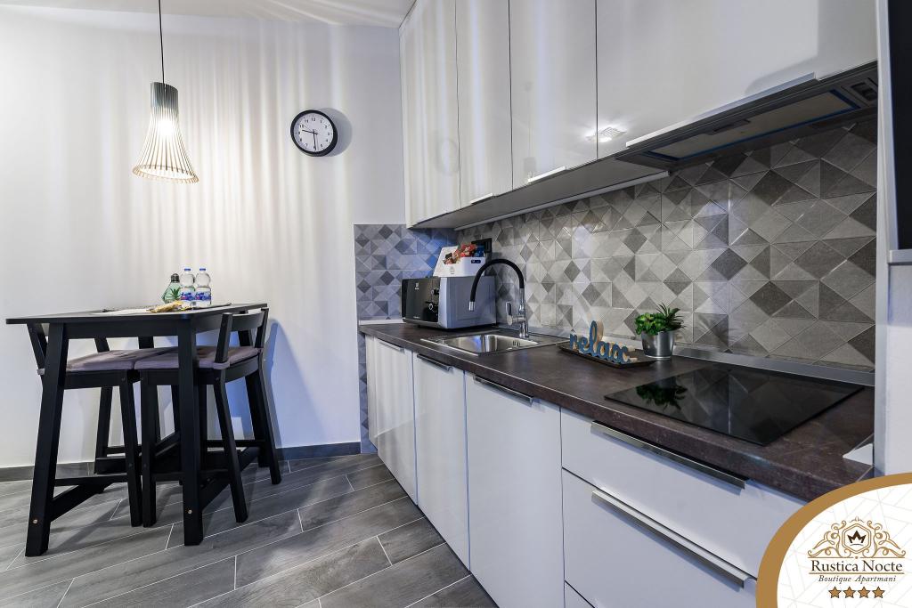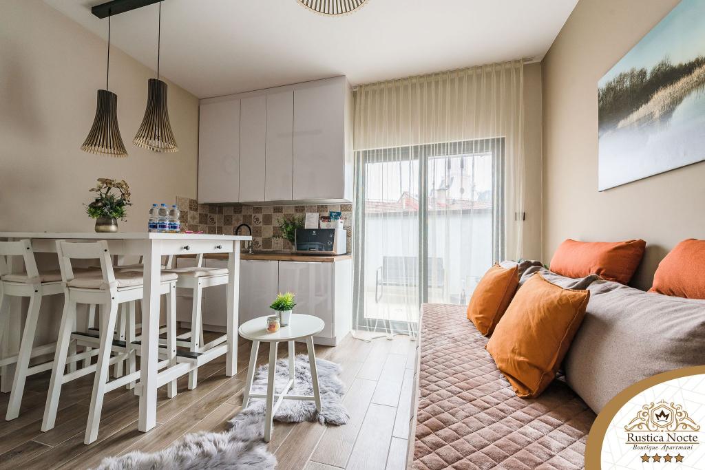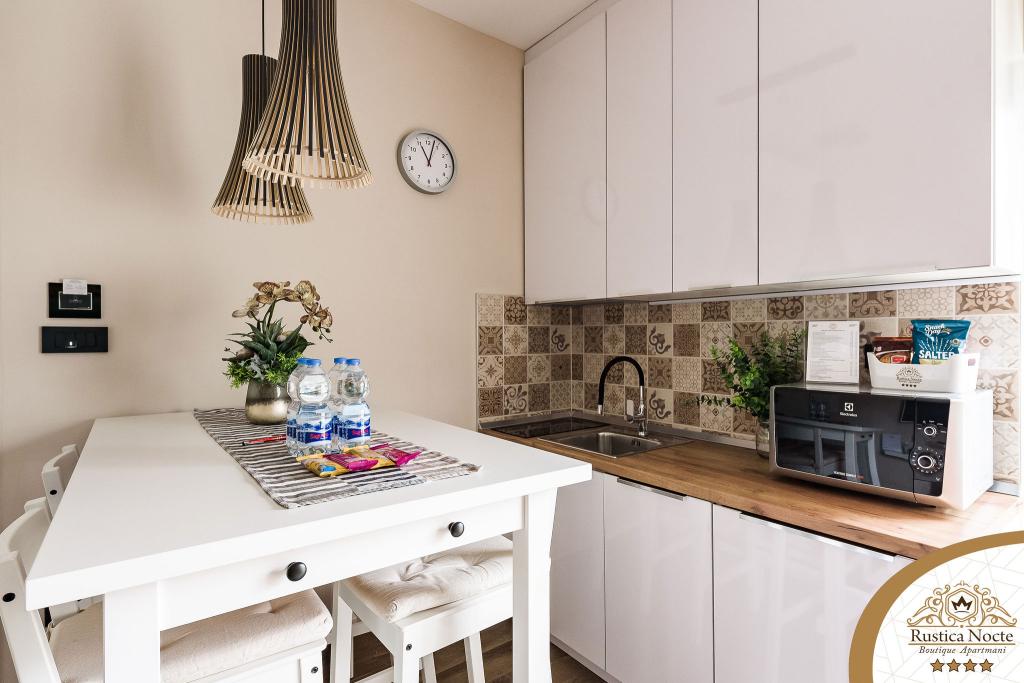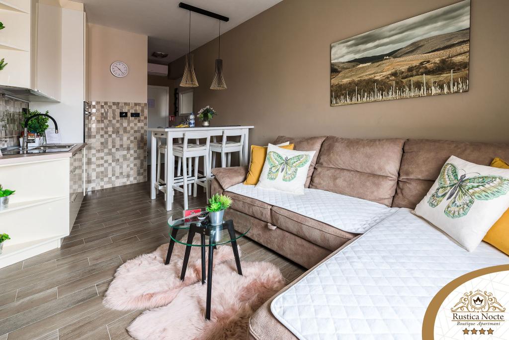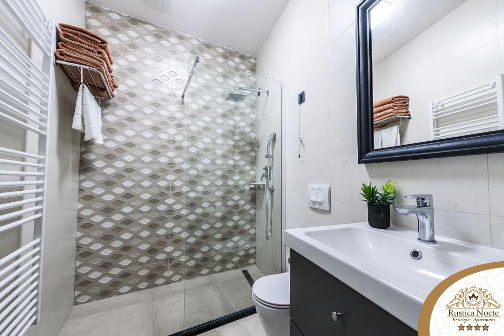 În chiar inima Slavoniei, la începutul zonei pietonale din Požega, apartamentele Rustica Nocte Boutique sunt locul perfect pentru o vacanță de vis. Pentru a vă face vacanța cât mai plăcută, apartamentele noastre moderne vă oferă dotări de cea mai bună calitate, și dorim în special să evidențiem sistemul de management inteligent pentru întregul apartament, Wi-Fi gratuit de mare viteză și Internet prin cablu și wireless, Paturi boxspring king size, seifuri digitale, televizoare ultra HD Ambilight Receptoare TV de 50 inch cu Netflix, programe prin satelit și locale și iluminare LED Ambilight la ferestre, băi ventilate și încălzite și bucătării complet echipate în fiecare dintre apartamente. Fiecare apartament include, de asemenea, un minibar cu băuturi nealcoolice și alcoolice și gustări. Apartamentele au și un colț pentru copii cu mese, jucării, cărți de colorat și saltele de joacă. Cu toate acestea, vă puteți planifica vacanța foarte fără griji.