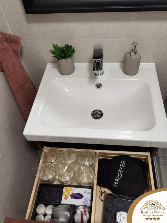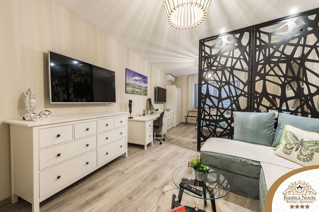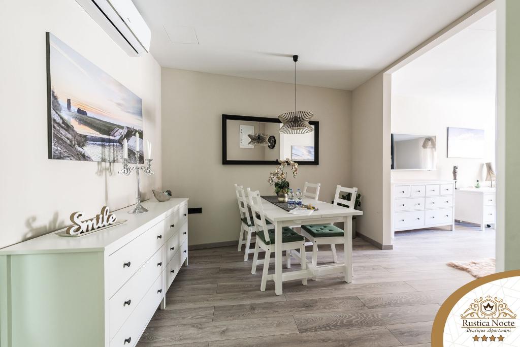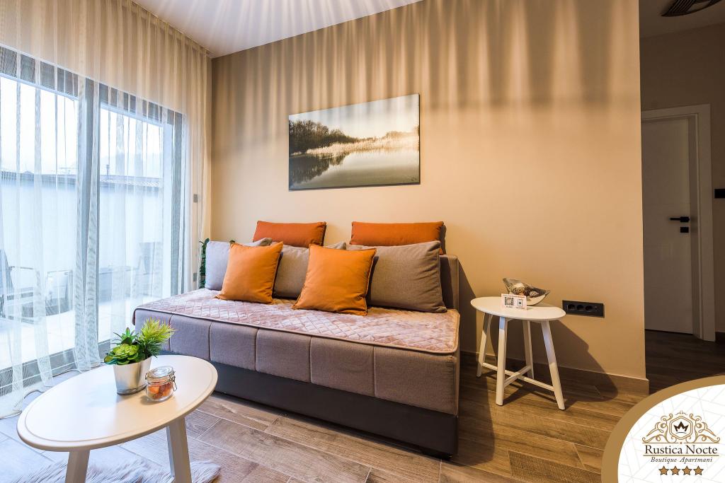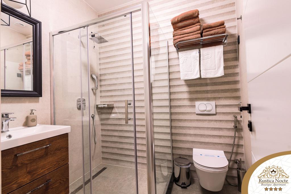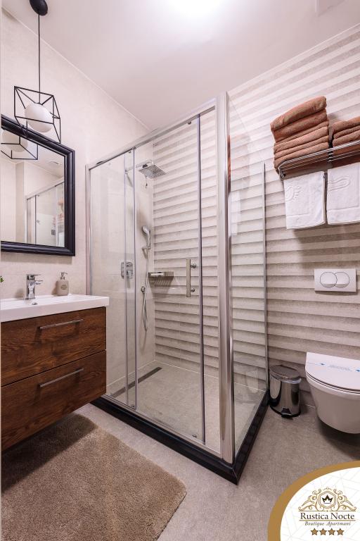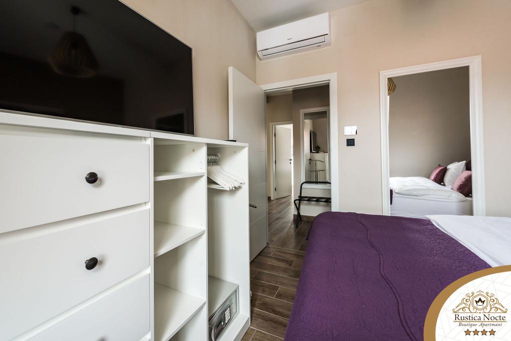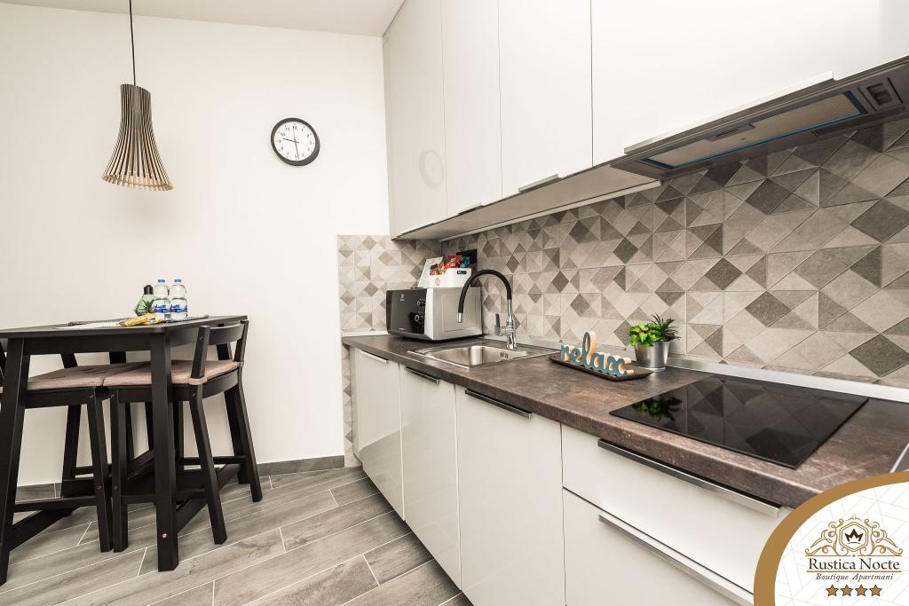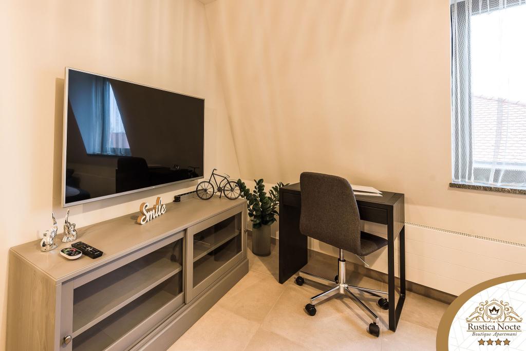 În chiar inima Slavoniei, la începutul zonei pietonale din Požega, apartamentele Rustica Nocte Boutique sunt locul perfect pentru o vacanță de vis. Pentru a vă face vacanța cât mai plăcută, apartamentele noastre moderne vă oferă dotări de cea mai bună calitate, și dorim în special să evidențiem sistemul de management inteligent pentru întregul apartament, Wi-Fi gratuit de mare viteză și Internet prin cablu și wireless, Paturi boxspring king size, seifuri digitale, televizoare ultra HD Ambilight Receptoare TV de 50 inch cu Netflix, programe prin satelit și locale și iluminare LED Ambilight la ferestre, băi ventilate și încălzite și bucătării complet echipate în fiecare dintre apartamente. Fiecare apartament include, de asemenea, un minibar cu băuturi nealcoolice și alcoolice și gustări. Apartamentele au și un colț pentru copii cu mese, jucării, cărți de colorat și saltele de joacă. Cu toate acestea, vă puteți planifica vacanța foarte fără griji.