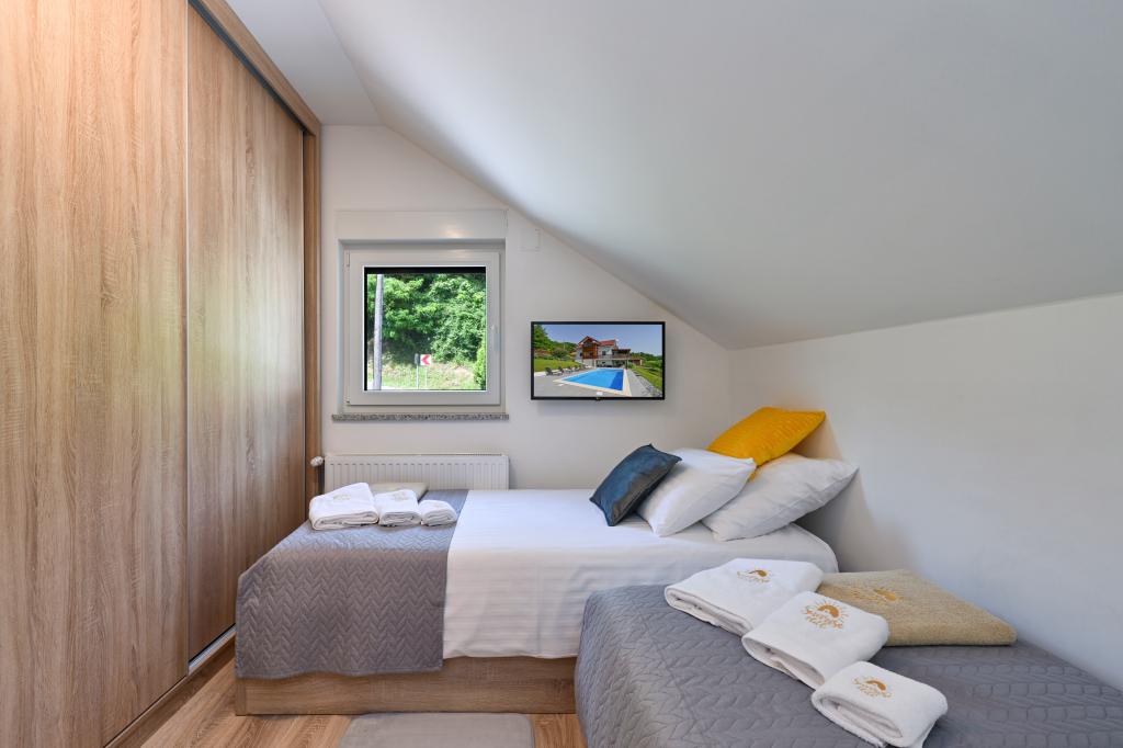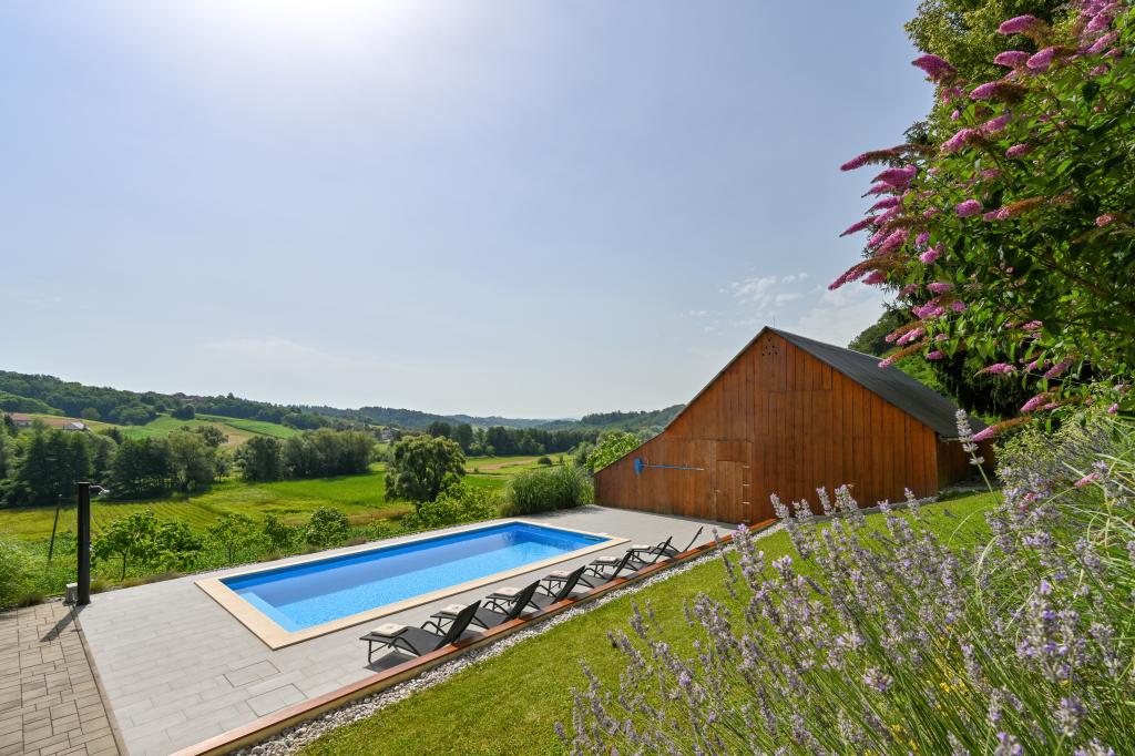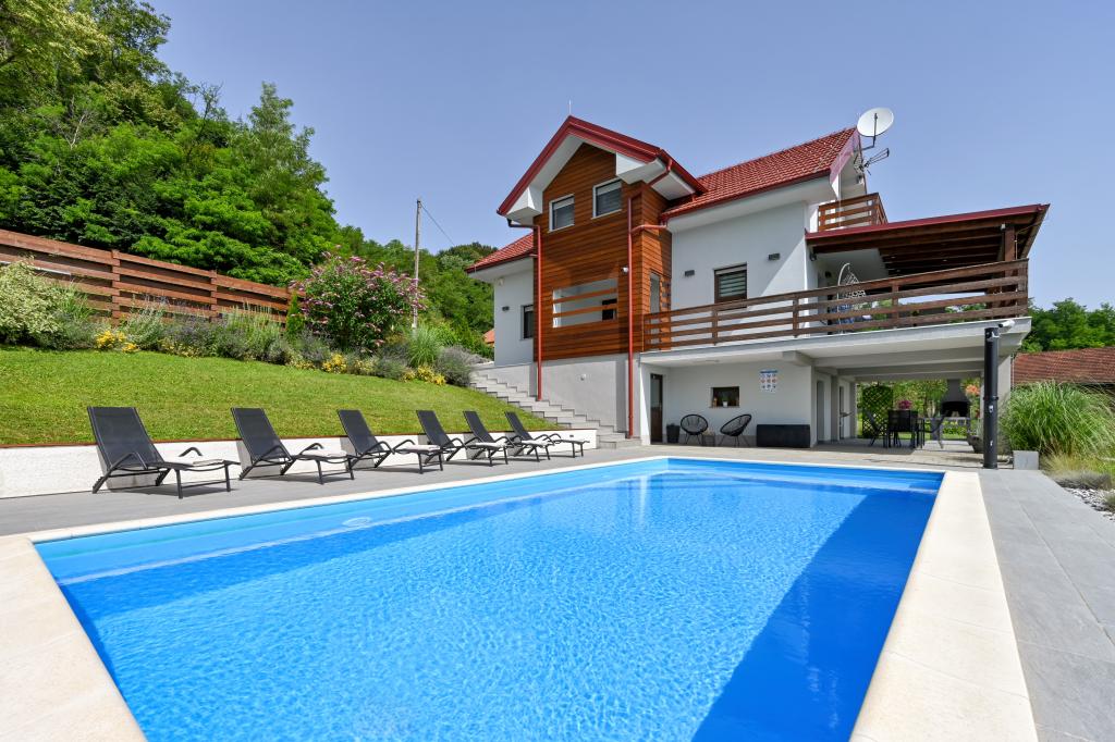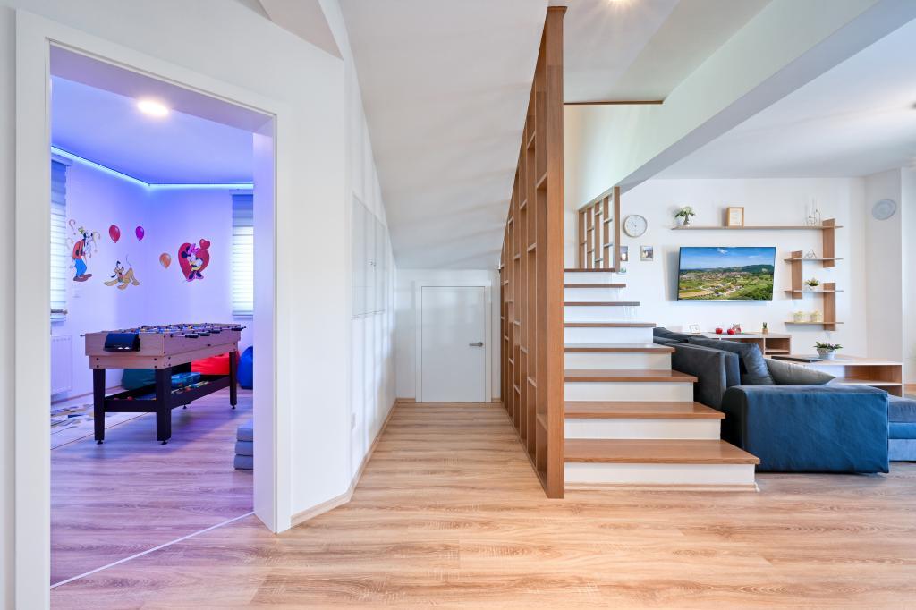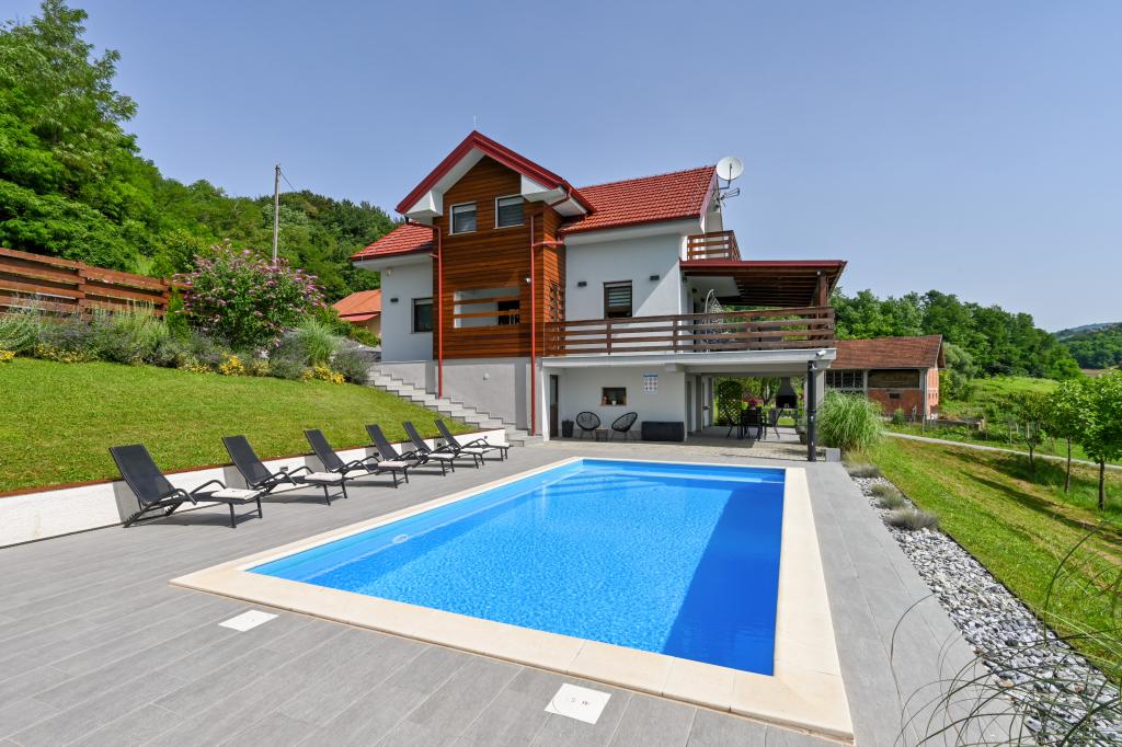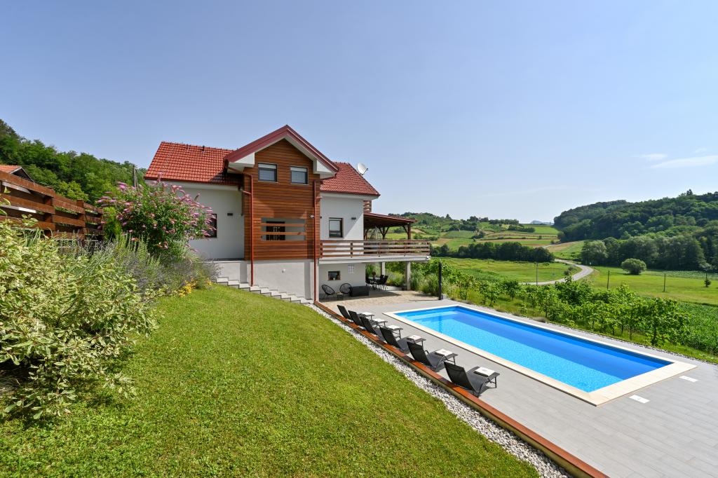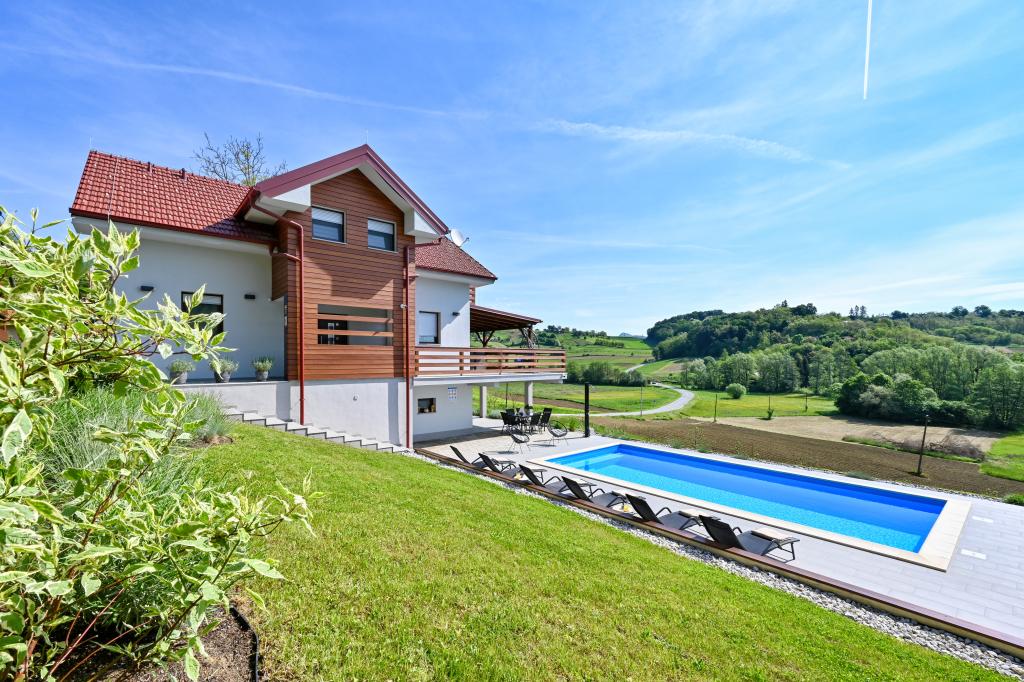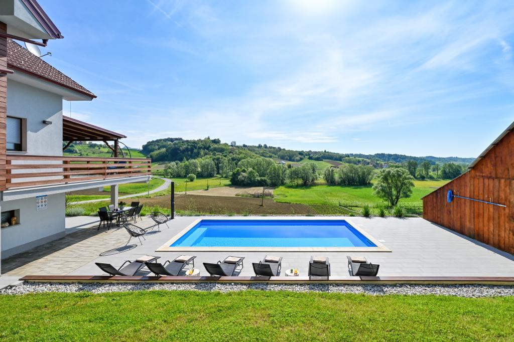 Această casă incredibilă este situată pe unul dintre numeroasele dealuri din frumoasa Zagorje. Înconjurat de dealuri, vii, livezi și păduri, este un loc ideal pentru a vă bucura și a vă odihni în natură. Priveliștea minunată care se întinde vă permite să vă bucurați de răsărituri frumoase, de la care și-a luat numele casa. Sunrise Hill este clasificat cu 4* și oferă cazare confortabilă pentru 8 persoane și este orientat în primul rând către familiile cu copii. Este perfect pentru o vacanta linistita sau pentru socializare, dar si pentru recreere si sport. Pe lângă grădina amenajată, care oferă o piscină mare cu duș și o terasă acoperită și deschisă, un grătar, o căsuță de joacă, parcare, casa este amenajată cu un interior amenajat minuțios dominat de lemn și tonuri luminoase și liniștitoare. Casa este formata dintr-un parter cu un living spatios cu bucatarie si sufragerie, o baie, o camera de joaca pentru copii cu fotbal de masa, o consola de jocuri PS 4 si jocuri de societate, si o terasa spatioasa care te invita la odihna si socializare. La primul etaj al casei sunt trei dormitoare.