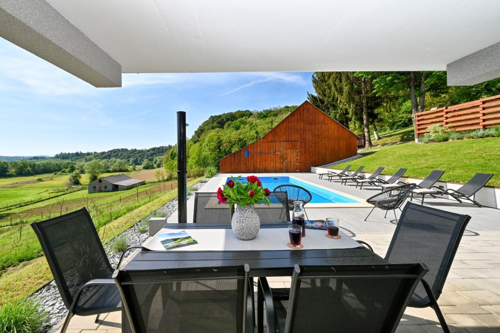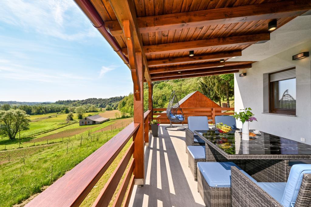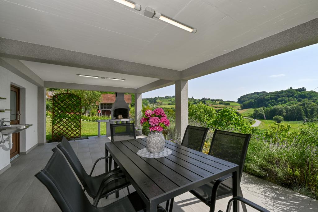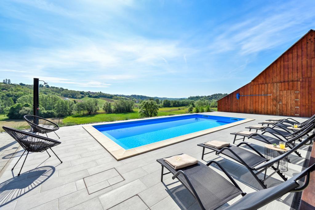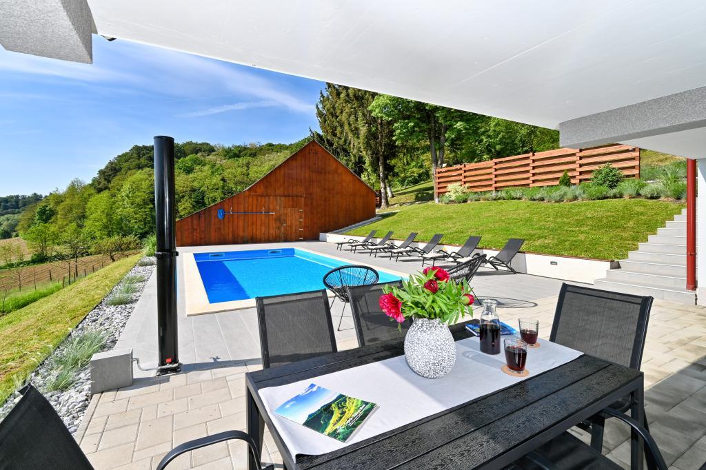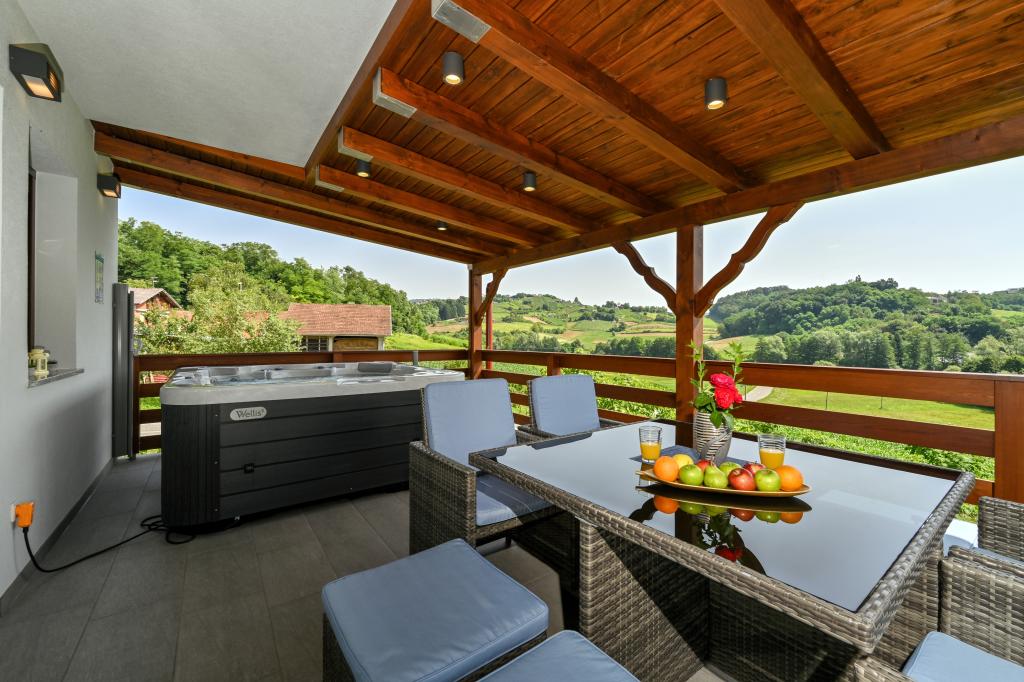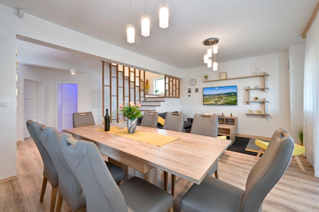 Această casă incredibilă este situată pe unul dintre numeroasele dealuri din frumoasa Zagorje. Înconjurat de dealuri, vii, livezi și păduri, este un loc ideal pentru a vă bucura și a vă odihni în natură. Priveliștea minunată care se întinde vă permite să vă bucurați de răsărituri frumoase, de la care și-a luat numele casa. Sunrise Hill este clasificat cu 4* și oferă cazare confortabilă pentru 8 persoane și este orientat în primul rând către familiile cu copii. Este perfect pentru o vacanta linistita sau pentru socializare, dar si pentru recreere si sport. Pe lângă grădina amenajată, care oferă o piscină mare cu duș și o terasă acoperită și deschisă, un grătar, o căsuță de joacă, parcare, casa este amenajată cu un interior amenajat minuțios dominat de lemn și tonuri luminoase și liniștitoare. Casa este formata dintr-un parter cu un living spatios cu bucatarie si sufragerie, o baie, o camera de joaca pentru copii cu fotbal de masa, o consola de jocuri PS 4 si jocuri de societate, si o terasa spatioasa care te invita la odihna si socializare. La primul etaj al casei sunt trei dormitoare.