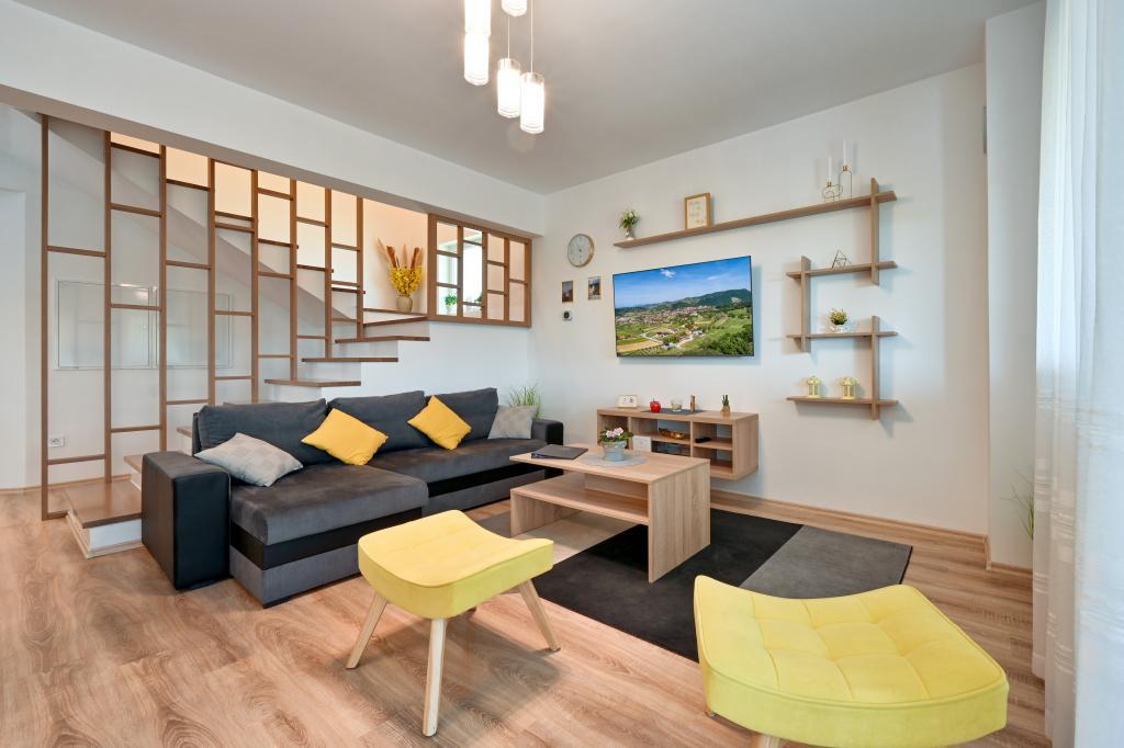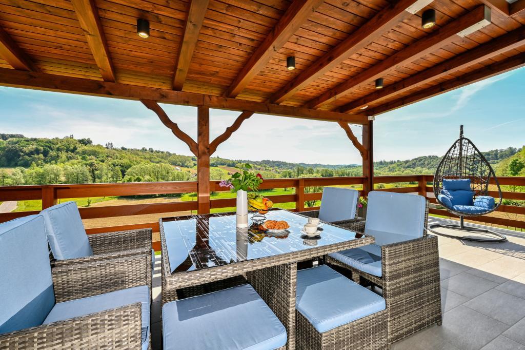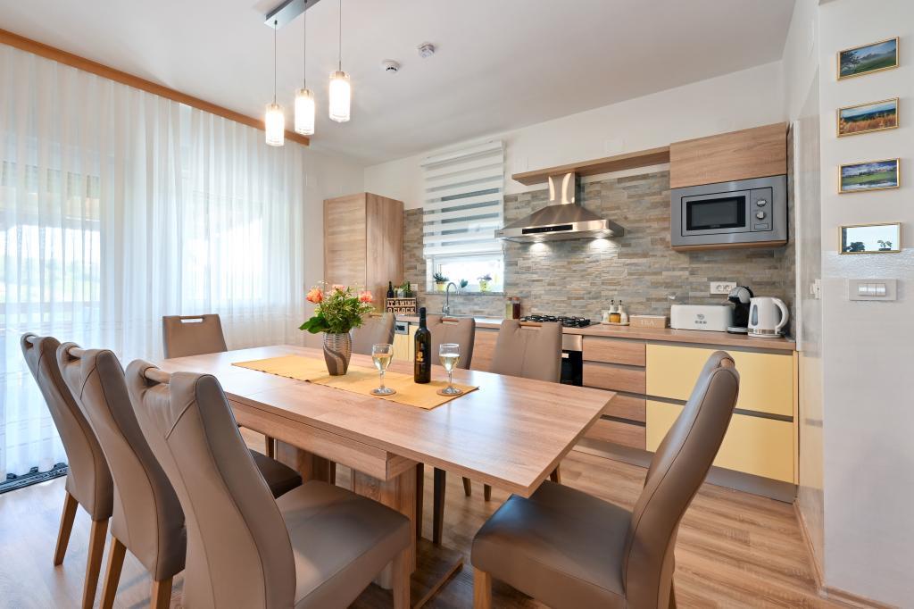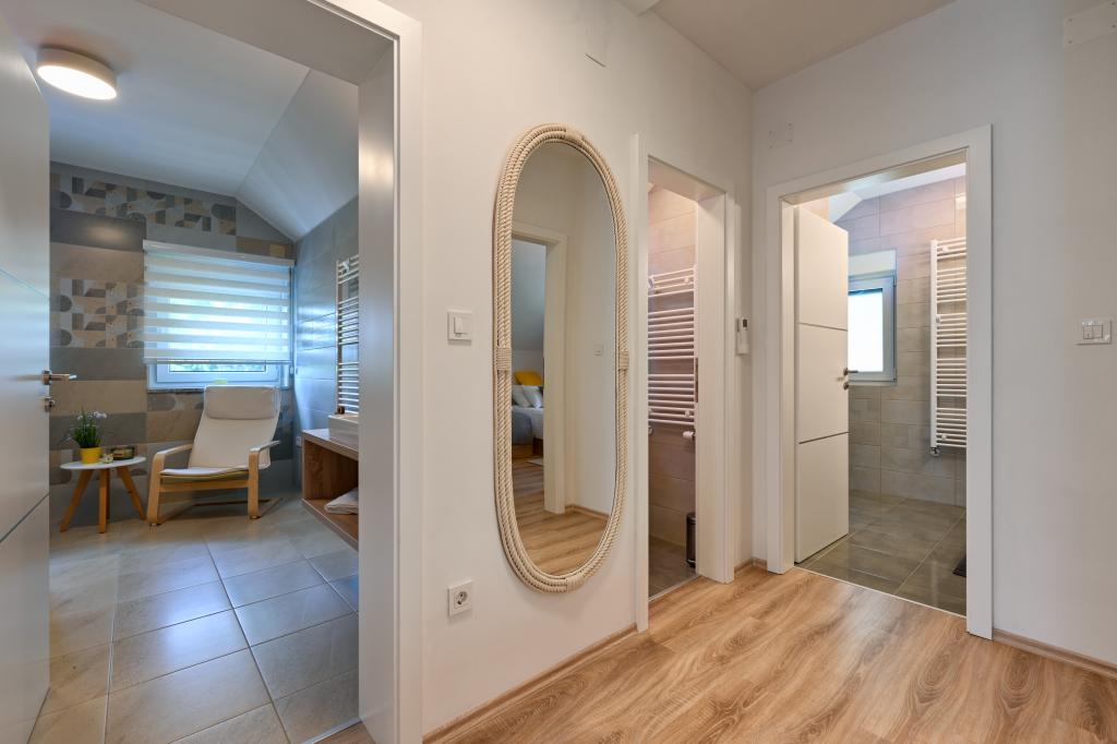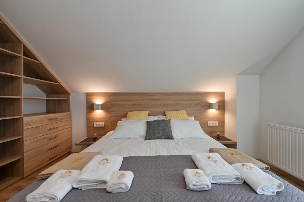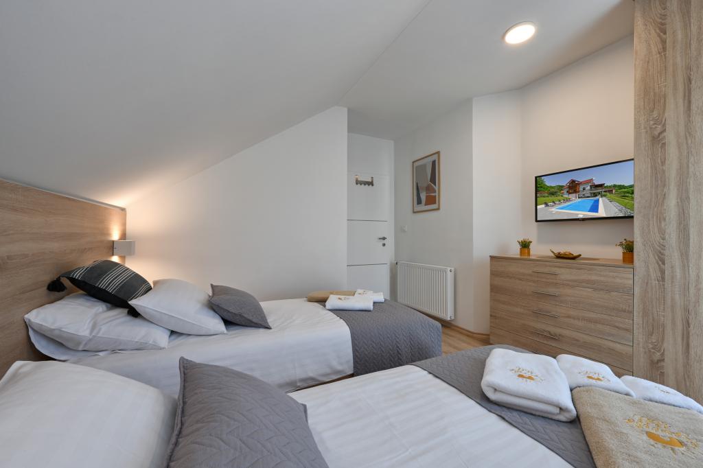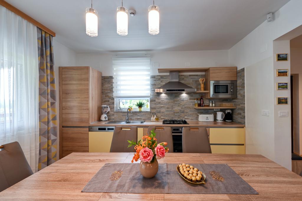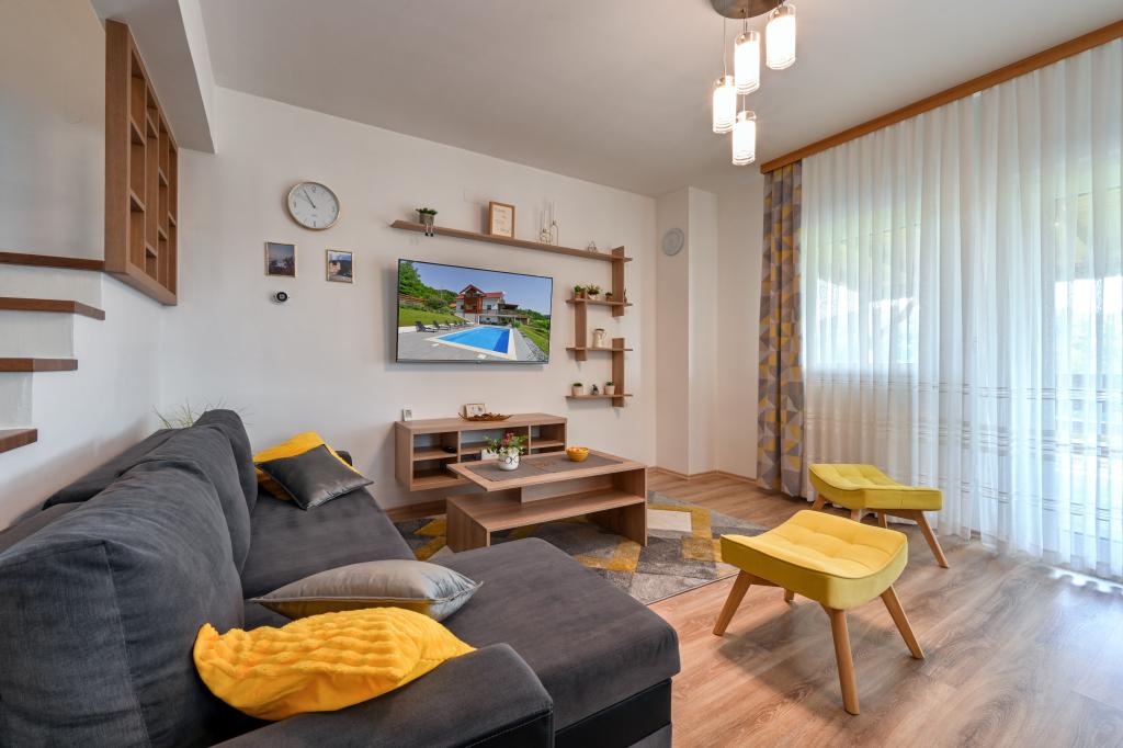 Această casă incredibilă este situată pe unul dintre numeroasele dealuri din frumoasa Zagorje. Înconjurat de dealuri, vii, livezi și păduri, este un loc ideal pentru a vă bucura și a vă odihni în natură. Priveliștea minunată care se întinde vă permite să vă bucurați de răsărituri frumoase, de la care și-a luat numele casa. Sunrise Hill este clasificat cu 4* și oferă cazare confortabilă pentru 8 persoane și este orientat în primul rând către familiile cu copii. Este perfect pentru o vacanta linistita sau pentru socializare, dar si pentru recreere si sport. Pe lângă grădina amenajată, care oferă o piscină mare cu duș și o terasă acoperită și deschisă, un grătar, o căsuță de joacă, parcare, casa este amenajată cu un interior amenajat minuțios dominat de lemn și tonuri luminoase și liniștitoare. Casa este formata dintr-un parter cu un living spatios cu bucatarie si sufragerie, o baie, o camera de joaca pentru copii cu fotbal de masa, o consola de jocuri PS 4 si jocuri de societate, si o terasa spatioasa care te invita la odihna si socializare. La primul etaj al casei sunt trei dormitoare.