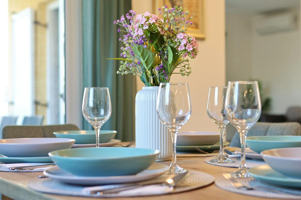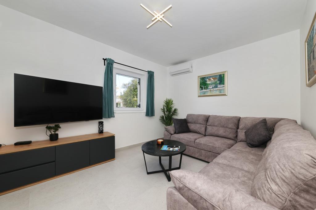 Apartament complet utilat, cu două dormitoare cu aer condiționat, o terasă la primul etaj, o loggie la parter și parcare privată, într-o zonă liniștită din Prek, lângă plaja cu nisip Jaz.