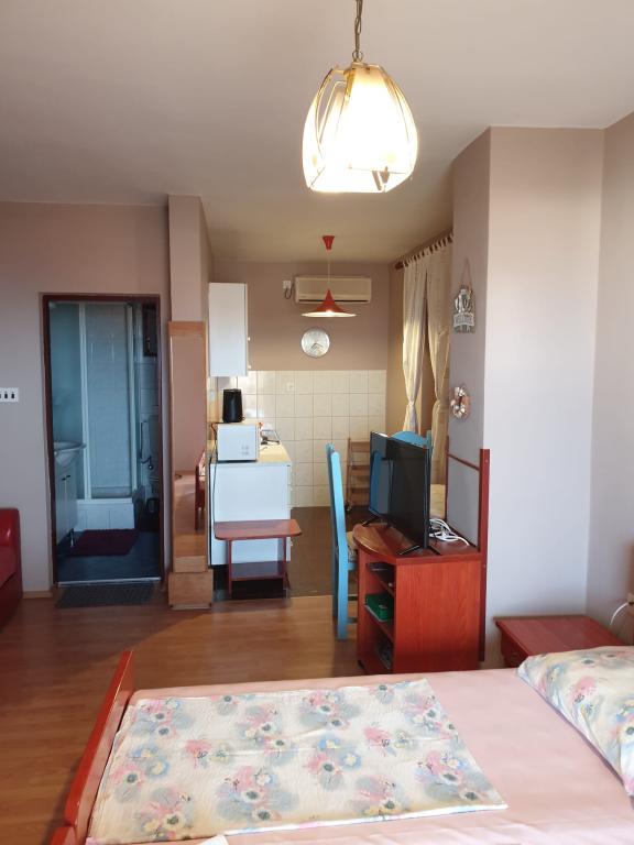Am stat șase nopți în unitate, am fost primiți foarte călduros. Gazda este grijulie si amabila, inainte sa ajungem in Preko ne-a sunat ca cazarea este pregatita din timp si ca putem veni in voie. La sosire, ne-a tratat cu o băutură de bun venit și un mic cadou care ne-a întâmpinat în cameră. Apartamentul a fost curat și ordonat, și bine dotat cu de toate pentru o ședere plăcută - aer condiționat, frigider, cuptor cu microunde, ceainic, cuptor, vase, pahare etc. Regulile casei sunt respectate în cazare și este întotdeauna foarte liniștită, ceea ce este bine pentru cei care își doresc cu adevărat să se odihnească. Puteți merge pe jos până la plajă în aproximativ cinci minute. Primul magazin (supermarket Tommy) se afla la cateva minute distanta de cazare. Orașul Preko este plin de plaje minunate, restaurante, cafenele, patiserii, natură pe care o poți vizita zile întregi. Exista si posibilitatea unei excursii in Kornati, pe care o recomandam cu siguranta pentru ca am fost si a fost grozav. Rezervările se pot face la agenția de turism din Prek. A fost foarte plăcut pentru noi și sperăm să revenim anul viitor. Recomandare!