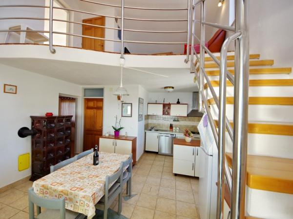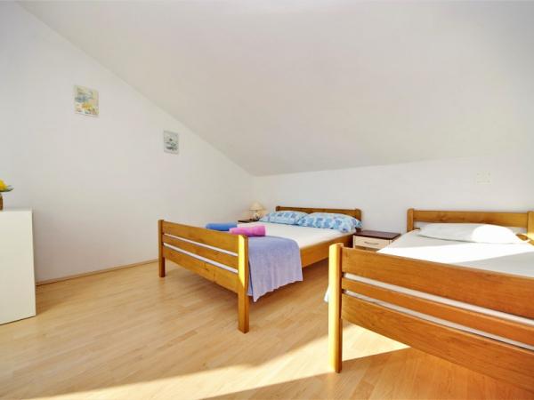 Casă de vacanță de familie situată într-o poziție liniștită și înaltă, pe partea de vest a insulei. De la terasa spațioasă vă puteți bucura de vedere la mare și spre insulele din apropiere și la apusul apus. Magazinul, feribotul, restaurantul și plaja sunt la doar câteva minute de mers pe jos de casă, în timp ce centrul insulei se află pe vârful dealului și este la 5-6 minute distanță.
