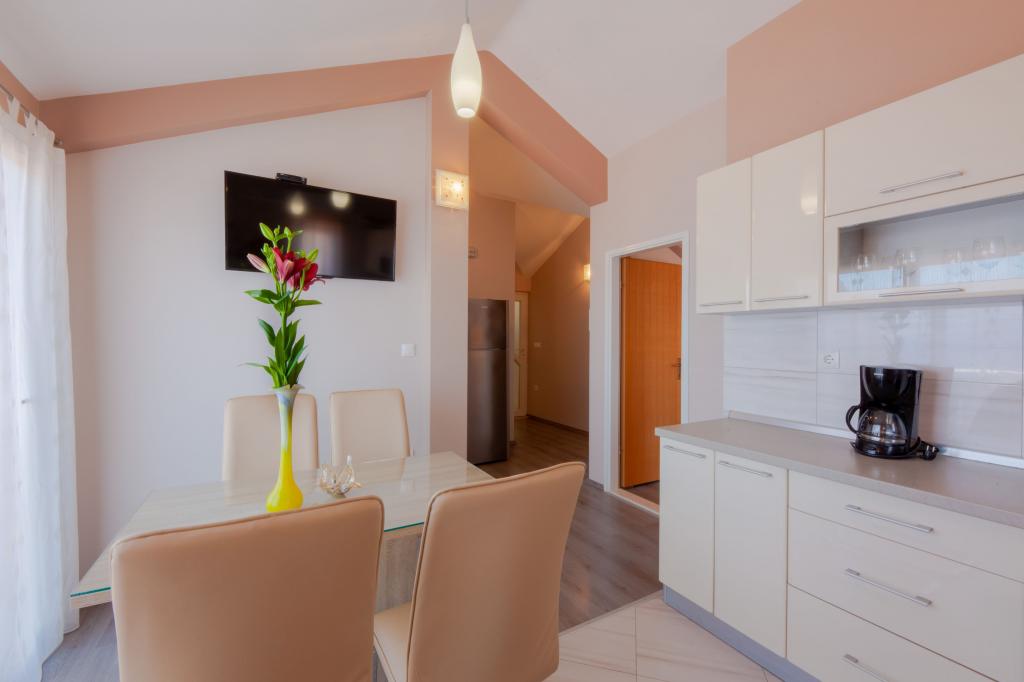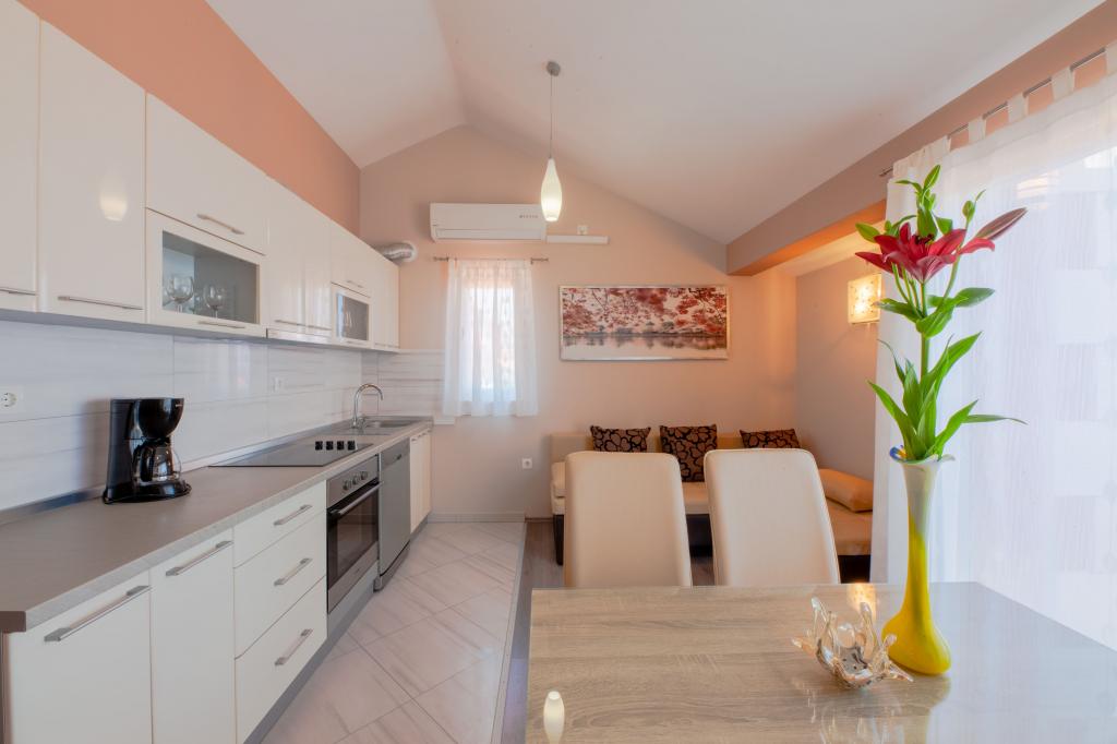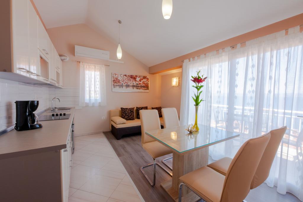 Suntem o familie cu doi copii și am rămas în apartamentele de la care ne găsim pace, liniște și vacanță relaxată. Locul de amplasare este izvanredna- pentru cei care prefera o plaja stancoasa, în fața casei, apoi (APX 30 metri) ai, iar celălalt la 100m de casa este un mic, plaja oras pe care le aveți la dispoziție pentru chirie umbrele și șezlonguri. Gazdele au fost compuse, politicos si extrem de prietenos atunci când am fost primit cu scoici stocate de casă (de sus din partea de sus au fost), smochine, ulei și coniac. Apartamentul este aceeași și chiar mai bine decât imaginile. Curat, ordonat cu terasa si vedere la mare. Noi foarte recomandăm tuturor. Nu se poate merge prost, dacă alegeți această cazare. Natasa-Macedonia