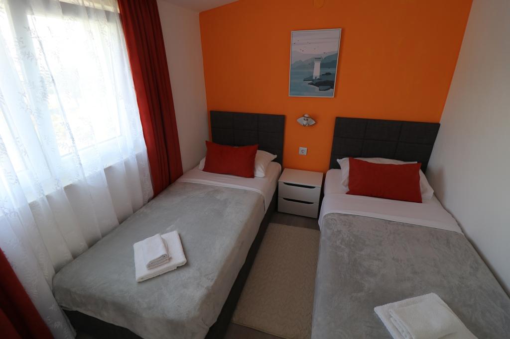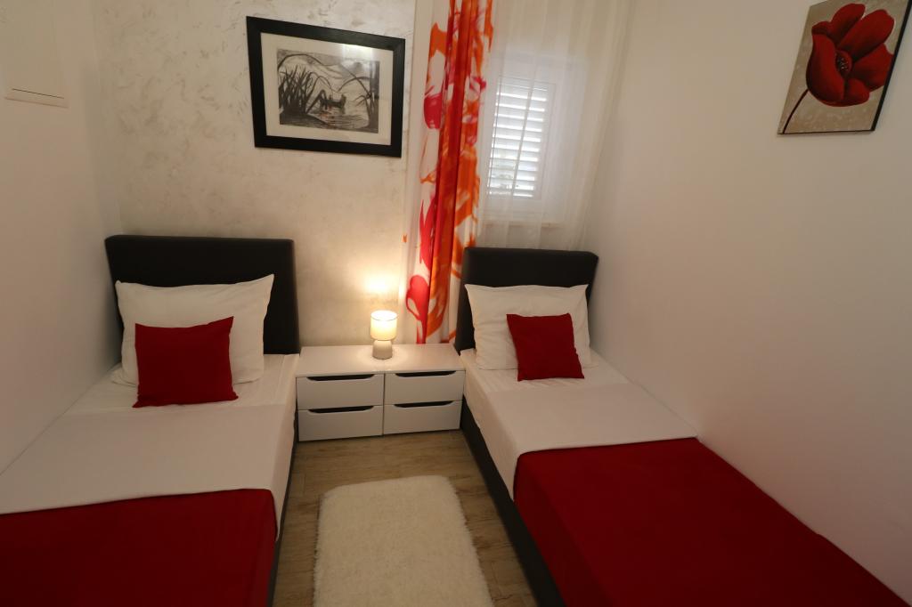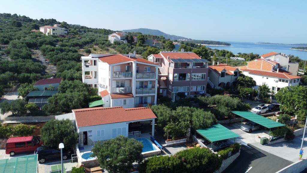 Apartamentele Bilokapić sunt situate în imediata vecinătate a taberei auto de la Marea Adriatică din Primošten, la 25 km sud de Šibenik. Două case sunt situate într-o zonă liniștită din Primošten, înconjurată de verdeață și floră mediteraneană. Toate apartamentele sunt dotate cu aer condiționat, cu un interior modern. Balcoanele lor oferă o vedere frumoasă la arhipelagul Šibenik. Curtea de 2400 m2, în care există piscină, bazin cu hidromasaj, șezlonguri, toaletă și duș exterior, fotbal de masă, tenis de masă, mese și scaune cu grătar de grădină, va contribui la confortul unității de cazare. Parcarea este în mare parte acoperită cu umbră. Coasta și plaja sunt la aproximativ 100 de metri. Plaja este diversă, pietrișată în combinație cu stânci blânde, cu o mare parte la umbra pinii, iar oaspeții noștri o pot folosi fără costuri suplimentare. In imediata apropiere se afla un supermarket, restaurant, cafe-bar, patiserie. Centrul orașului Primošten, cu conținutul său turistic bogat, este la aproximativ 3 km. Parcul Național Krka la aproximativ 40 km, iar aeroportul din Split aproximativ 45