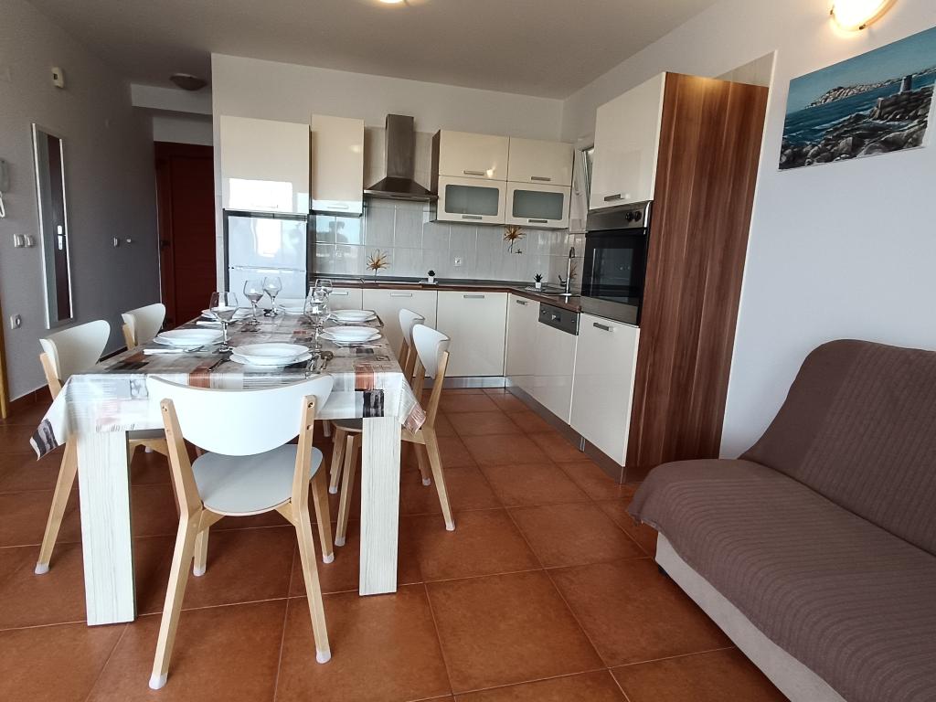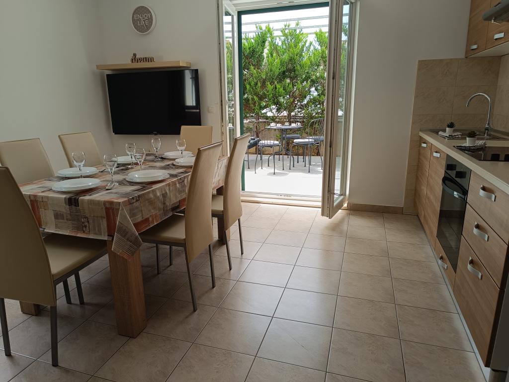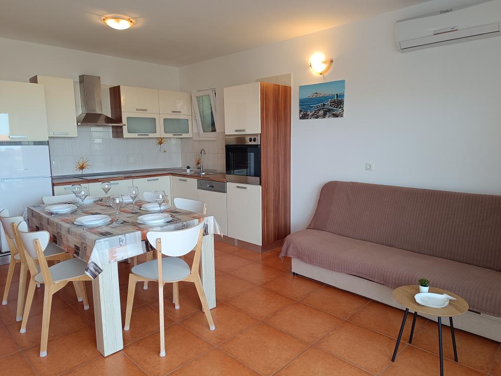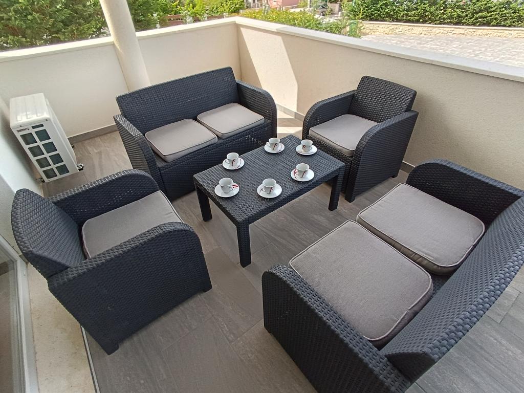 Casa de familie nou construit are doua apartamente complet echipate, cu patru stele. Loc de parcare, internet și aer condiționat sunt incluse în preț. La centrul orașului durează 7 minute de mers la plaja 5 minute la magazine 1 minut.