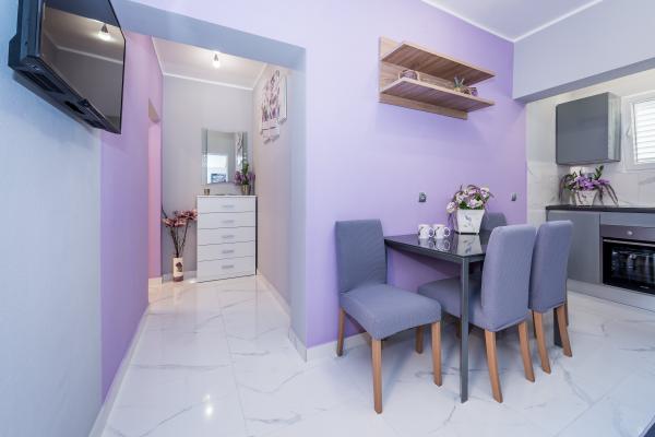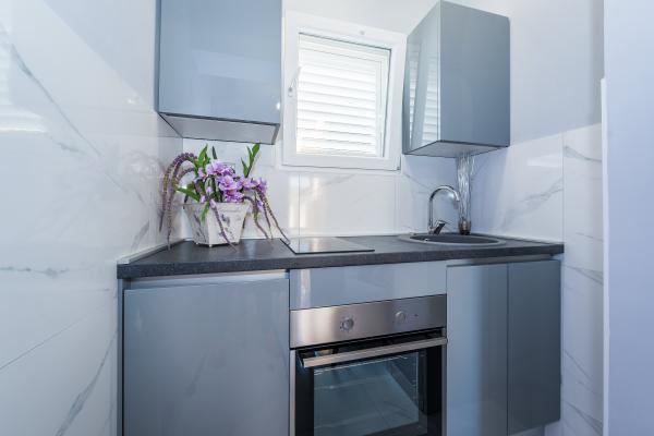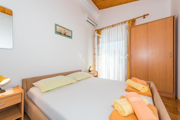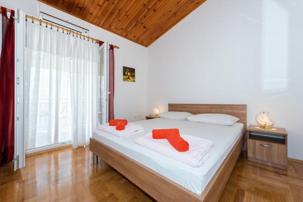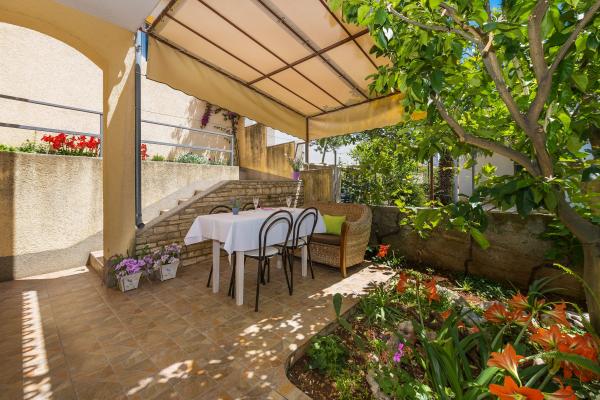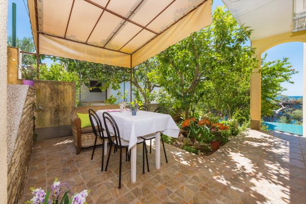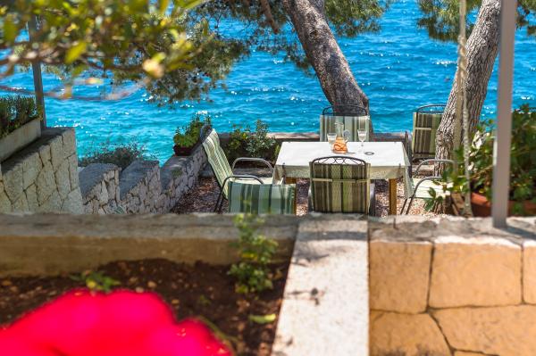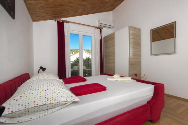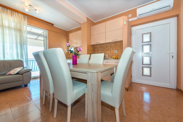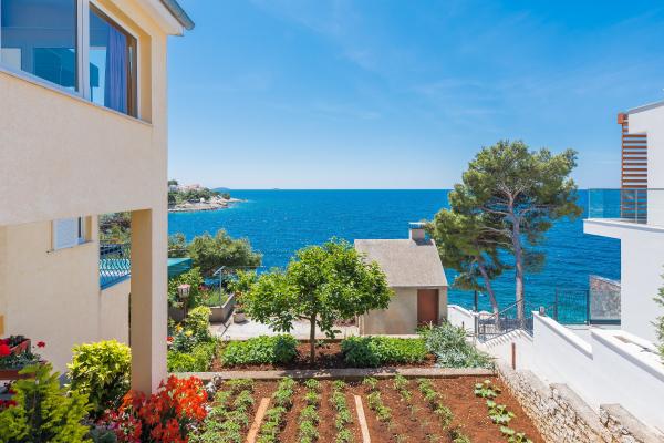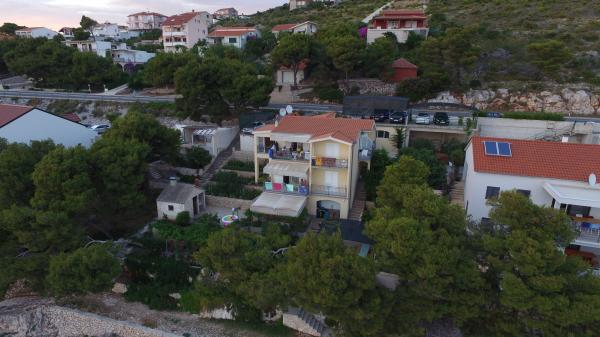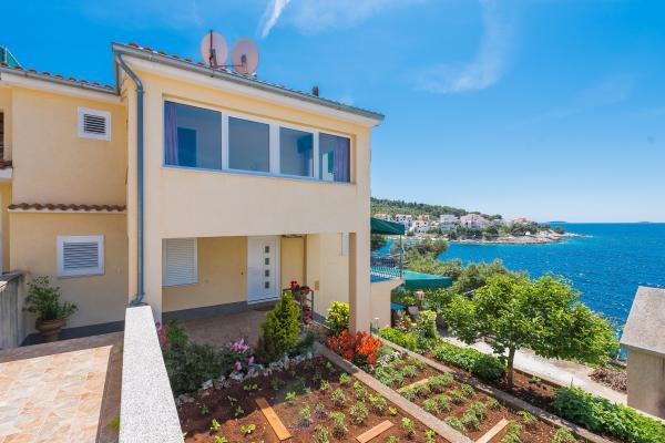 O casă de familie cu trei apartamente într-un mediu liniștit al unei păduri de pini, cu vedere la marea limpede de cristal, aflată la 10 metri distanță. Primul rând la mare. Toți oaspeții au la dispoziție parcare și utilizarea unui grătar în aer liber, precum și un loc de odihnă la umbra pinii. Fiecare apartament are intrare proprie, este dotat modern (satelit, wi-fi) si are terasa cu vedere la mare. O promenadă lungă de 5 km se întinde de-a lungul mării, potrivită pentru jogging, mers pe jos sau cu bicicleta, iar în interiorul satului există trasee pentru mountain bike. Ne aflăm în apropierea a două parcuri naționale: NP Krka și NP Kornati, precum și orașele Šibenik, Trogir și Split, care sunt sub protecția Unesco. Vă oferim o vacanță plăcută și relaxantă în apartamentele noastre și vă așteptăm cu drag sosirea, familia Marinov Mirela și Branimir.