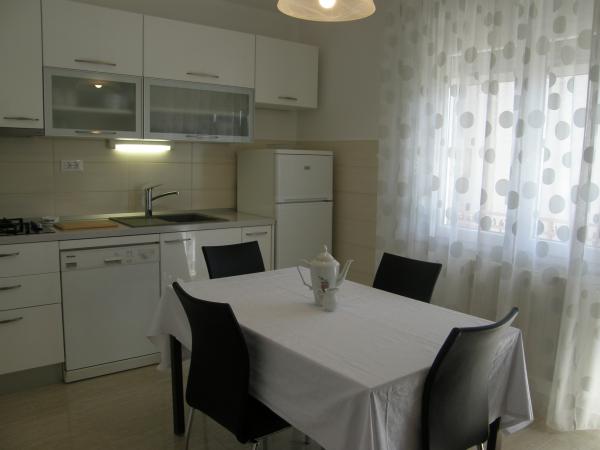 Senzaţional!! Unul dintre cele mai bune apartamente pe care am avut ocazia să le închiriez pe parcursul mai multor sejururi în Croația, gazde foarte, foarte drăguțe, ne-au primit cu o sticlă de vin și rakija, apartamente la primul etaj spațioase cu două dormitoare, bucătărie bine utilată, baie si un balcon lung cu o masa pe care puteai lua micul dejun dimineata. În apartamentul alăturat erau prieteni care aveau la rândul lor o terasă mare cu șezlonguri, la doar cinci minute de mers pe jos până la plajă, plajă largă și oricând găseai un loc fără probleme (stai la sfârșitul lunii iunie și Iulie). Primosten este un oraș frumos, cu străzi fermecătoare ale orașului vechi. Daca ar fi sa ma intorc in Primosten doar la doamna Karmela, o recomand cu constiinta linistita