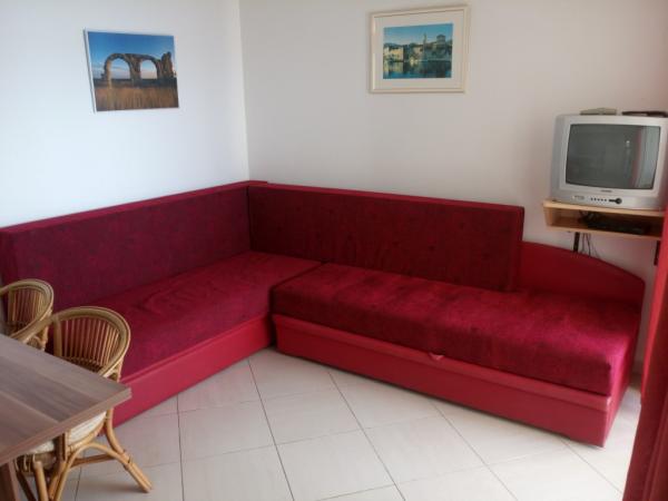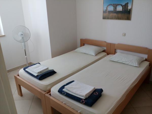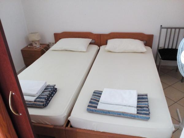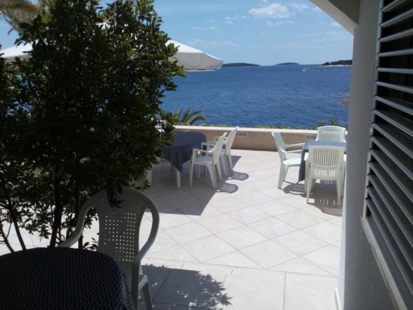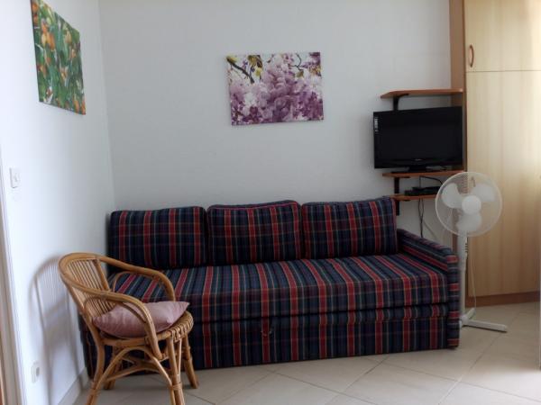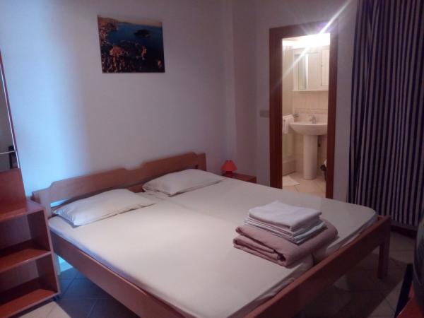 Un loc minunat pentru cei care caută liniște să se relaxeze și în același timp la câțiva pași de mare de centrul orașului, unde sunt magazine și restaurante. Marea literalmente peste drum. Puteți alege să vă apropiați de mare treptat și direct în adâncuri. Cazarea în sine este satisfăcătoare și aveți tot ce aveți nevoie, dar vreau să subliniez că este o frumoasă terasă mare cu șezlonguri, care oferă cea mai mare parte a zilei umbră și vederi la mare și la centrul orașului în fundal. Proprietarii sunt foarte drăguți și primitori, le mulțumim foarte mult. Ne vom întoarce aici în mod regulat.