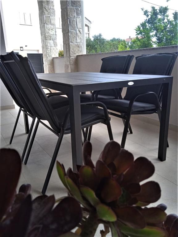 Apartamentul ALEN (40 m2) este situat la parterul unei case private, decomandate, inconjurata de o gradina. Este format din 1 dormitor mare (20m2) cu pat dublu, pat suplimentar și pătuț, bucătărie cu living cu canapea extensibilă 135 x 190 cm, baie cu toaletă și o frumoasă terasă acoperită de 12 m2 în fața apartamentului. Este nou-nouț și dotată cu tot ce aveți nevoie pentru o vacanță plăcută: aer condiționat, Internet WI-FI, SAT-TV, cuptor cu microunde, ceainic, prăjitor de pâine, filtru de cafea, grătar. Pretul include: lenjerie de pat, prosoape, prosoape de bucatarie si prosoape (schimbate la fiecare 7 zile), electricitate, apa, Internet WiFi, si taxa turistica. Apartamentul este la 300 m de frumoasa plaja de nisip si la 100 m de supermarket.