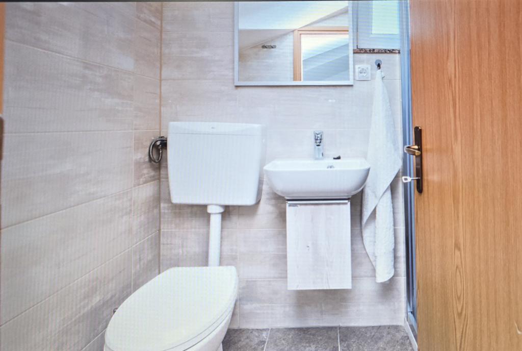 Apartament recent decorat, complet utilat, cu bucătărie, living, două dormitoare și două băi. Ambele camere sunt dotate cu un pat dublu, una dintre camere are o toaletă separată, iar camera de zi are un pat suplimentar (canapea extensibilă). Baia are duș și mașină de spălat. Apartamentul este situat la etajul 1 al casei, care dispune de o terasă acoperită de 10 m², parțial acoperită. Apartamentul dispune de 2 locuri de parcare. Plajele din împrejurimi sunt nisipoase și puțin adânci, potrivite pentru copii mici. Ne aflăm în orășelul Privlaka, lângă Zadar. Apartamentul este situat la 3 minute de mers pe jos de plajă și în apropierea centrului orașului Privlaka (10 minute de mers pe jos) și a promenadei de pe malul mării, care traversează întregul oraș. În apropiere se află orașele Nin și Zadar. Așteptăm cu nerăbdare sosirea dumneavoastră.