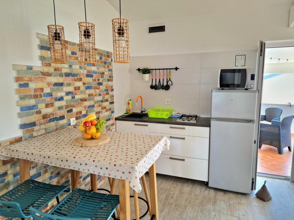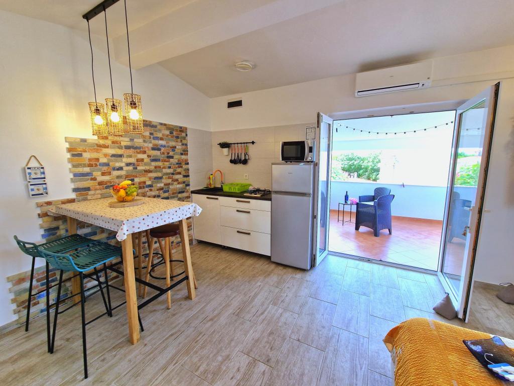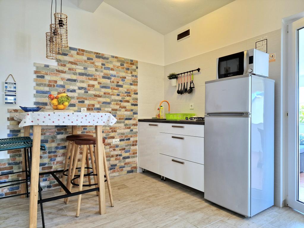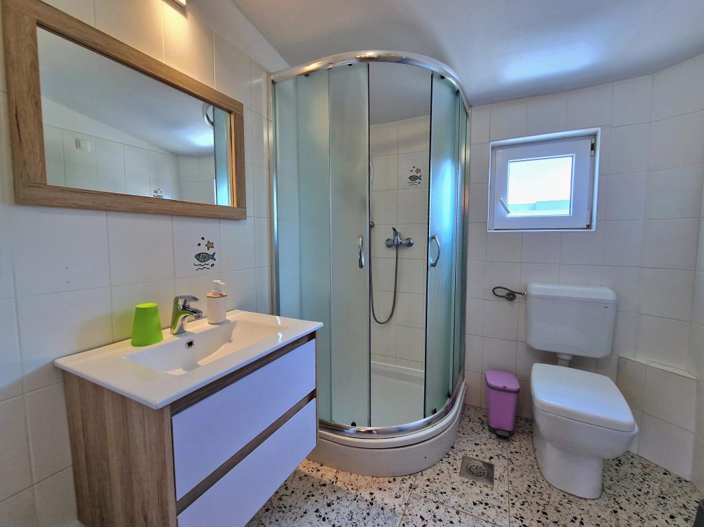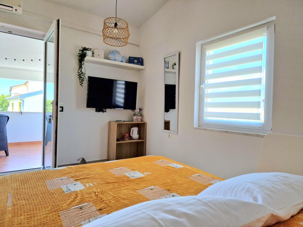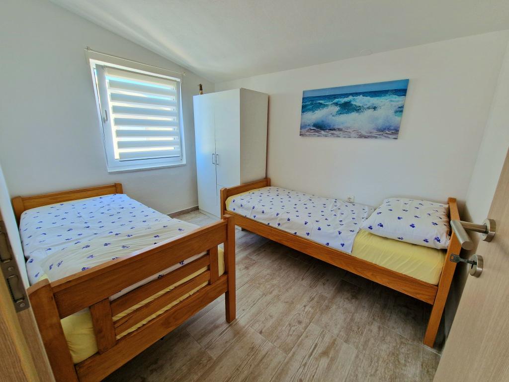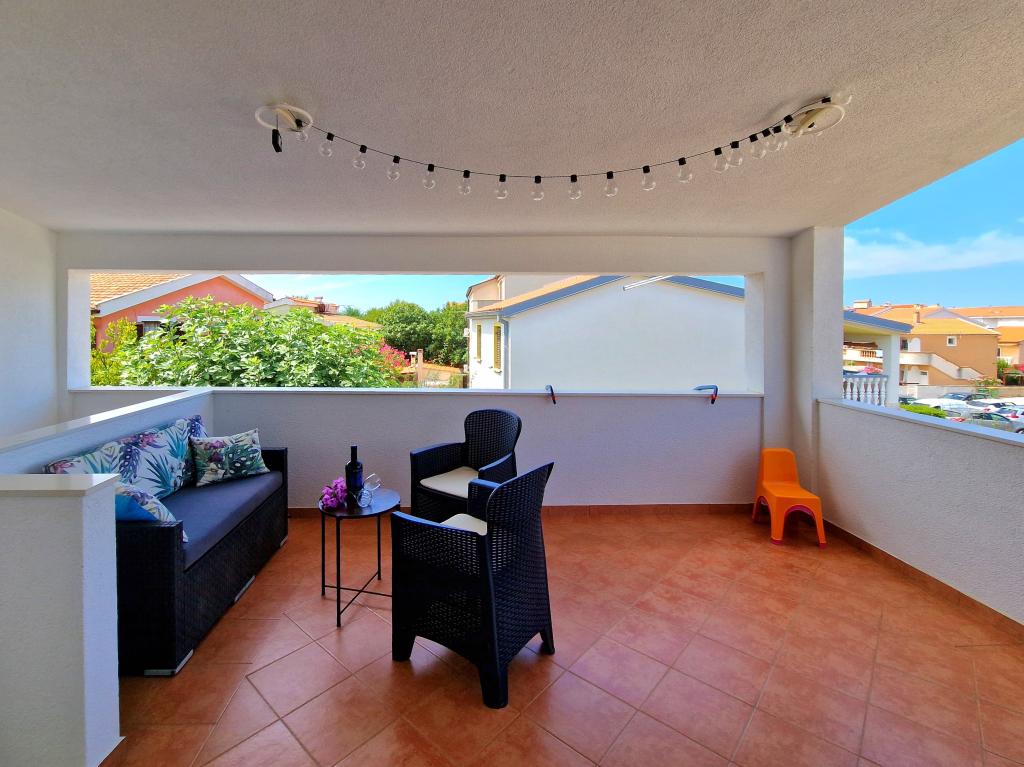 Apartamentul este situat la Bilotinjaka II, casa numărul 18, în Privlaka (Škrapavac). Este situat în apropiere de orașul Zadar, care se află la 15 km și de stațiunea turistică Zaton, care se află la 1 km. Distanța până la plajă este de aproximativ 200 de metri, iar plaja este potrivită pentru copii mici și neînotători deoarece marea este puțin adâncă și nisipoasă. Capacitatea de cazare este asigurata pentru 4 persoane, ideala pentru parinti si doi copii. Apartamentul se afla intr-o casa familiala la primul etaj. Suprafata apartamentului este de 36 m2 + terasa acoperita de 15 m2 si este compusa din: - dormitor - living - cu pat matrimonial - bucatarie - baie - aer conditionat - gratar (in curte) - dus solar (in curte) - loc de parcare