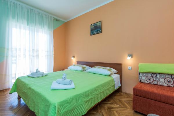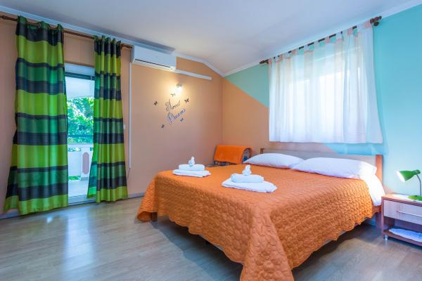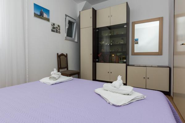 Apartamente complet utilate intr-o zona linistita din Privlaka, situata la 300 m de mare, cu o curte mare. Apartamentele au doua dormitoare mari, baie, bucatarie, terasa mare si balcon. In fata casei este o padure de pini, langa statia de autobuz.