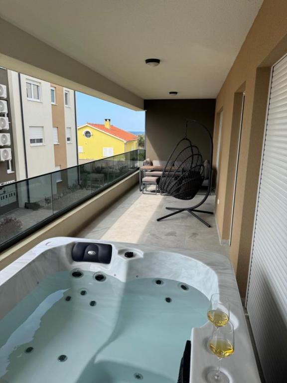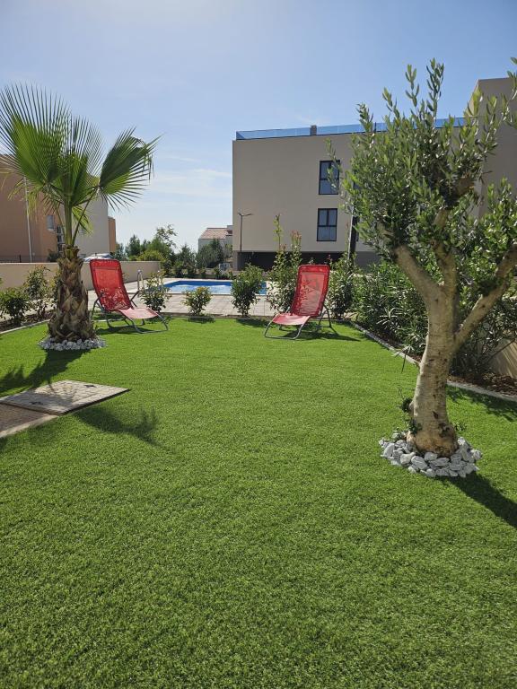 Bucurați-vă de o vacanță perfectă în Apartamentul Oleander și Apartamentul Lapis din Privlaka, lângă Zadar. Situate la doar 80 de metri de mare, aceste apartamente modern decorate și complet echipate oferă mediul ideal pentru relaxare - fie că veniți cu familia sau cu prietenii. Combinația dintre confort, funcționalitate și o atmosferă mediteraneană liniștită vă va permite să aveți un sejur lipsit de griji și o adevărată pauză de la viața de zi cu zi. Bucurați-vă de proximitatea unor plaje frumoase, o terasă privată pentru cafeaua de dimineață, răcoritoare la piscină și acces facil la fermecătorul Nin și pitorescul Zadar.