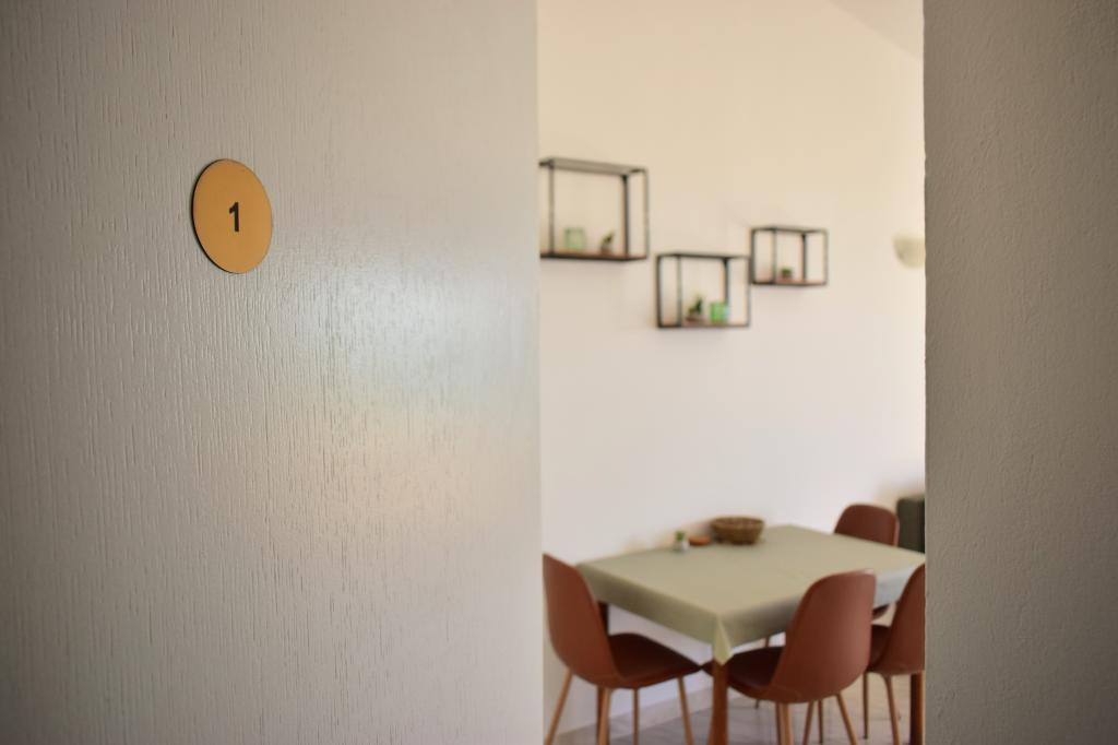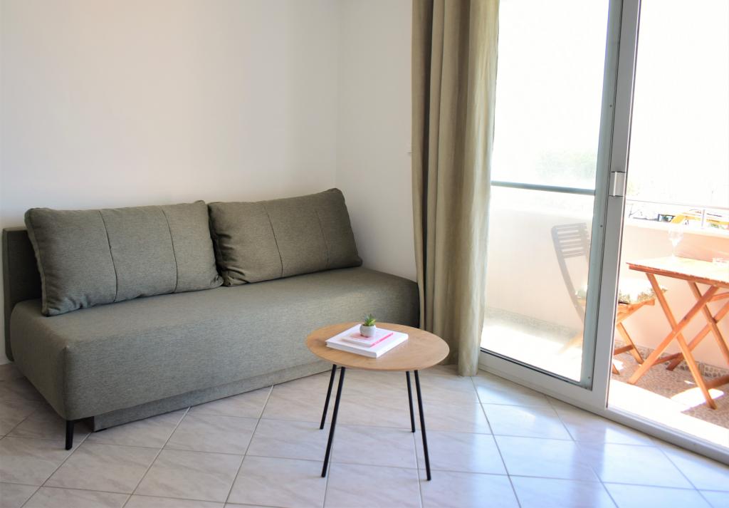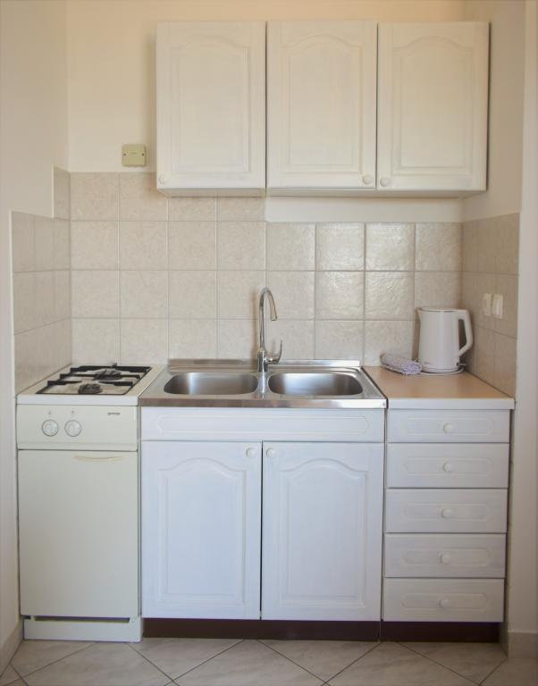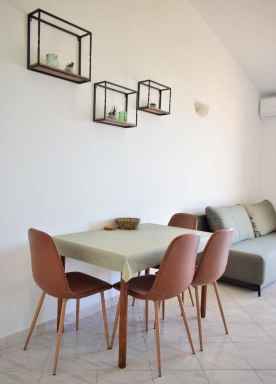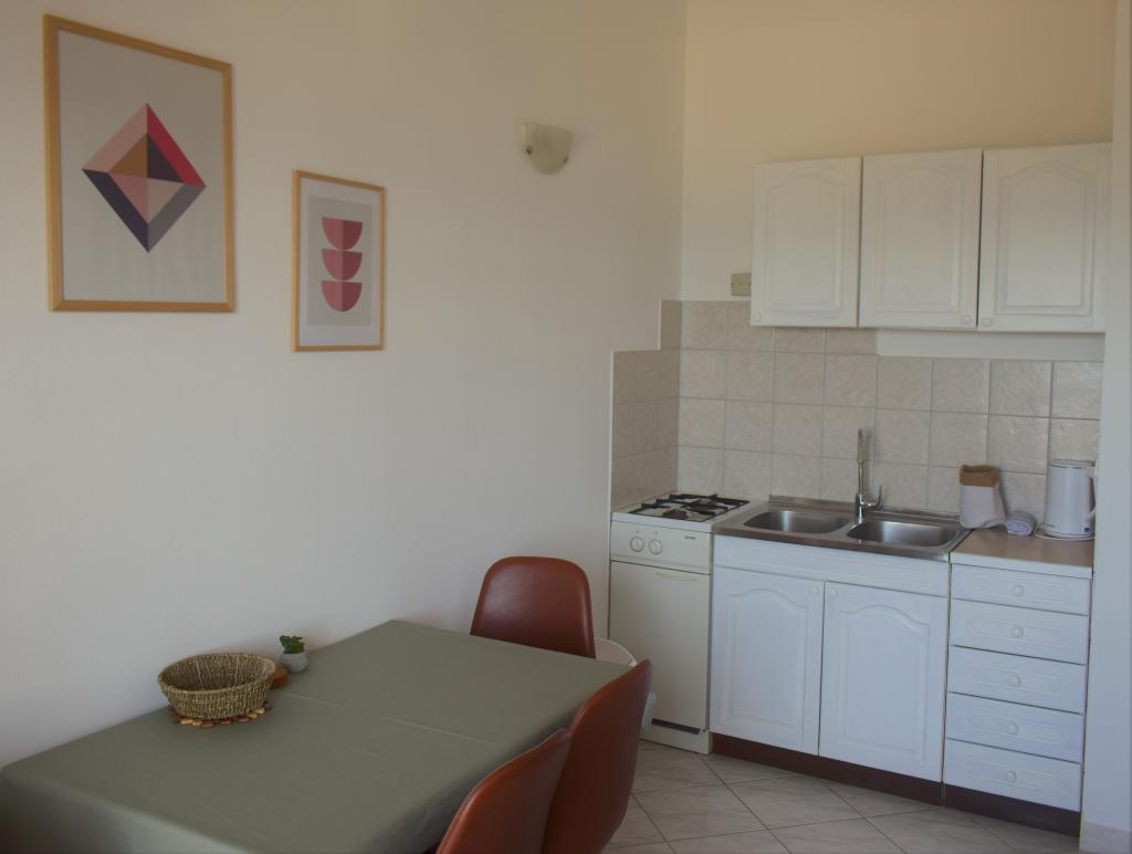 Apartamente plăcute într-o zonă liniștită, situate primul rând la mare. Facilitatea se afla la o plimbare de 10 minute de toate facilitatile necesare pentru o vacanta placuta, precum magazin, farmacie, clinica, oficiu postal, etc. Plaja este situata in imediata apropiere a facilitatii, la doar 50 de metri distanta. Facilitatea oferă și parcare, iar apartamentele în sine sunt situate la etajul doi al unității, de unde vă puteți bucura de o vedere frumoasă la mare și la insule.