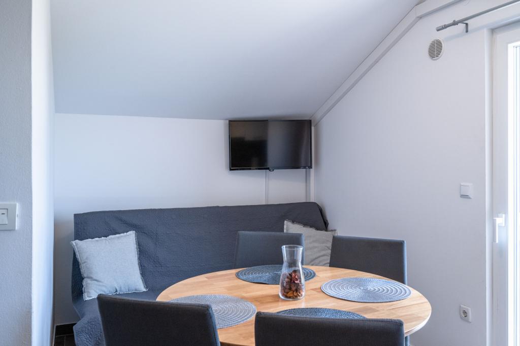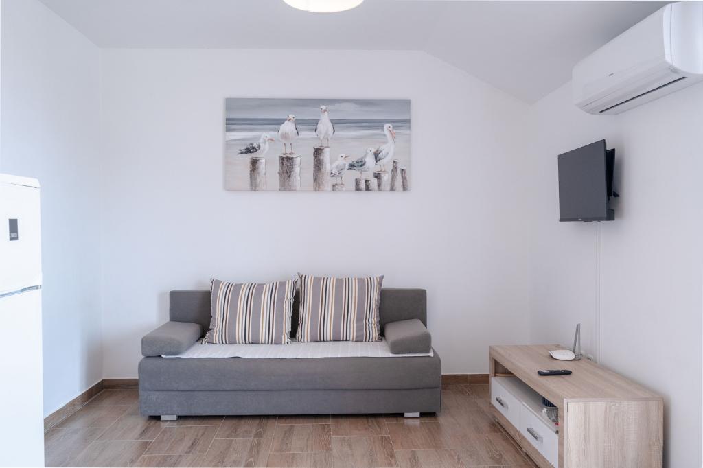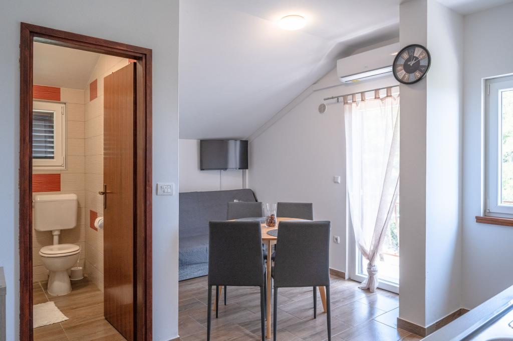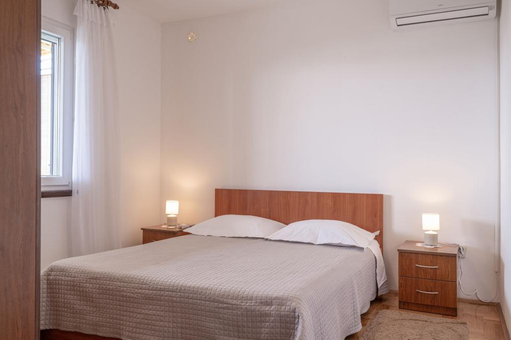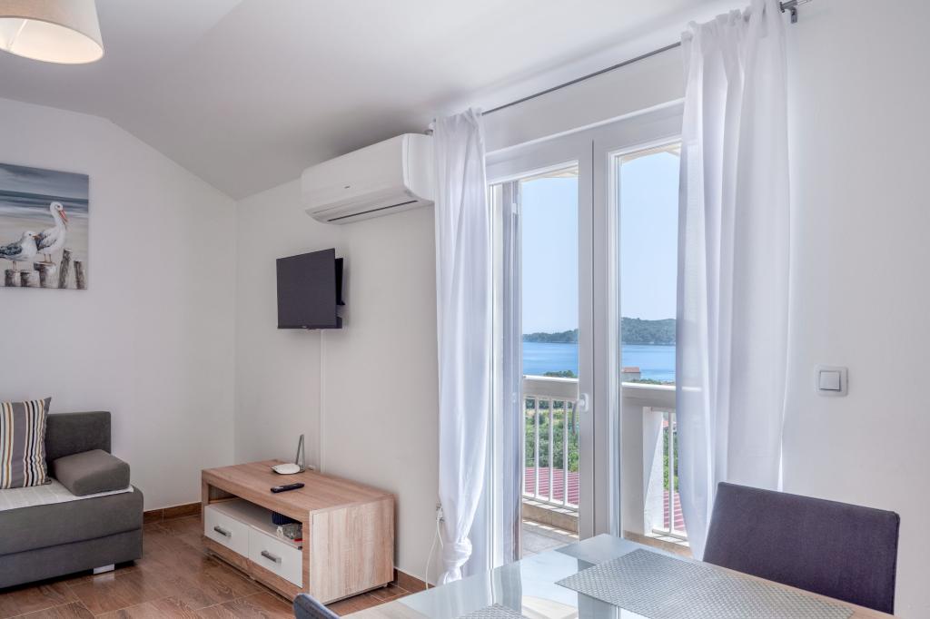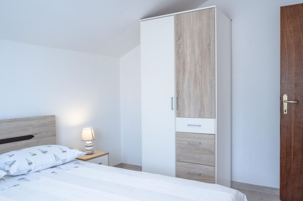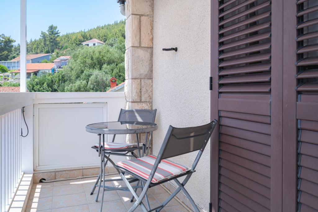 Apartamentele Prižba Bumba sunt cazări private pe insula Korčula, în orașul Prižba, cu 3 apartamente. Acestea sunt situate la 100 de metri de plajă. Aproape de plajă este de tip žal. Apartamentele au aer condiționat, internet, grătar, parcare. Balconul oferă o priveliște frumoasă asupra peninsulei Ratak și a insulelor mici. Cea mai apropiată plajă (m): 100 Tipul celei mai apropiate plaje: dale de beton, žal Distanța până la cea mai apropiată plajă cu pietriș (m): 100 Centrul orașului (m): 100 Restaurant (m): 100 Magazin (m): 300 Oficiu poștal: Blato, 10km Ambulanță: Blato, 10km Port feribot: Vela Luka, 17,5km Apartamentul nr. 1 este un apartament mare cu 2 dormitoare, iar în fiecare cameră se află aparate de aer condiționat.