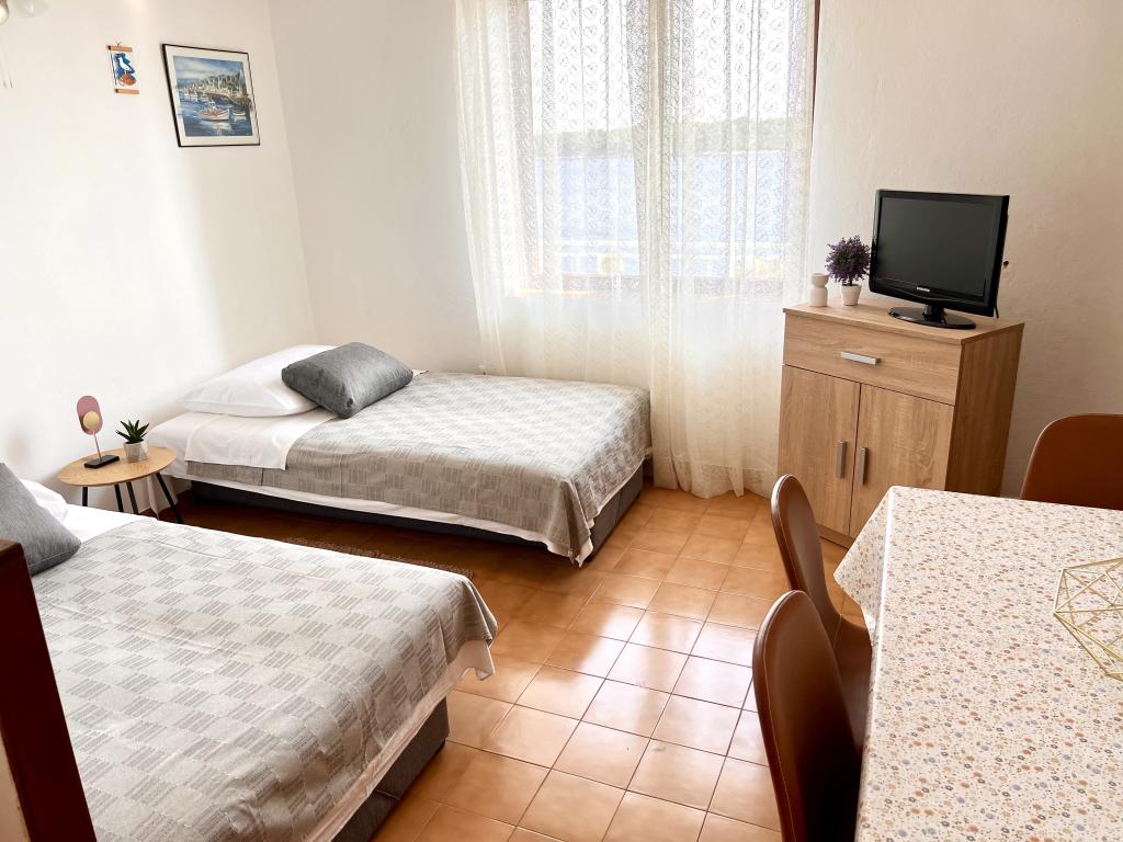 Apartamentele Franulovic sunt situate într-o zonă liniștită, Priscapac pe insula Korcula, înconjurat de pini. Ambele suite oferă vederi uluitoare cu o terasă acoperită pe mare de cristal și insule. Apartamentele constau dintr-o bucătărie cu toate facilitățile necesare, baie, si doua dormitoare (pat dublu, 2 paturi twin). . Wi-Fi este gratuit. Plaja privata la scari este de numai 60 m, și au, de asemenea, opțiunea de a utiliza dana pentru barca. Apartamentul este situat aproape de toate facilitățile, cum ar fi magazine, restaurante, plaja.