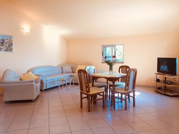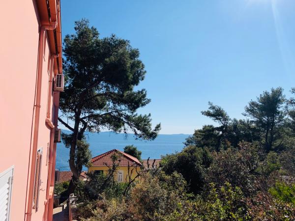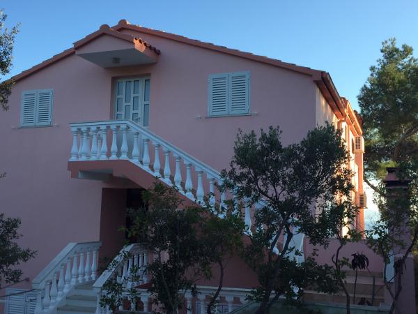 Prince Apartamentele sunt situate într-un loc retras, înconjurat de pădure de pini, cu o vedere frumoasă la mare și insulele din apropiere. 4 unități de cazare sunt moderne, sat TV, aer condiționat și un dispozitiv Wi-Fi. Apartament A8 1 până la 4 camere cu doua bai / toalete, mașină de spălat vase și mașină de spălat, un apartament A4 2 la ultimul etaj are o mașină de spălat și două băi / toalete, iar un apartament A1 are o mașină de spălat. Avem 6 locuri de parcare care sunt amplasate 5-6 m de casa. Casa este înconjurată de grădini, distanta de la mare este de 80 m, iar pe scări de beton plaja. La 5 metri de casa este un loc de joacă cu trambulină, leagăn, tenis de masă, mini-tobogan și grătar.