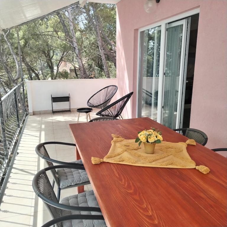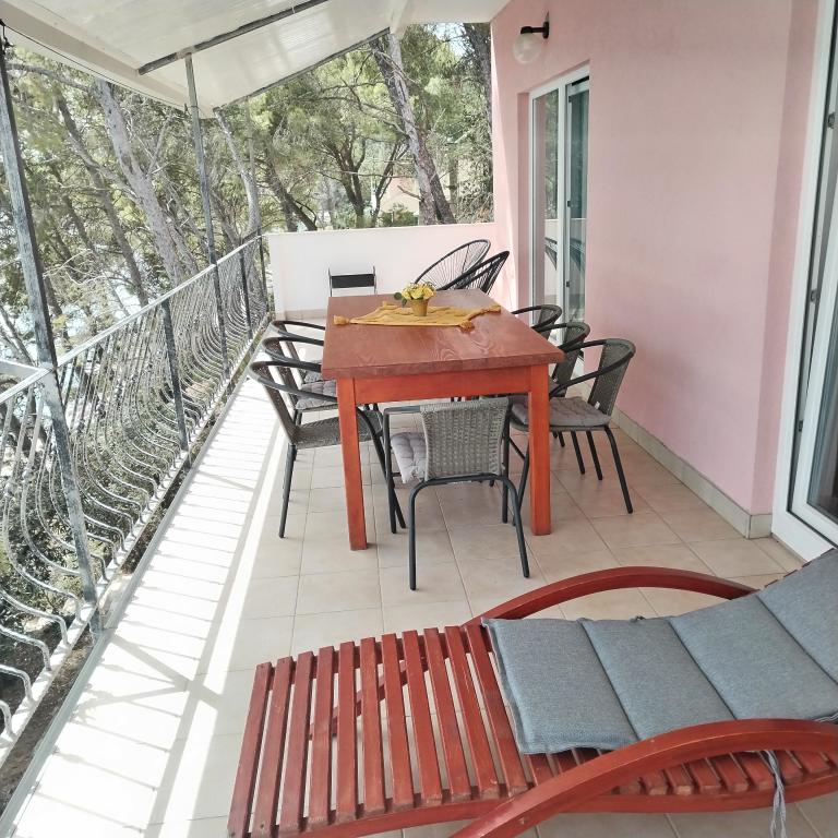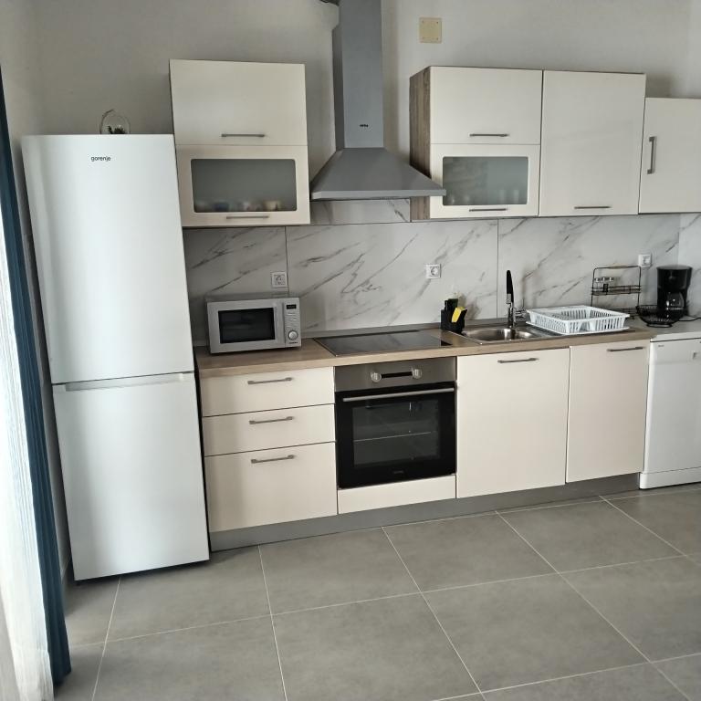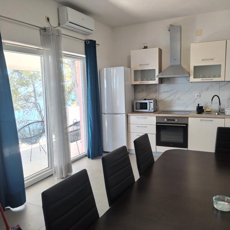 Apartamente livrate complet în orașul liniștit Prizba. Sunt situate pe primul rând la mare. Posibile excursii organizate la taverna noastră și achiziționarea de ulei de măsline și vin local. Dragi oaspeți, bine ați venit la cazarea noastră!