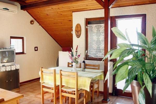 Apartament cu două dormitoare pentru patru sau cinci persoane, complet mobilat și utilat. Două dormitoare fiecare oferă 2 paturi și este posibil să folosiți un pat suplimentar. Bucătărie, sufragerie, living, baie, terasă cu vedere frumoasă la mare și la munte Biokovo. Apartamentul este situat la etajul al treilea. În fața casei există o grădină și grătar la dispoziția tuturor oaspeților pentru utilizare. Facilitatea se află la o scurtă plimbare de plajă și de centrul orașului Promajna. Toate celelalte facilități necesare se află în imediata apropiere.