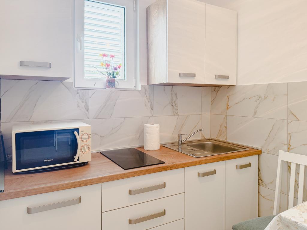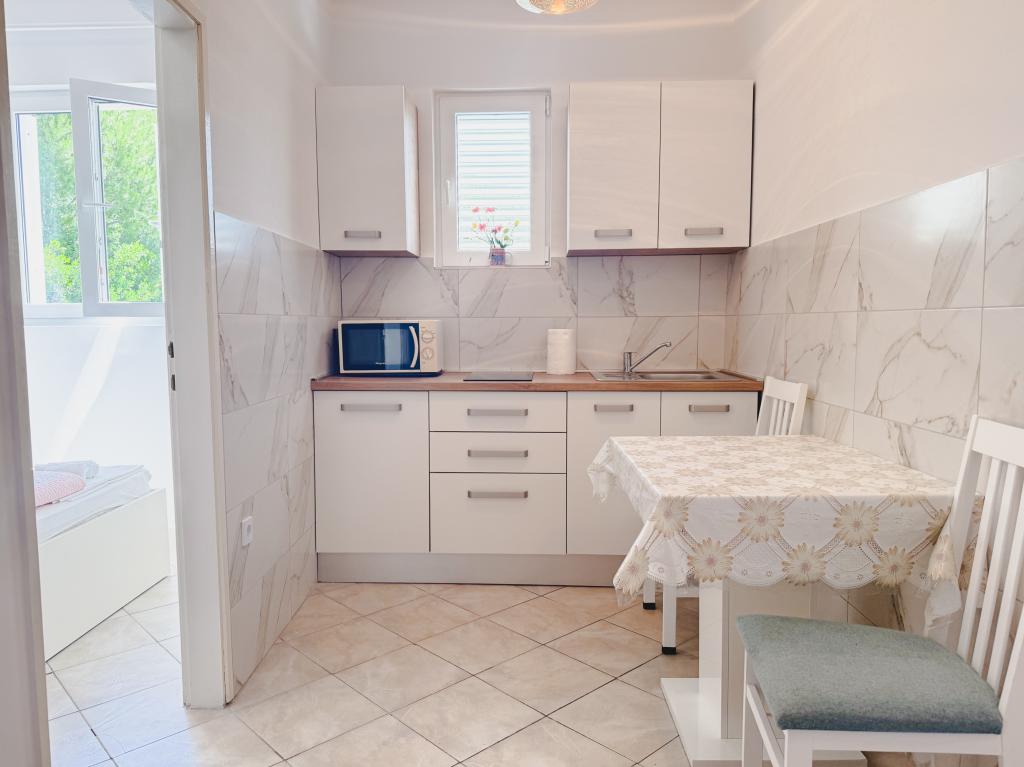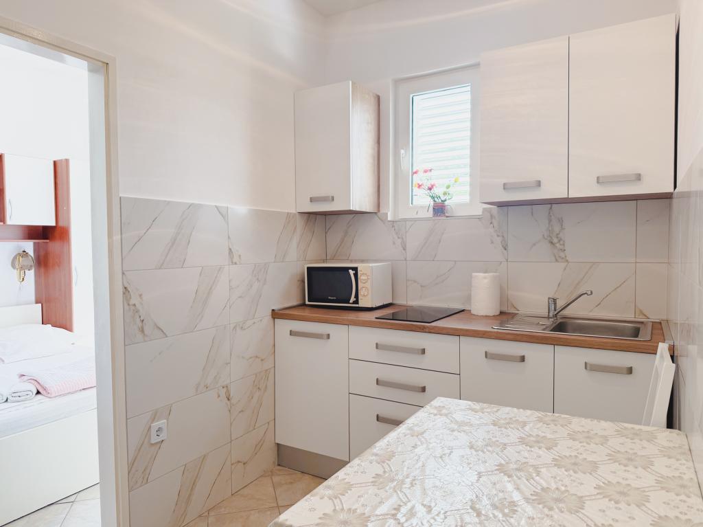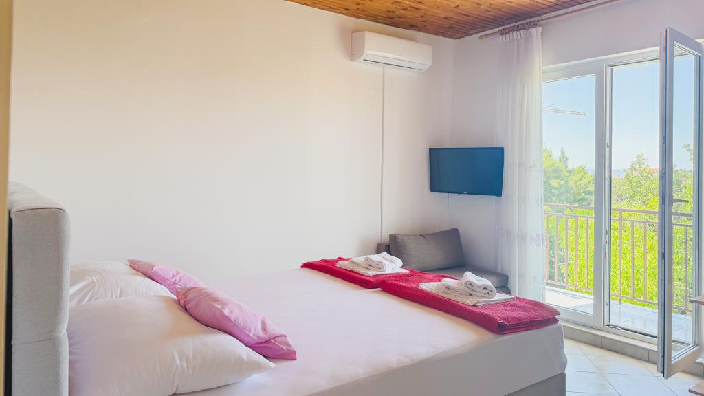 Rosemary Apartments sunt situate într-o zonă liniștită din Promajna, departe de zgomotul turiștilor și al mașinilor. Calea spre plajă este de 300 de metri. Apartamentele noastre au balcoane private cu vedere la mare, parcare privată, aer condiționat, 2 dormitoare și o bucătărie privată. În spatele casei există o terasă comună la umbră.
