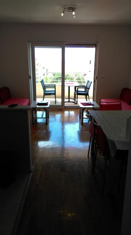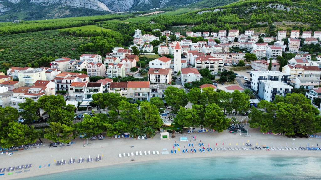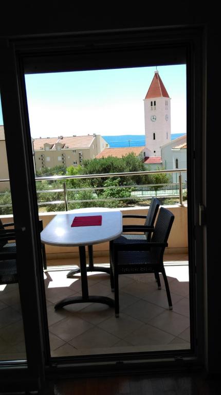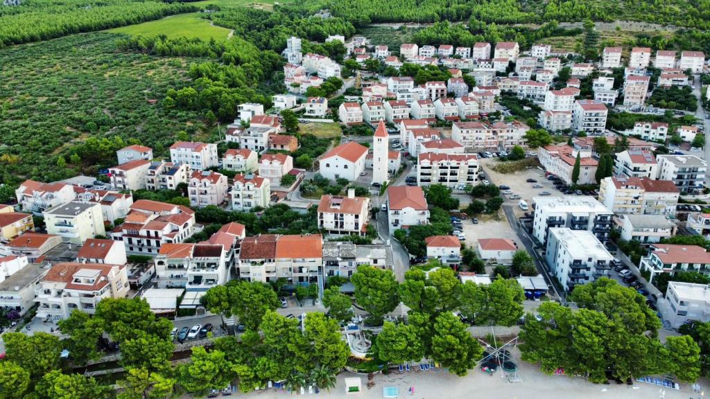 Apartamentul S2 (2+2) este situat în orașul Promajna, în centrul orașului, chiar deasupra (nord) bisericii - la aproximativ 100 m de plaja principală, la adresa Prilaz obali 24. Există o parcare pentru o mașină lângă apartament.