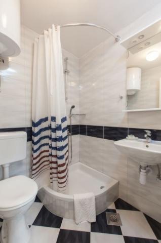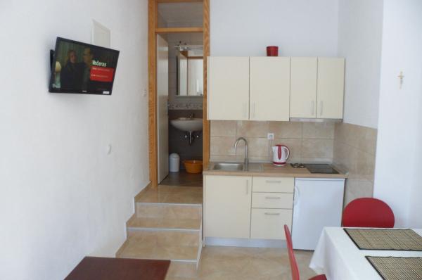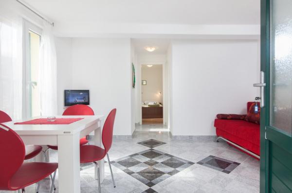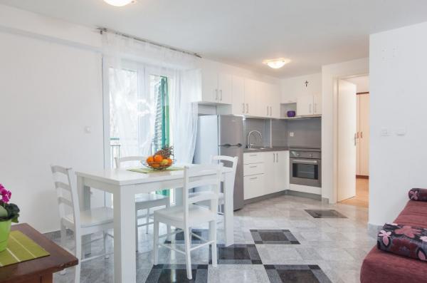 Am stat în Ap. 2 + 2 la etajul al treilea. Inaltimea nu a fost o problemă, pentru că, după descendent pe scări aproape sub plajă suflare. Plaja minunata cu pini și palmieri pentru cei care caută umbra. Apartament foarte frumos, camere nu prea mari, dar suficiente, în plus, nimeni nu a fost așezat în ele, pentru că am avut o terasă mare. O terasă cu vederi frumoase. Aceasta este șederea noastră 7 în Croația, dar panorame atât de minunat nu a avut niciodată. Am râs că micul dejun ochiul stang sa uitat la munți și chiar pe mare:-). Am fost un pic ingrijorat bucătărie separată (pe terasa), și sa dovedit a fi un avantaj. Ai putea obține atunci când doriți și de a lua mâncare gata, fără ai deranja pe ceilalți încă de dormit membri ai familiei. Internet a funcționat perfect. În bucătărie toate echipamentele necesare, cu un frigider mare. Foarte curate, prosoape schimbate, cu mici săpunuri de casă, cu siguranță, pe oliwce. O echipa - iubit de toate întâlnit până acum. Free primit 6 (pentru 3 persoane) și copt pește proaspăt prins pe gratar. Și încă, smochine împreună vase ales în grădină. Marea destul de adâncă, dar de cristal clar. Toate în toate, o vacanță foarte plăcută. Vă mulțumim Babić !!