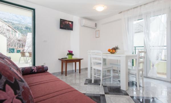 locație frumoasă, gazda sunt o mare familie, care va face totul pentru a asigura oaspeților lor o ședere plăcută în casa lor. Casa se afla aproape pe plaja, care este, de asemenea, frumos, cu palmieri și pini. Punctul de vedere în jur este uluitoare, Biokovo de munte, pe de o parte și de insule (Hvar, Brac) pe de altă parte. recomandat higly!