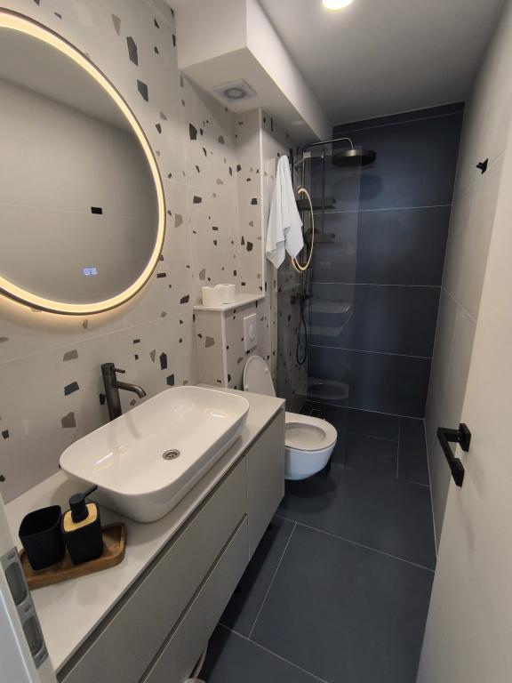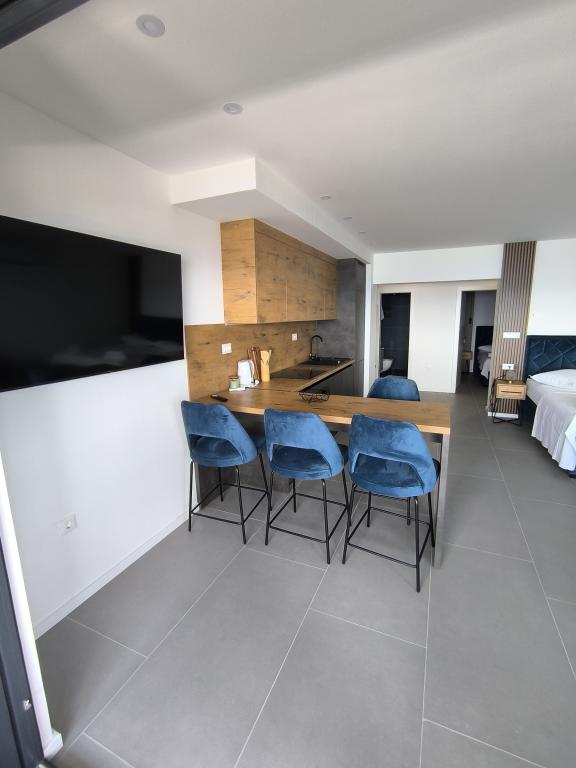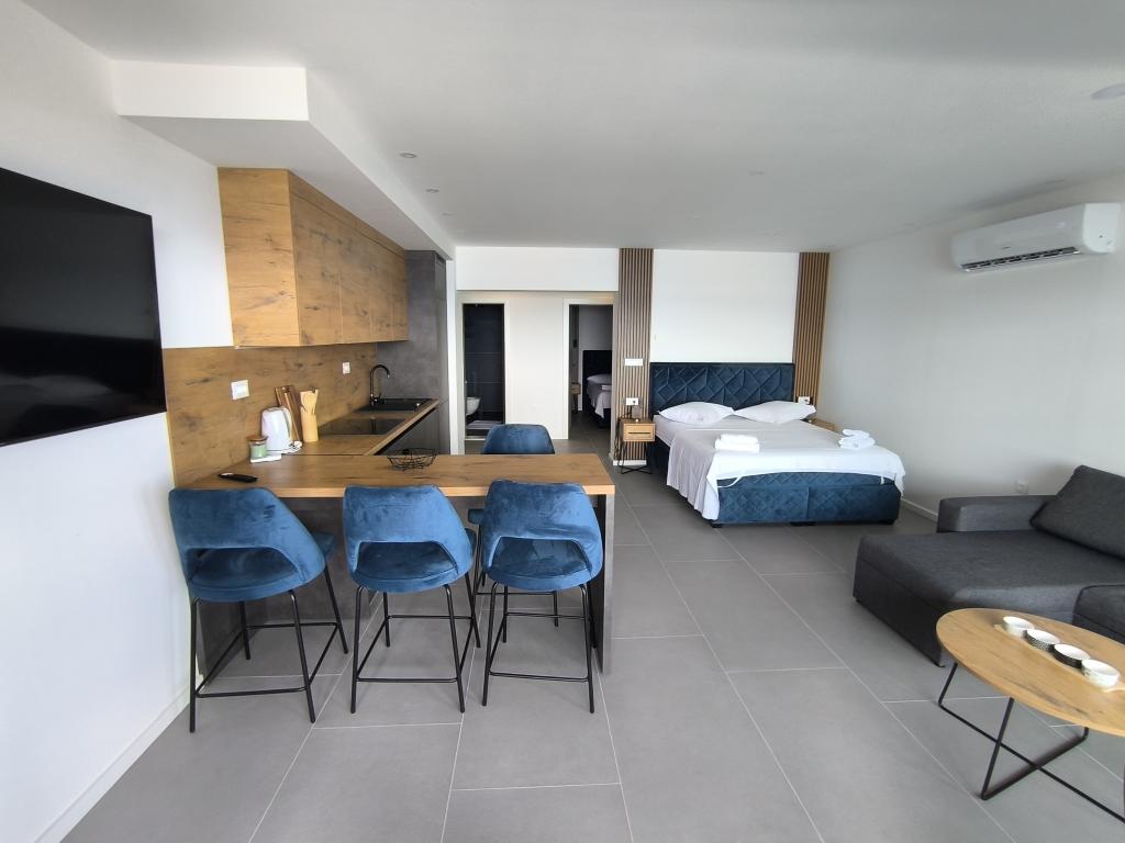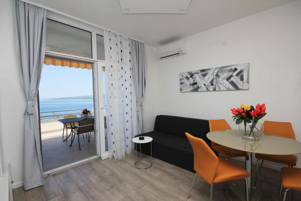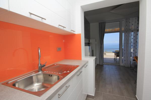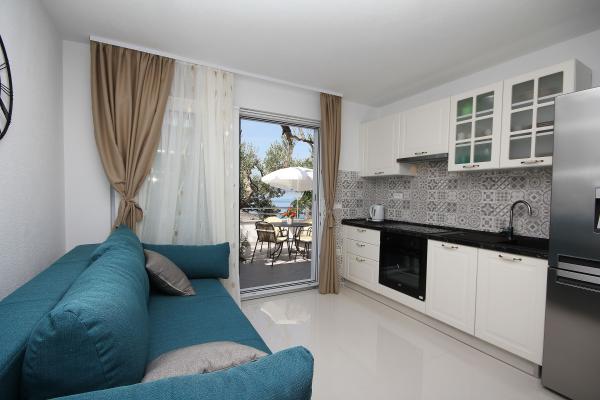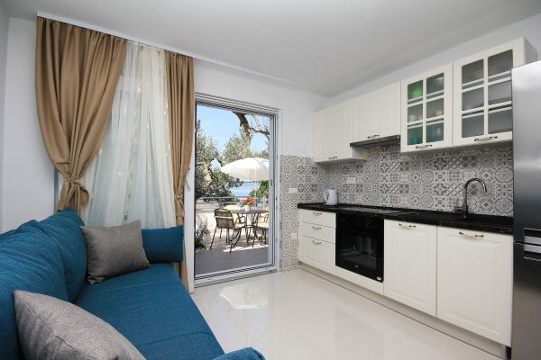 Apartamentul este îngrijit, funcțional, atrăgător din punct de vedere estetic și este completat de o terasă frumoasă cu vedere la mare și plante frumoase din jurul casei. Tot ce aveți nevoie este în apropiere (plajă, magazin, restaurant și cafenea) și nu există agitație. Proprietarii sunt foarte amabili și abordabili, gata să vă ajute dacă este necesar. Laudă