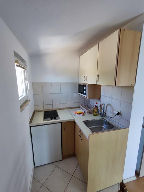 Apartamente mobilate frumos din satul liniștit dalmată, situat lângă mare; Main Beach (cu pietriș) este de la casa 20 m, în timp ce chiar sub casa este plajă stâncoasă