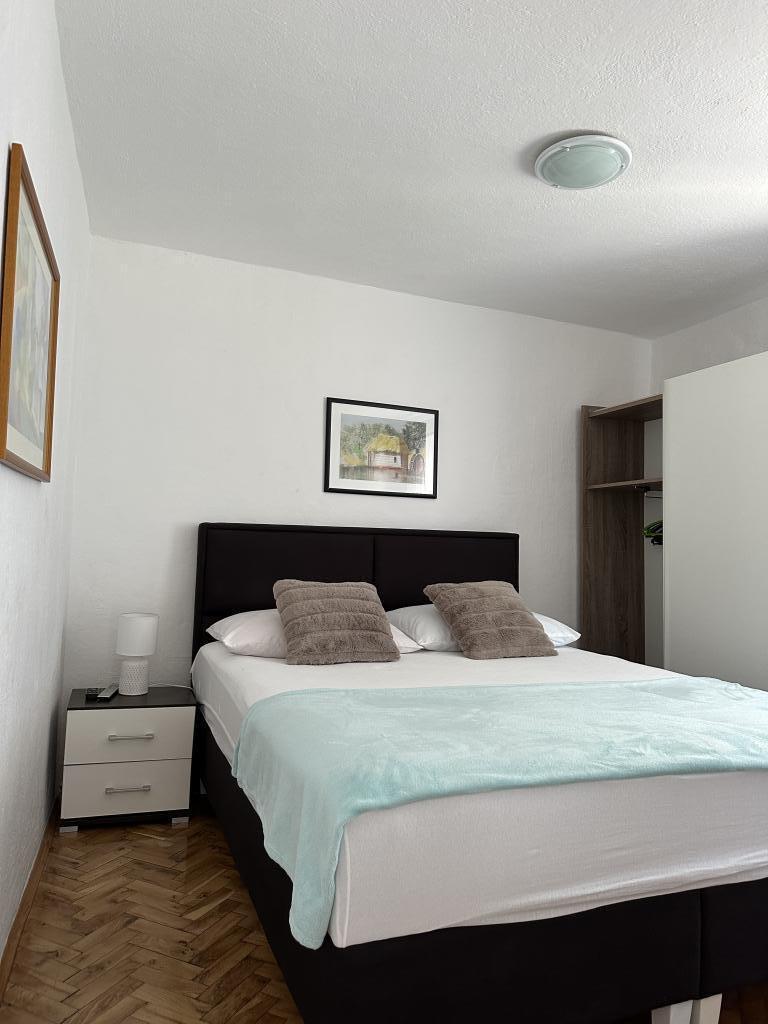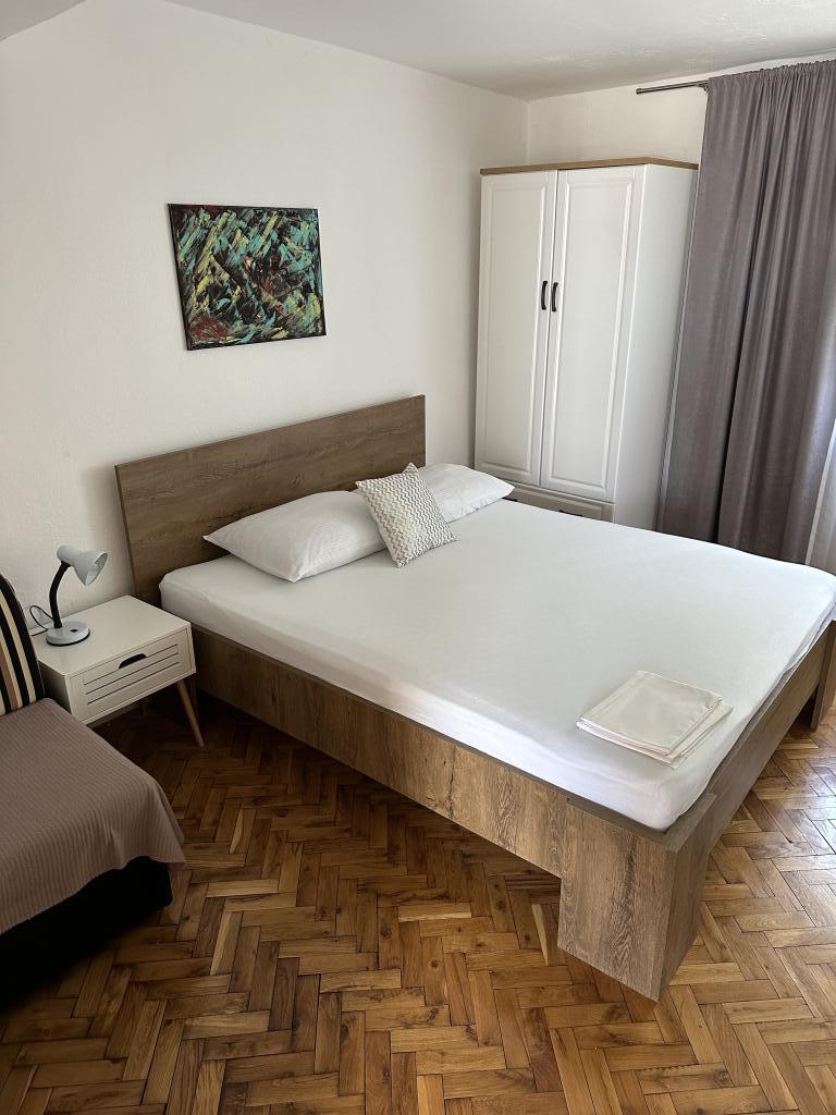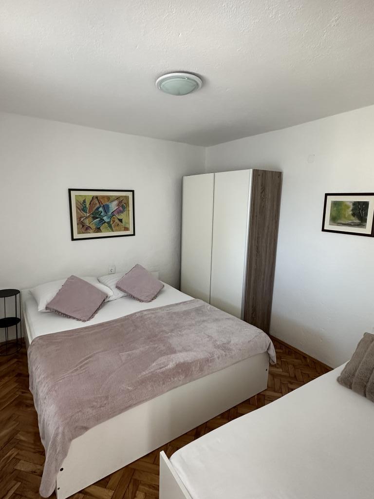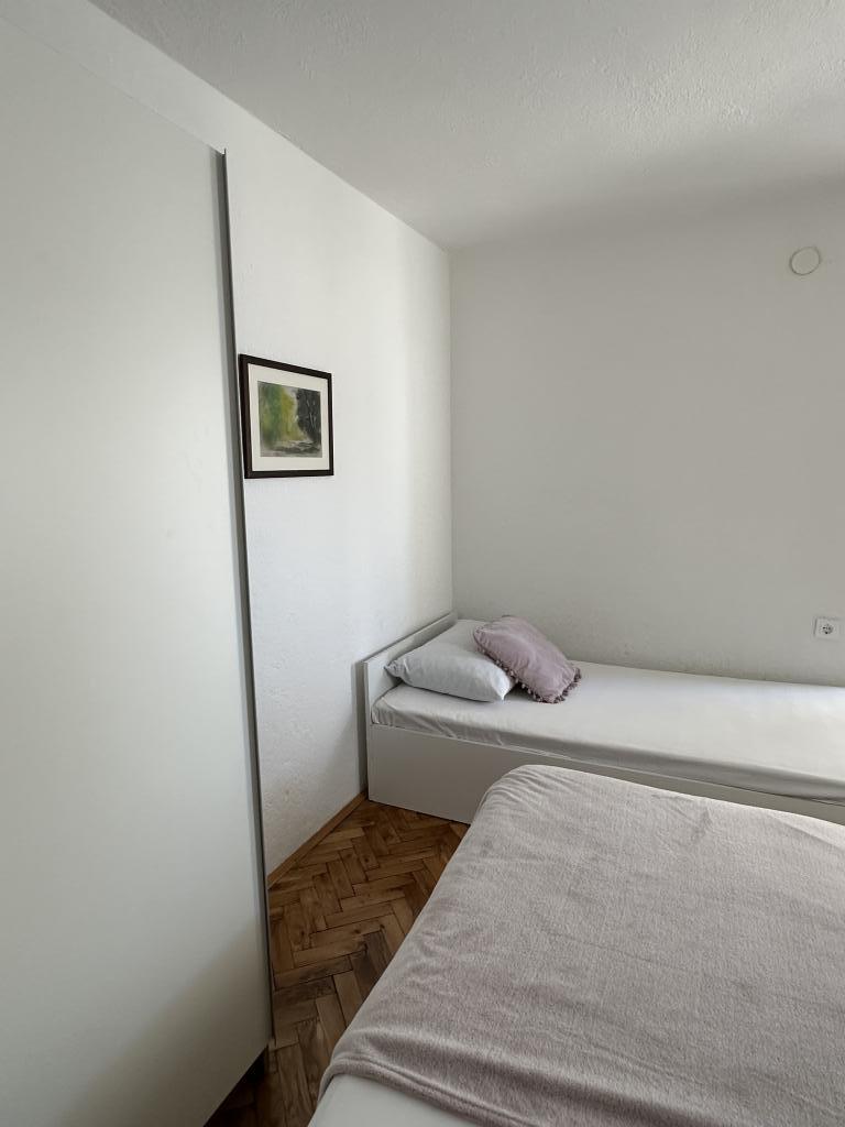 Apartament Promajna la 200 m de mare. Separat 3 apartamente la etaj cu vedere la mare. Parcare, TV, aer condiționat, internet. Plaja este situată într-o pădure de pin. O mică stațiune litorală ideală pentru vacanțe, lângă care există un sat de copii cunoscut pentru tratarea bronșitei. Fiecare apartament are două dormitoare cu paturi duble plus pat suplimentar, baie, bucătărie, terasă cu vedere la mare. Makarska la 5 km. Baska Vodă la 3 km distanță. Promajna este conectat cu promenada Baška Vodă prin pădurea de pin lângă mare. Prețul este de 80 de euro plus 1 € taxa de turist pe adult.