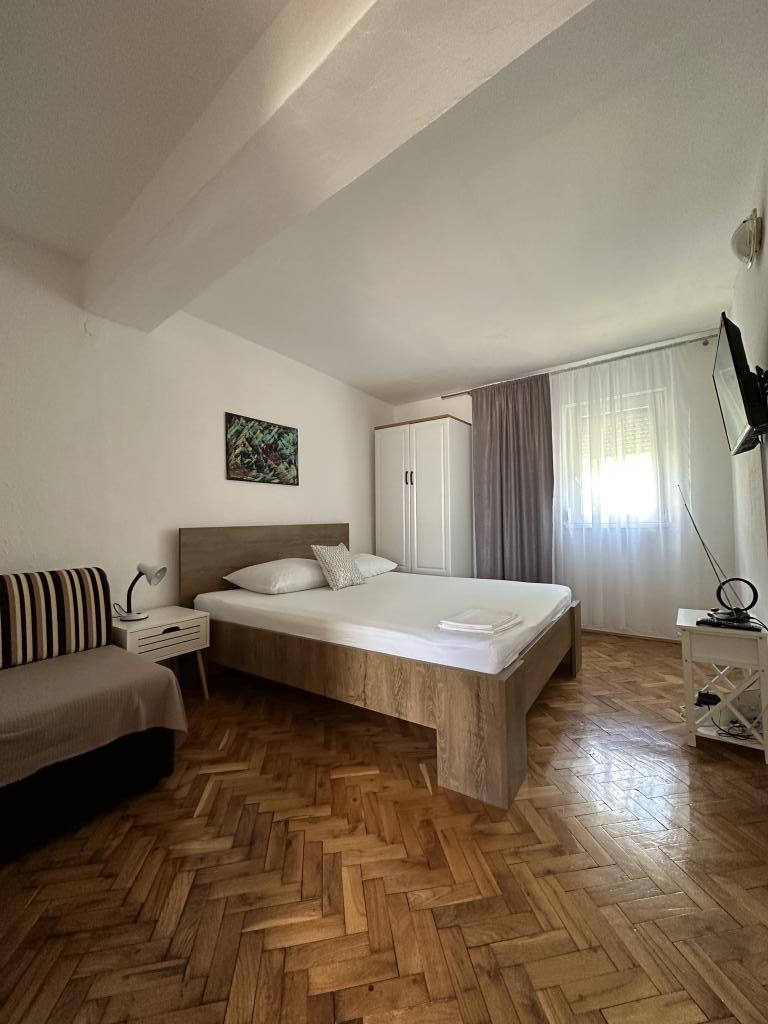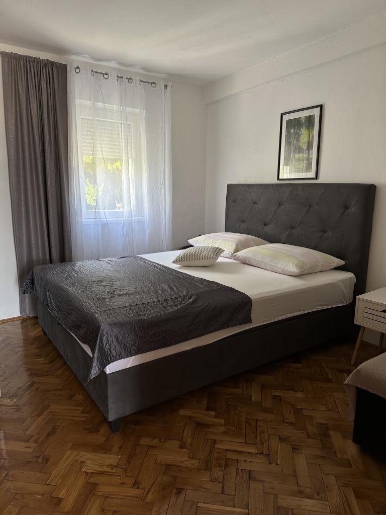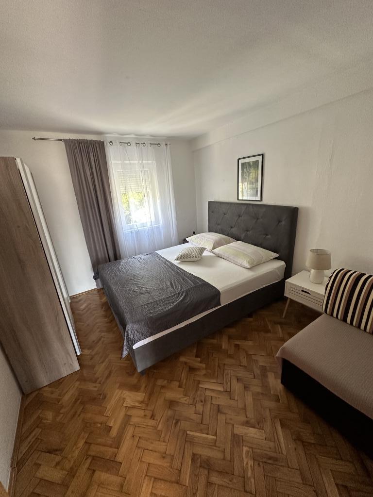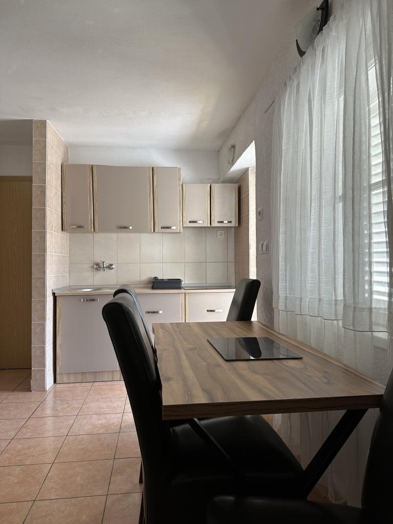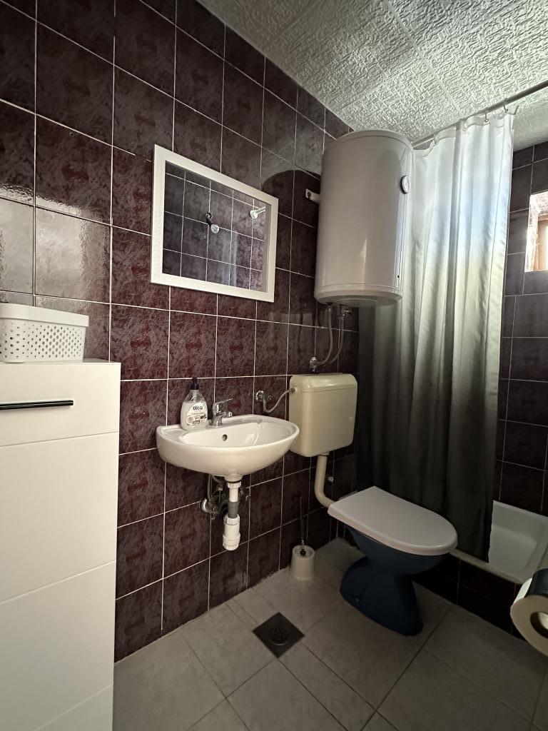 Apartament Promajna la 200 m de mare. Separat 3 apartamente la etaj cu vedere la mare. Parcare, TV, aer condiționat, internet. Plaja este situată într-o pădure de pin. O mică stațiune litorală ideală pentru vacanțe, lângă care există un sat de copii cunoscut pentru tratarea bronșitei. Fiecare apartament are două dormitoare cu paturi duble plus pat suplimentar, baie, bucătărie, terasă cu vedere la mare. Makarska la 5 km. Baska Vodă la 3 km distanță. Promajna este conectat cu promenada Baška Vodă prin pădurea de pin lângă mare. Prețul este de 80 de euro plus 1 € taxa de turist pe adult.