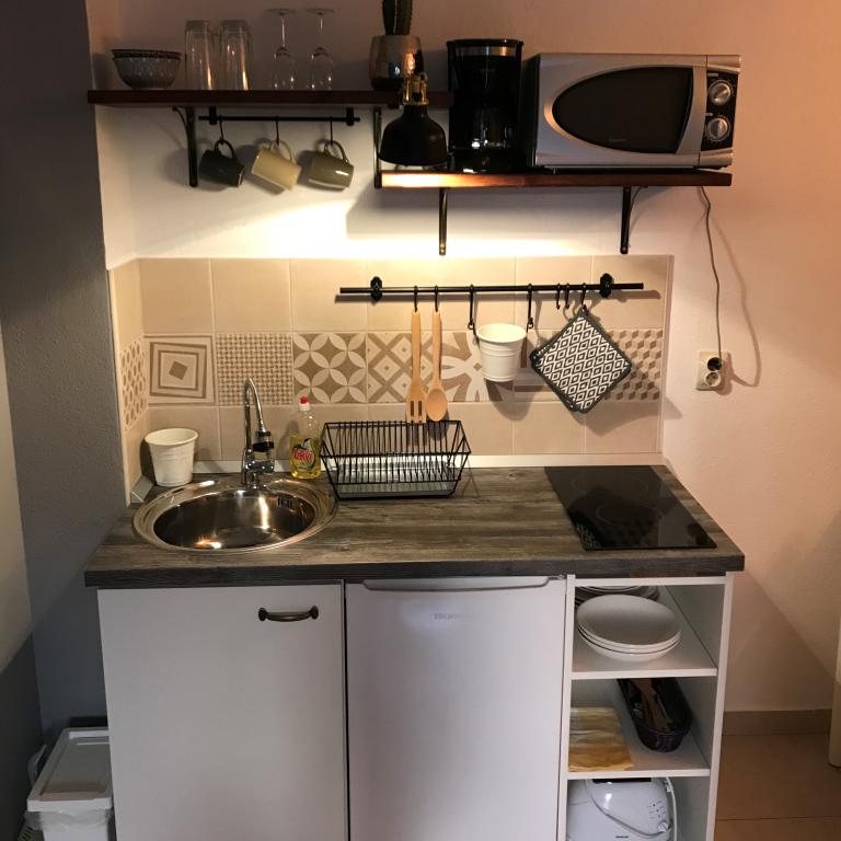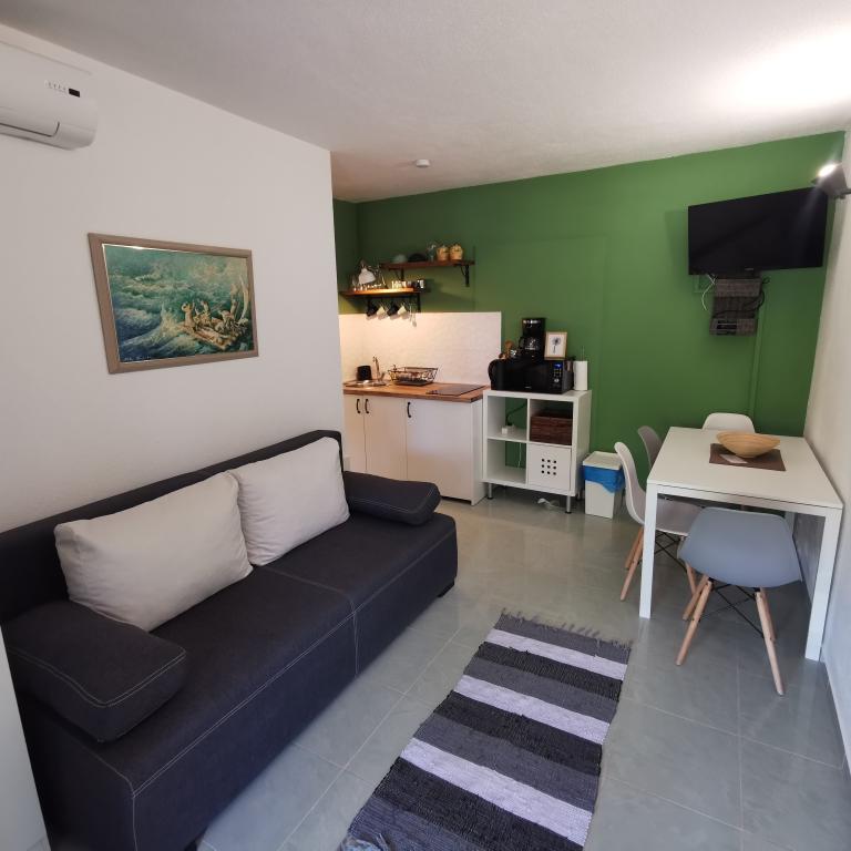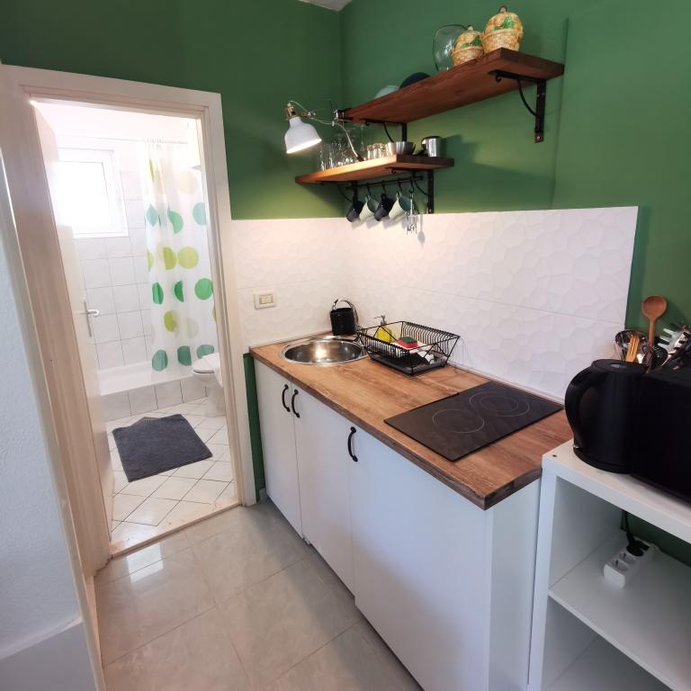 Recomand cu drag GOGA Apartmani. GARSONIERĂ: Cameră foarte curată și îngrijită cu bucătărie și baie. Standard ridicat de finisare. Bucatarie complet utilata. Și cel mai important lucru este proprietarul foarte prietenos al lui Luka, care este mereu acolo pentru a ajuta în cazul unei probleme. Vă mulțumim din nou pentru șederea dumneavoastră și sper să ne vedem pe viitor! Scor 11/10