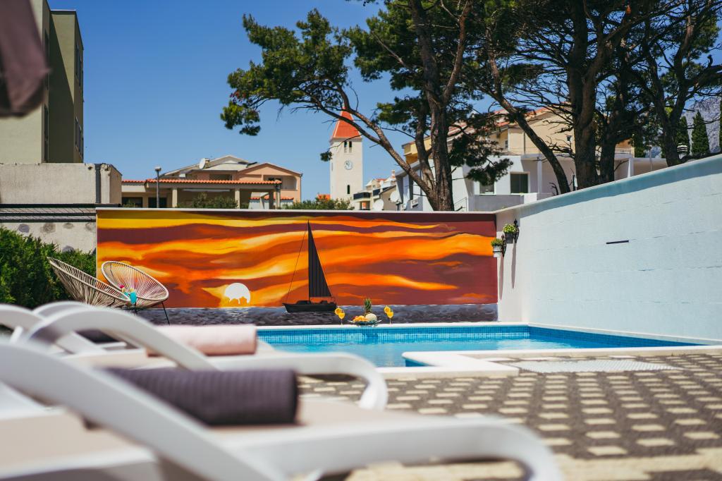 Apartament modern și echipat cu piscină într-un mic sat Promajna. Parcare gratuită în interiorul unității de cazare. Apartamentul este situat la 80 de metri de mare. În apropierea casei (150-300m) există un magazin alimentar, o instalație cu fructe și legume, restaurante, cafenele, magazin de suveniruri. Ceea ce puteți face în continuare este să închiriați biciclete și să călăriți de-a lungul coastei în locuri din apropiere, cum ar fi Baska Voda, Brela, Bratus. Pomajna este cunoscută pentru apusurile sale frumoase, plaja lungă cu pietriș. Promajna este situat la 7 km de orașul Makarska. De la Promajna aveți diverse posibilități și opțiuni pentru excursii cu barca pe insule, cum ar fi Brač, Hvar, Korčula, Vis ... Aveți, de asemenea, posibilitatea de a face excursii pe muntele Biokovo (skywalk) și de a face rafting pe râul Cetina. Cu siguranță Promajna este o mică oază pentru a petrece o vacanță frumoasă, însorită și fără griji.