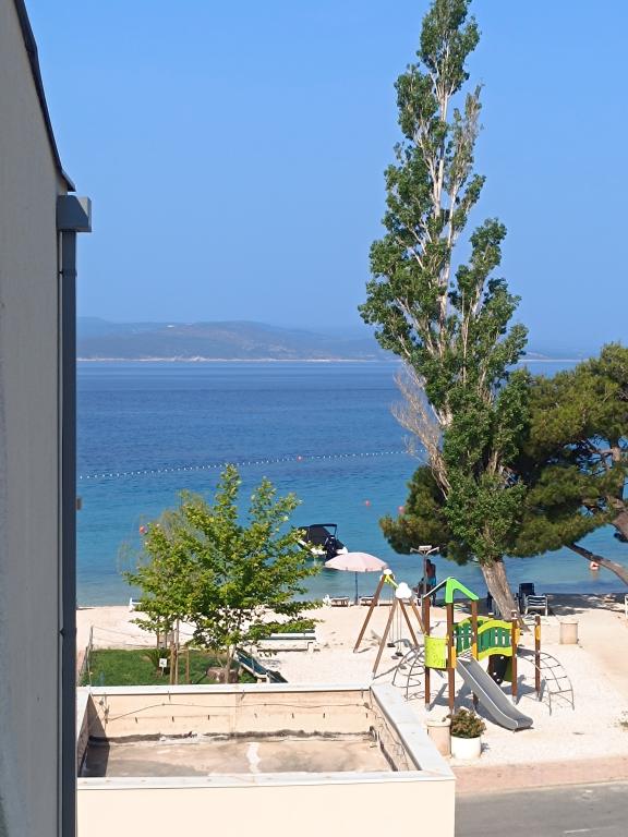 Apartamentele complet echipate Marin sunt situate în centrul orașului Promajna, la doar 20 m de parc, plajă și mare, la 50 m de magazin, piață și oficiu poștal. Cel mai mare avantaj este apropierea de plajă în sine (20 de metri) precum și ușurința de a ajunge la ea (fără scări). Te poți bucura de toată ziua pe plajă cu umbră naturală și pietricele mici. Ideal pentru familiile cu copii mai mici. În direcția Baška Voda, sunt promenade de-a lungul mării (3km) și pe toată lungimea au plaje frumoase pe gustul tuturor, inclusiv FKK.
