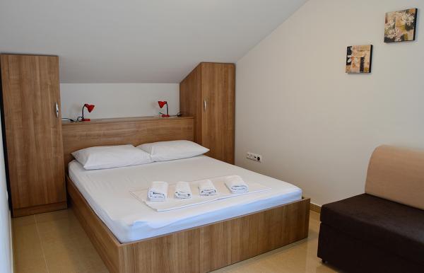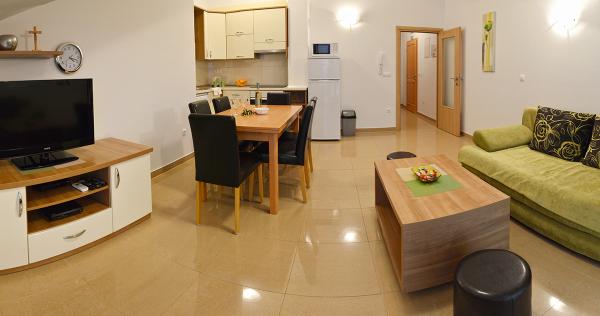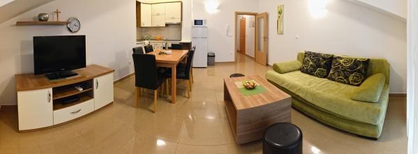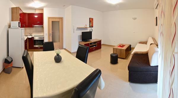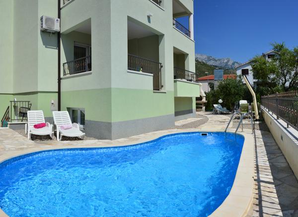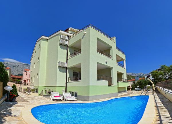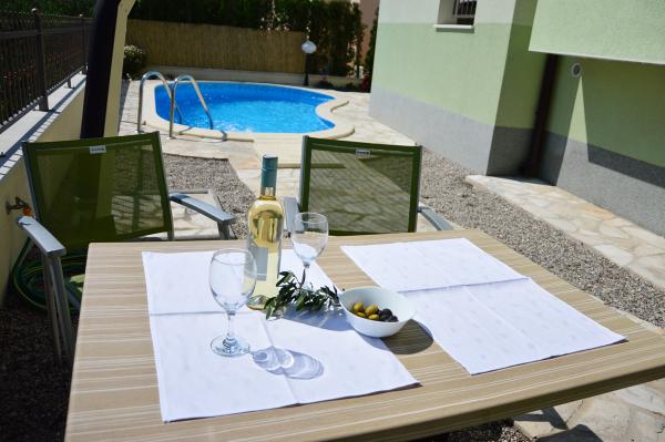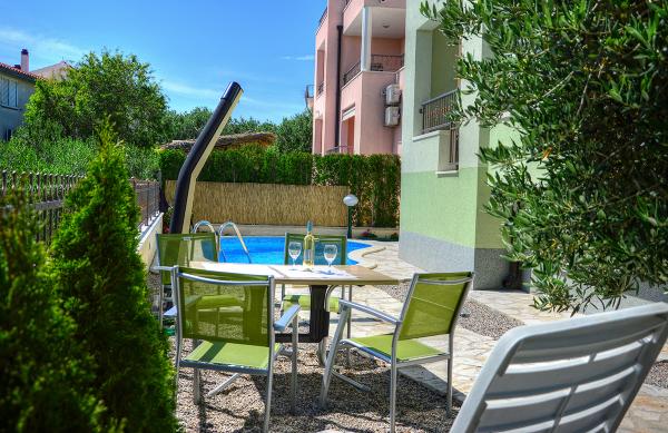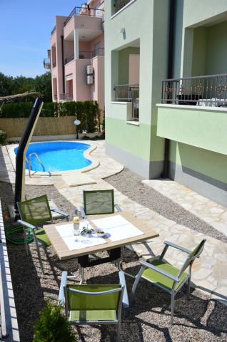 Ne-am cazat intr-un apartament 2+2 la subsol. Totul a fost frumos curat, nou, complet echipat. Am urcat scările și am putut sări direct în piscină. Piscina era frumoasa, curata. Gazda este foarte drăguță. Marea este aproape, la 3 minute de mers pe jos de casa. Toate în 1*. Ne-ar plăcea să revenim aici!