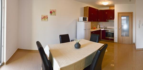 Toate apartamentele sunt noi și dotate luxos. Lângă casă este o piscină. Apartamentele sunt la 60 de metri de plajă.