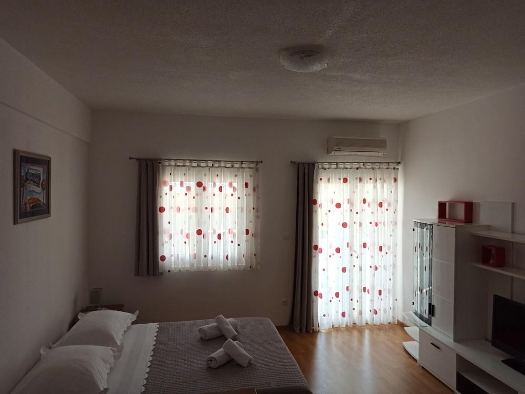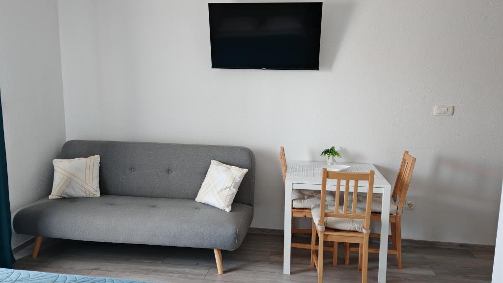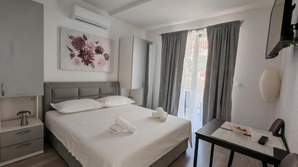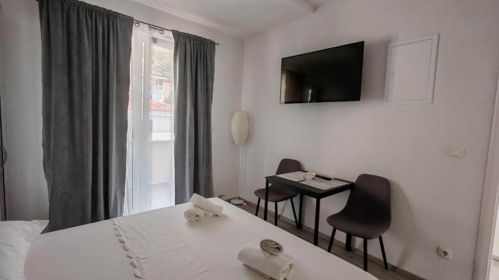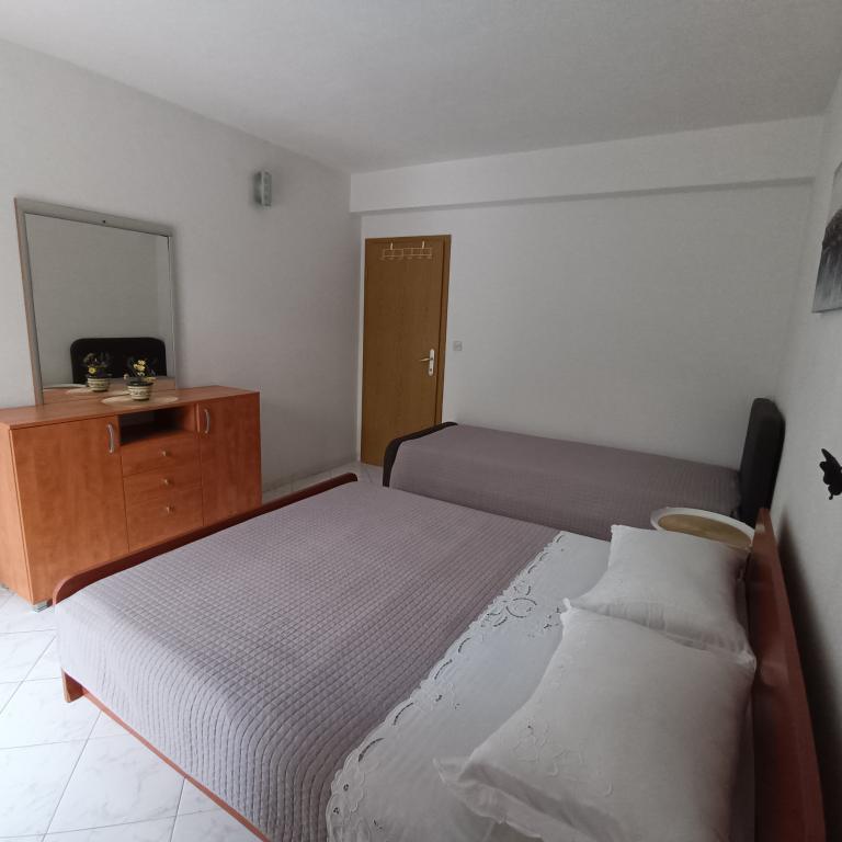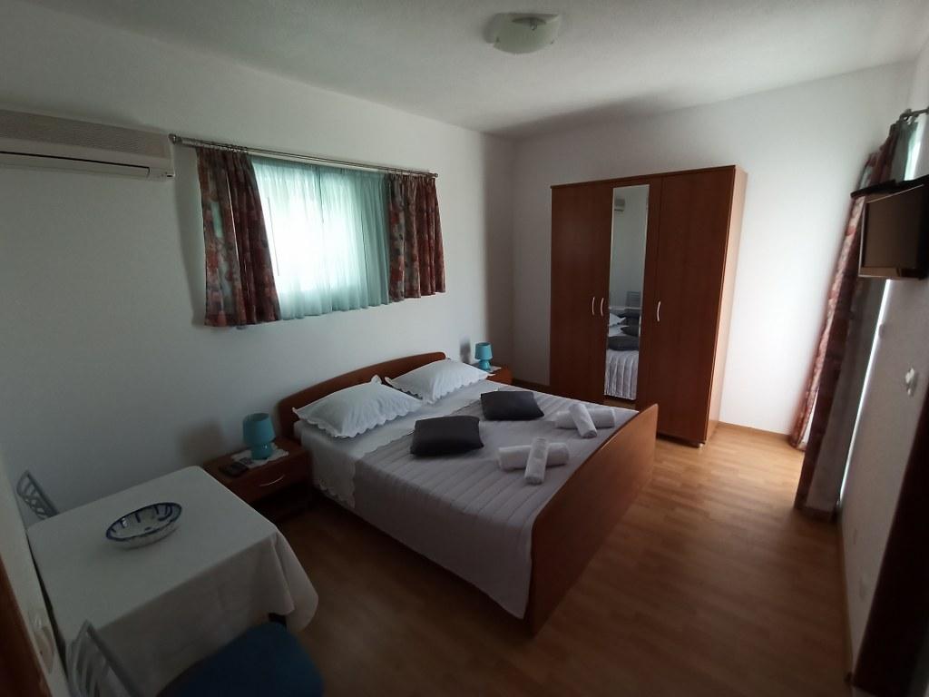 Ne-am cazat intr-o camera dubla cu baie, bucatarie complet utilata si balcon cu vedere laterala atat la mare cat si la munte. Camera a fost foarte curată și ordonată, fără rezerve. Proprietarul a fost disponibil la fața locului, foarte comunicativ și de ajutor nu doar în materie de cazare, ci ne-a și sfătuit unde să mănânce bine și ieftin, de unde să cumpărăm cel mai bun ulei de măsline de casă etc. La anul cu siguranță vom vizita de această dată cu prietenii.