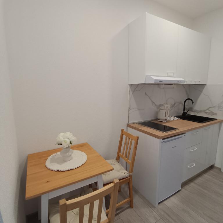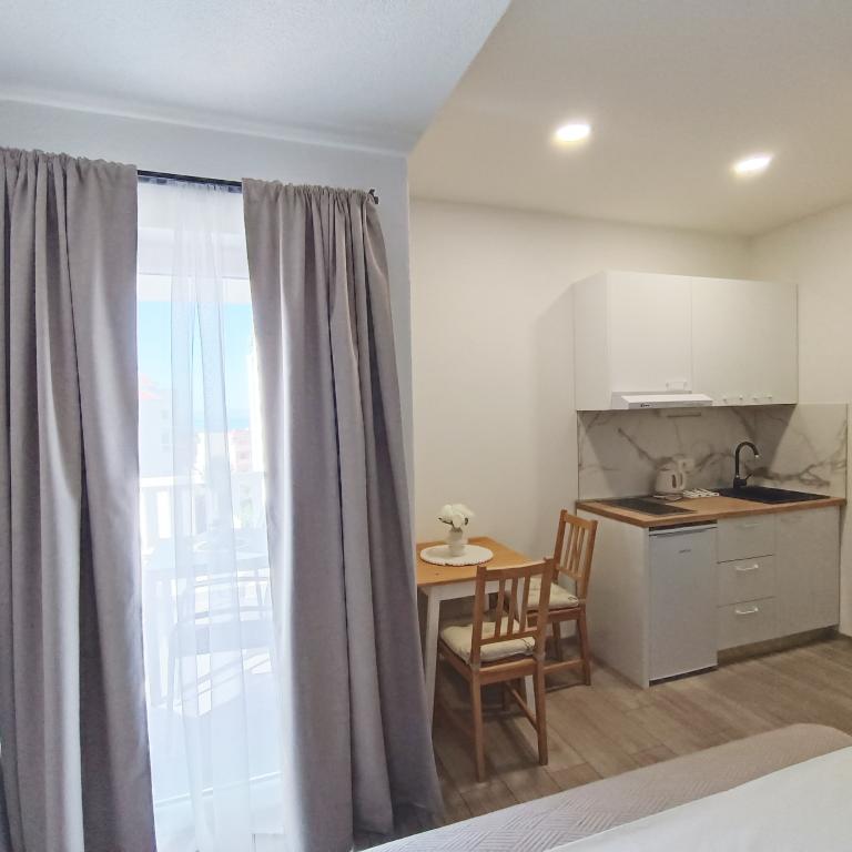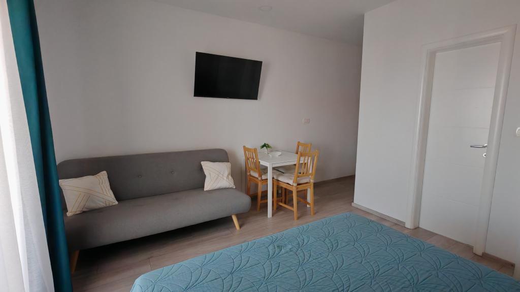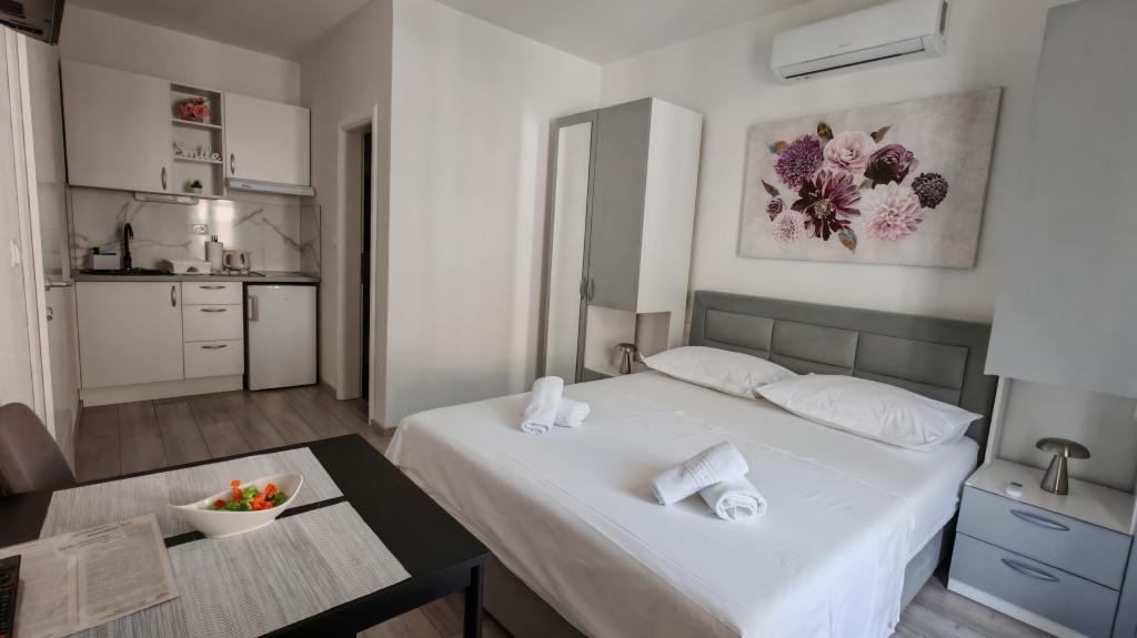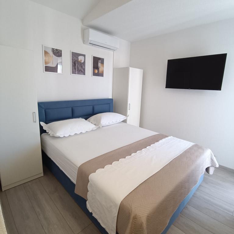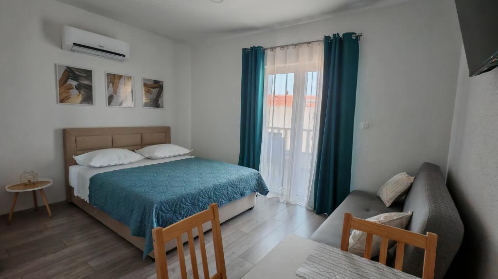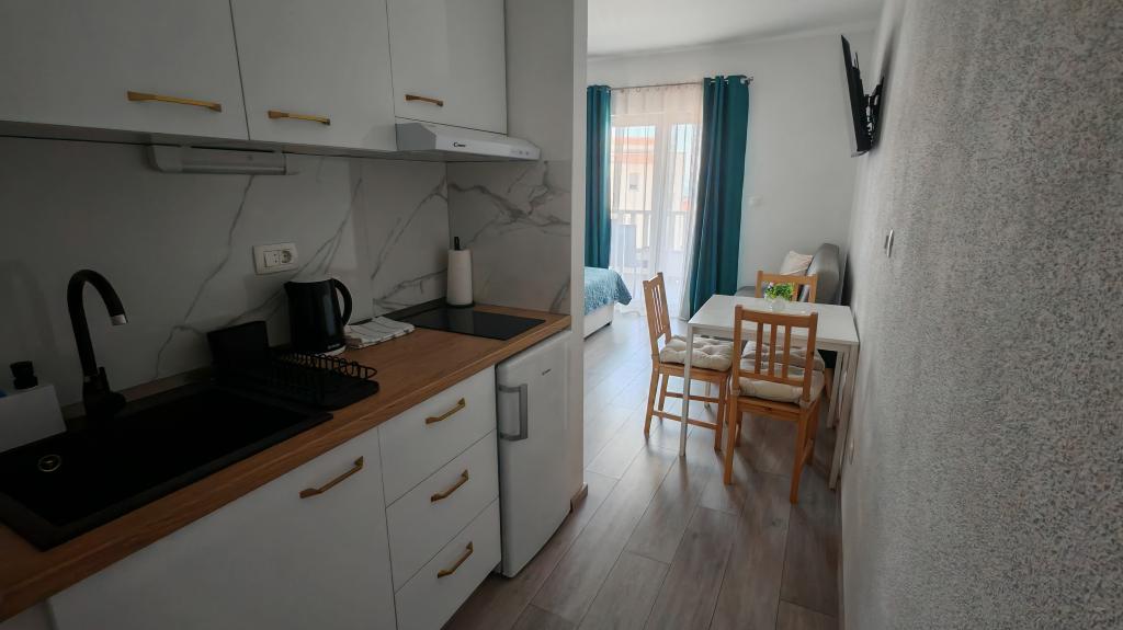 Ne-am cazat intr-o camera dubla cu baie, bucatarie complet utilata si balcon cu vedere laterala atat la mare cat si la munte. Camera a fost foarte curată și ordonată, fără rezerve. Proprietarul a fost disponibil la fața locului, foarte comunicativ și de ajutor nu doar în materie de cazare, ci ne-a și sfătuit unde să mănânce bine și ieftin, de unde să cumpărăm cel mai bun ulei de măsline de casă etc. La anul cu siguranță vom vizita de această dată cu prietenii.