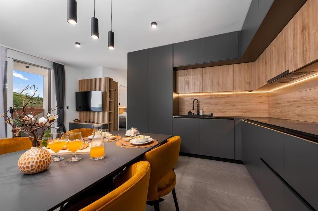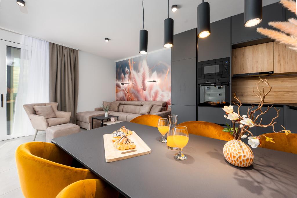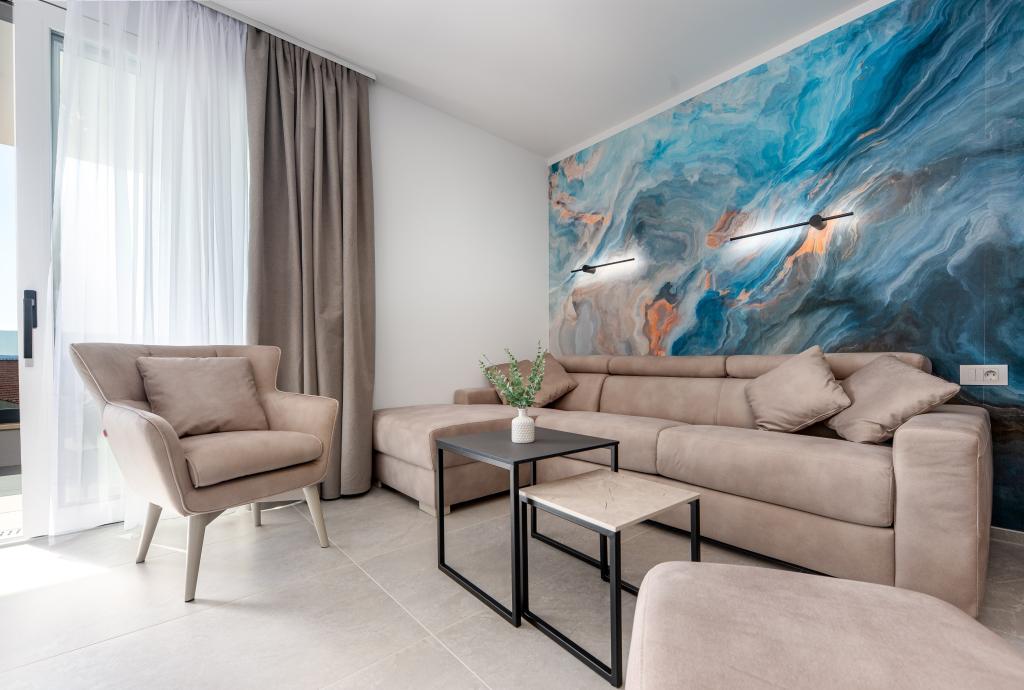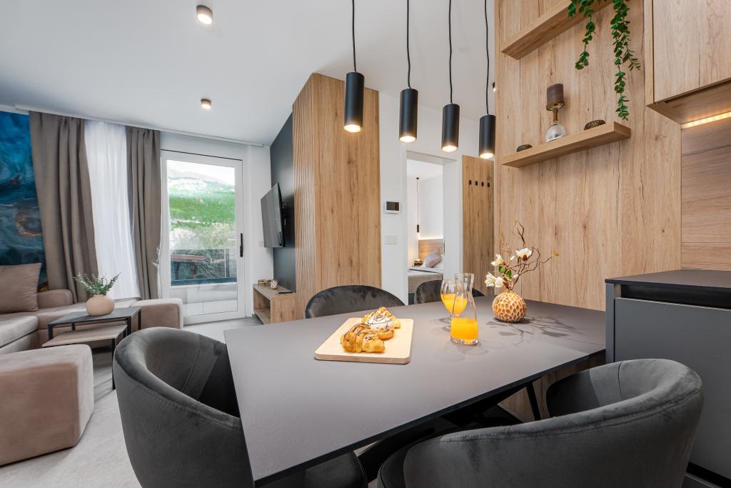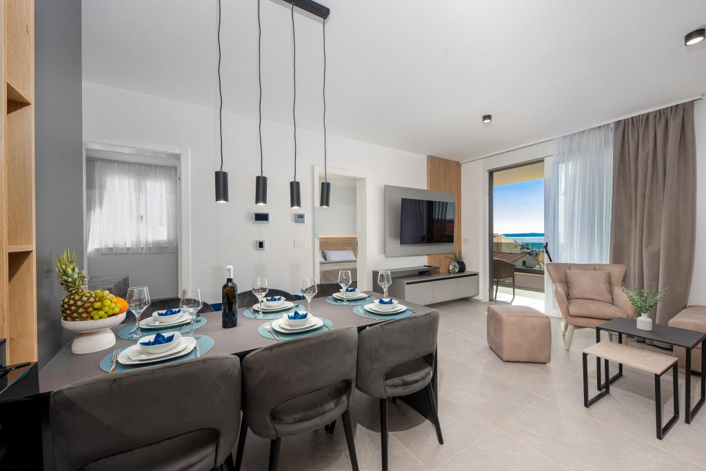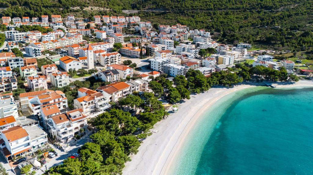 Apartamentele Sunshine-Breeze de pe strada Prilaz obali 22a din Promajna oferă apartamente complet utilate și modern, de 3 x 4+2 persoane și 3 x 2+2 persoane, într-o zonă liniștită a orașului, ideale pentru o vacanță relaxantă. Complexul este situat la doar 2 minute de mers pe jos de plaja principală. Toate apartamentele sunt dotate cu aer condiționat, Wi-Fi gratuit, parcare și terase spațioase pentru a vă bucura de atmosfera mediteraneană. Apartamentele 2+2 au vedere la mare și la Bijokovo, iar apartamentele 4+2 au vedere la mare. Apartamentele Sunshine-Breeze sunt o clădire nou construită. Toate bucătăriile sunt modern utilate (frigider cu congelator, aragaz, cuptor, fierbător, mașină de spălat vase, aparat de cafea... toate băile sunt modern dotate cu mașină de spălat, uscător de păr... Paturi boxspring de cea mai bună calitate cu saltele medicale superlux de înaltă calitate. Este alegerea perfectă pentru familii, cupluri și toți cei care doresc să se bucure de frumusețile Rivierei Makarska.