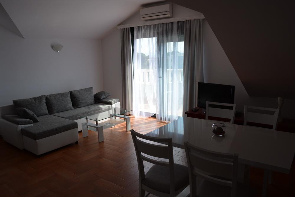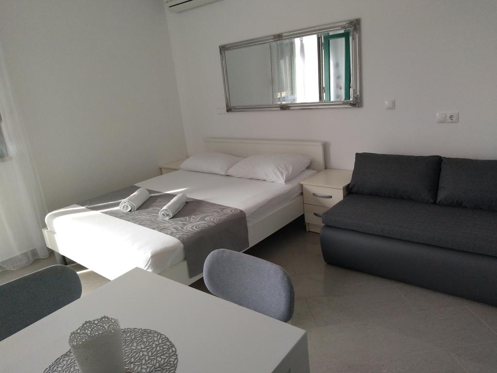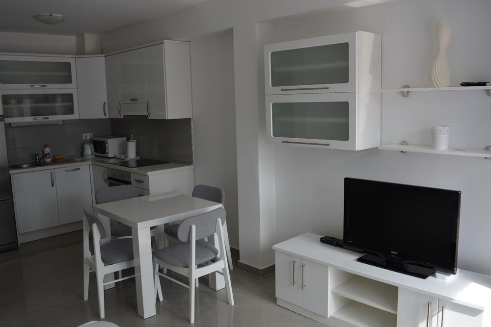Am închiriat două apartamente. Rezultă că ambele apartamente sunt situate în clădiri separate pe partea opusă străzii, deși sunt listate în același anunț. Acest lucru nu a interferat cu funcționalitatea, deoarece le puteți folosi pe ambele. Locația este așa cum este descrisă. Aproape de plaja orasului, dar era foarte aglomerat, asa ca am mers 500m mai departe. Magazin Konzum în apropiere. Ambele apartamente sunt foarte diferite ca standard, deși prețurile sunt aceleași. Apartamentul 46737 este mai mare și mai modern. Are o bucatarie mare cu echipamente moderne, o baie cu bideu (nu este disponibil in 65273) si doua terase. Apartamentul 65273 ar trebui să fie cu siguranță mai ieftin. Terasă mică unde este greu să mănânci o masă pentru 5 persoane. Bucătăria era cea mai proastă. Dimensiunea sa și lipsa unui blat au făcut imposibilă utilizarea eficientă. Ustensile de bucătărie (oale) grav deteriorate. Foarte puțin tacâmuri, adică unul de persoană. Balconul are o copertina care protejeaza eficient impotriva soarelui. Apartamentul are aer conditionat functional. Avantajul este o parcare mare.