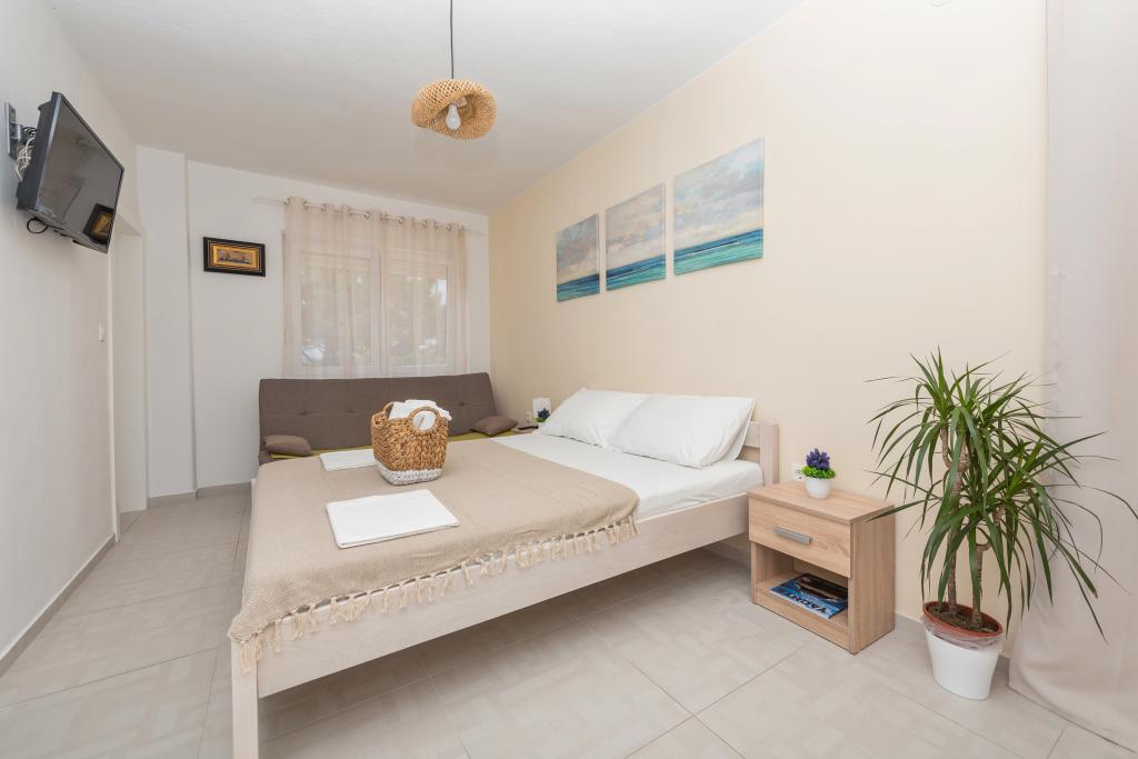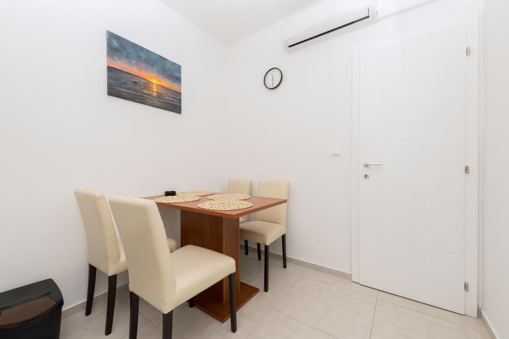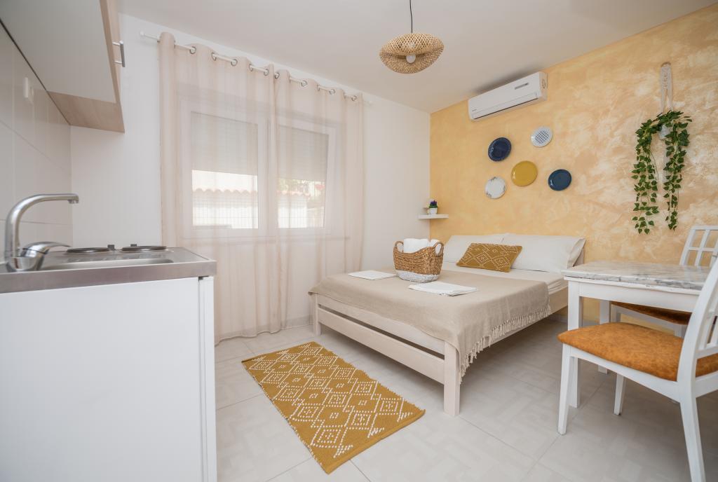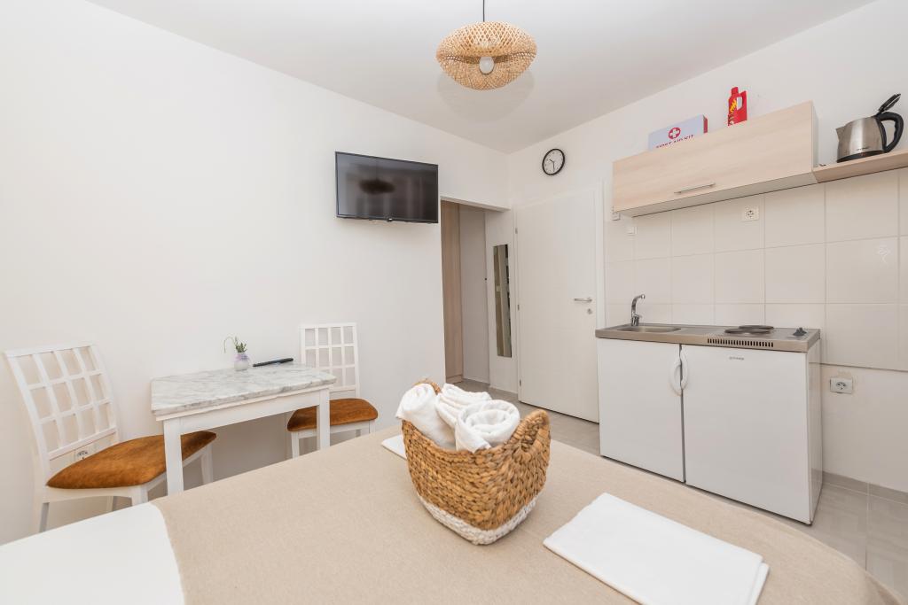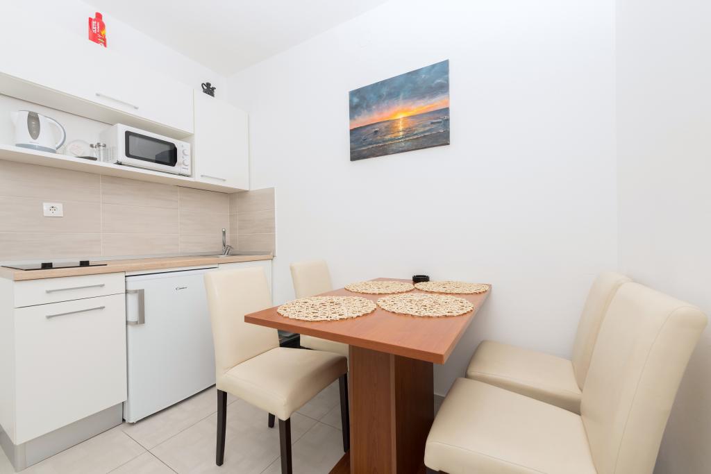 Apartamentele sunt situate în Promajna, un frumos loc mic ideal pentru vacanță. Facilitatea este situată în primul rând către mare, în mijlocul unei plaje publice care abundă în umbră naturală (pin). În cadrul facilității avem un restaurant care oferă un meniu zilnic la prețuri accesibile și o gamă largă de mâncăruri à la carte. Apartamentele sunt complet echipate și pregătite pentru vacanța de vis.