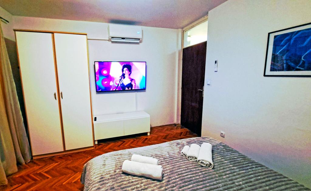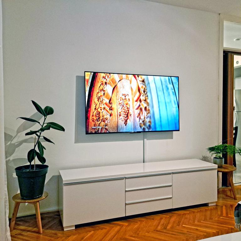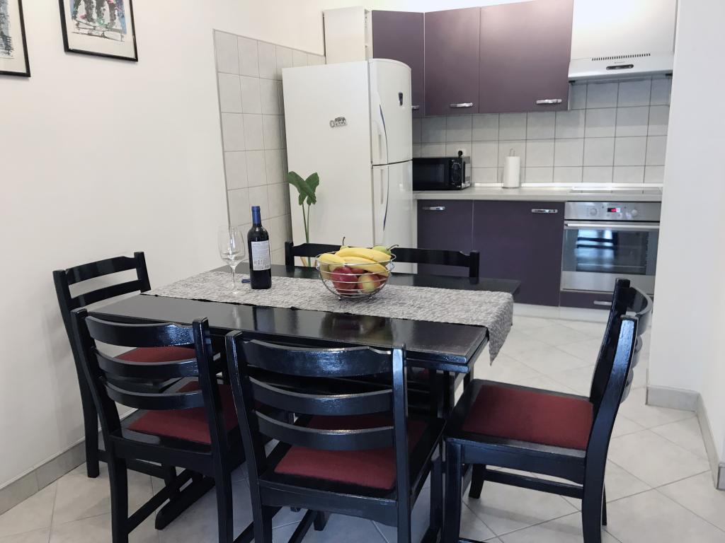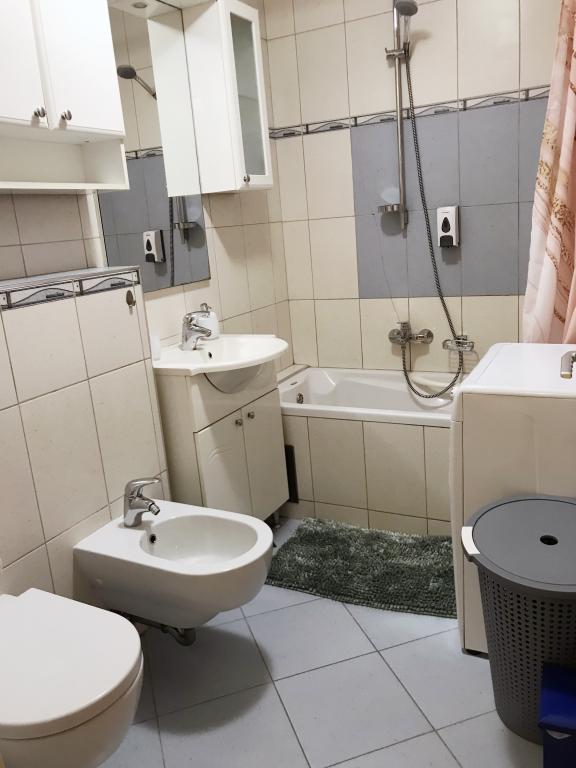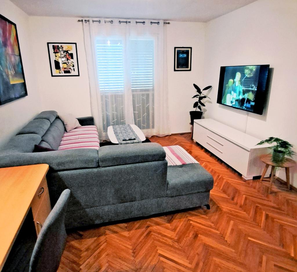 Un apartament confortabil și modern, într-o zonă liniștită a centrului orașului Pula — o alegere excelentă pentru cupluri, familii de până la 5 persoane sau călători de afaceri. Apartamentul are două dormitoare (dublu, cu aer condiționat și single), un living cu aer condiționat, cu un colț de lucru și o canapea pliabilă care poate fi transformată într-un pat pentru două persoane, dacă este necesar. Sunt disponibile o bucătărie complet utilată, o sufragerie, o baie cu cadă, o toaletă suplimentară și un balcon cu vedere la parc. Apartamentul are trei televizoare Smart (50", 43" și 55") și internet optic rapid, cu posibilitatea unei conexiuni prin cablu. Piața orașului și centrul vechi se află la doar 5 minute de mers pe jos, iar marea este la mai puțin de 2 km distanță. Parcarea este disponibilă în fața clădirii. Aici veți găsi combinația ideală de confort, echipamente moderne și o locație superbă pentru un sejur fără griji și explorarea orașului Pula.