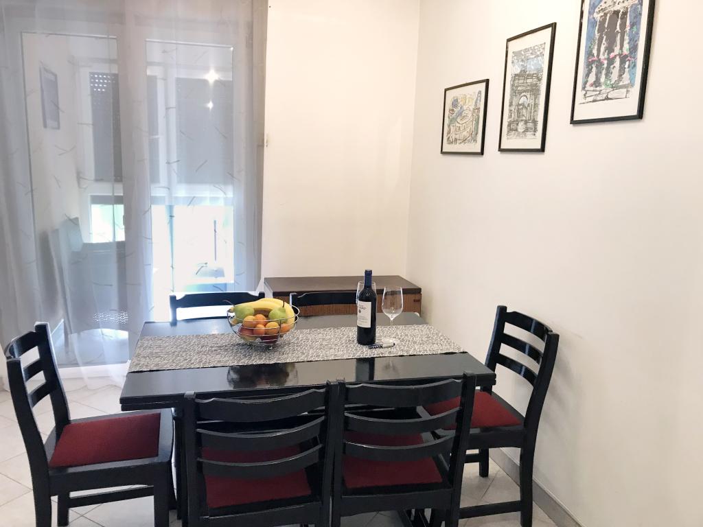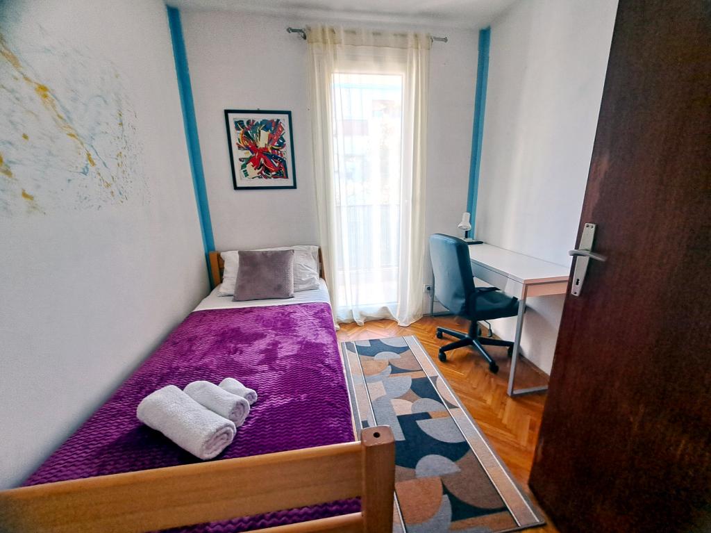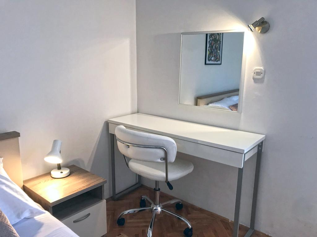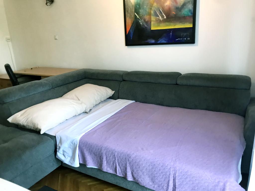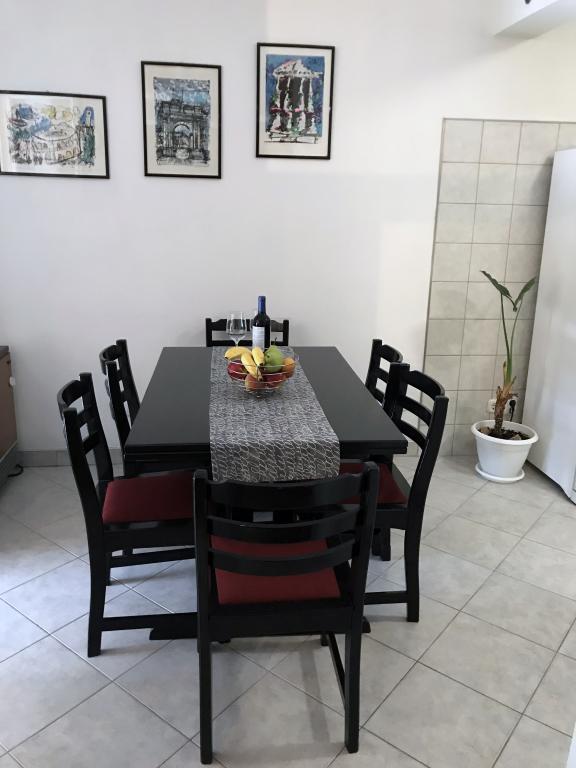 Un apartament confortabil și modern, într-o zonă liniștită a centrului orașului Pula — o alegere excelentă pentru cupluri, familii de până la 5 persoane sau călători de afaceri. Apartamentul are două dormitoare (dublu, cu aer condiționat și single), un living cu aer condiționat, cu un colț de lucru și o canapea pliabilă care poate fi transformată într-un pat pentru două persoane, dacă este necesar. Sunt disponibile o bucătărie complet utilată, o sufragerie, o baie cu cadă, o toaletă suplimentară și un balcon cu vedere la parc. Apartamentul are trei televizoare Smart (50", 43" și 55") și internet optic rapid, cu posibilitatea unei conexiuni prin cablu. Piața orașului și centrul vechi se află la doar 5 minute de mers pe jos, iar marea este la mai puțin de 2 km distanță. Parcarea este disponibilă în fața clădirii. Aici veți găsi combinația ideală de confort, echipamente moderne și o locație superbă pentru un sejur fără griji și explorarea orașului Pula.