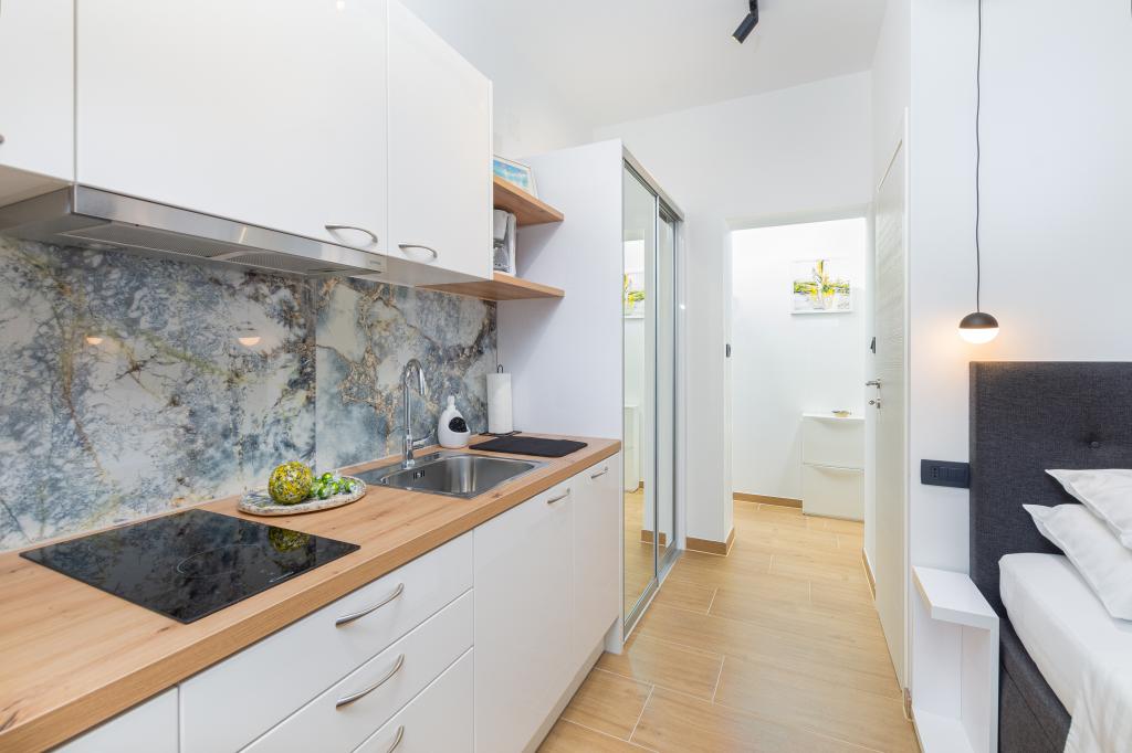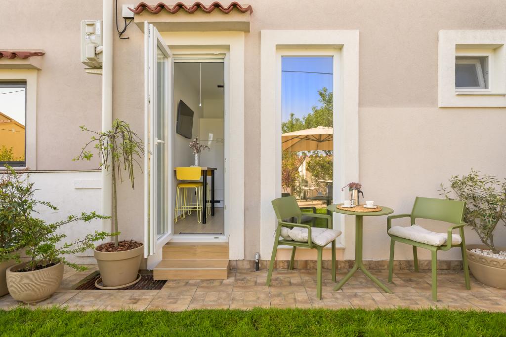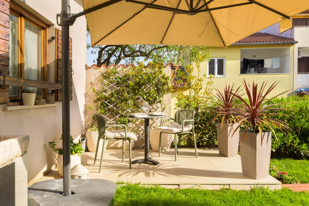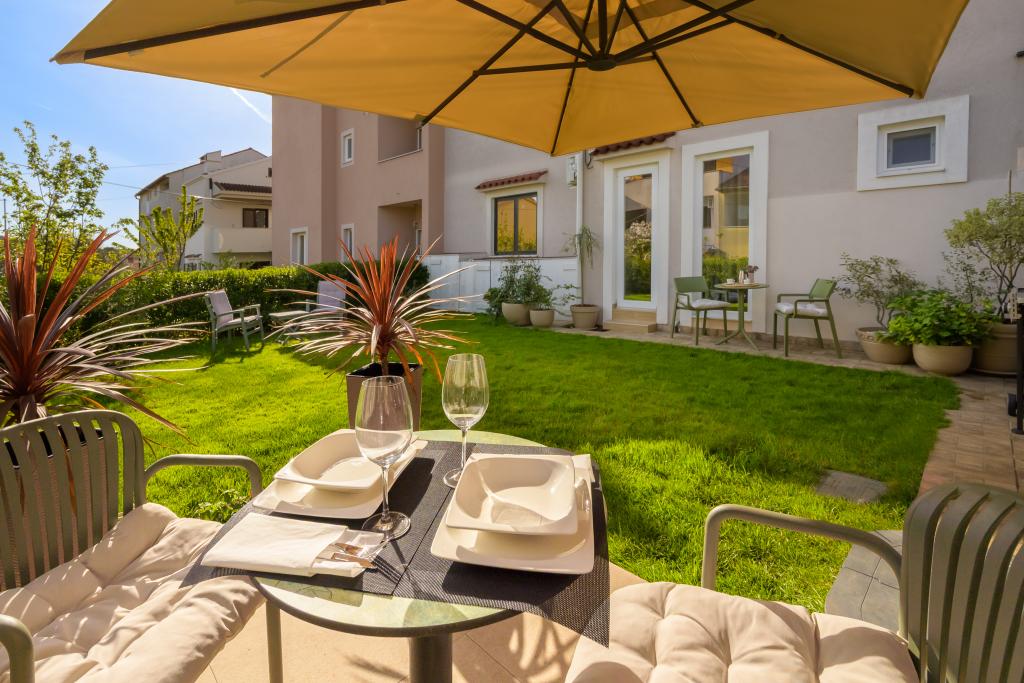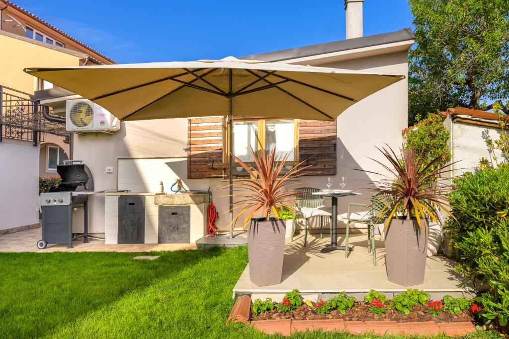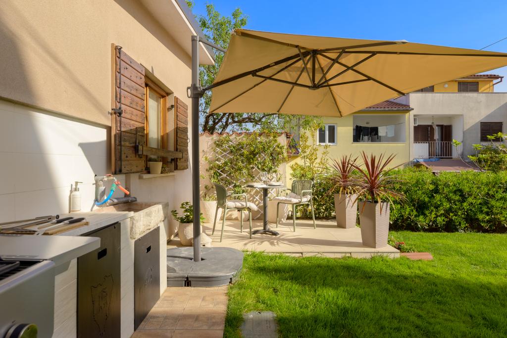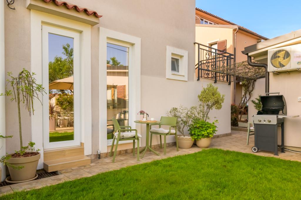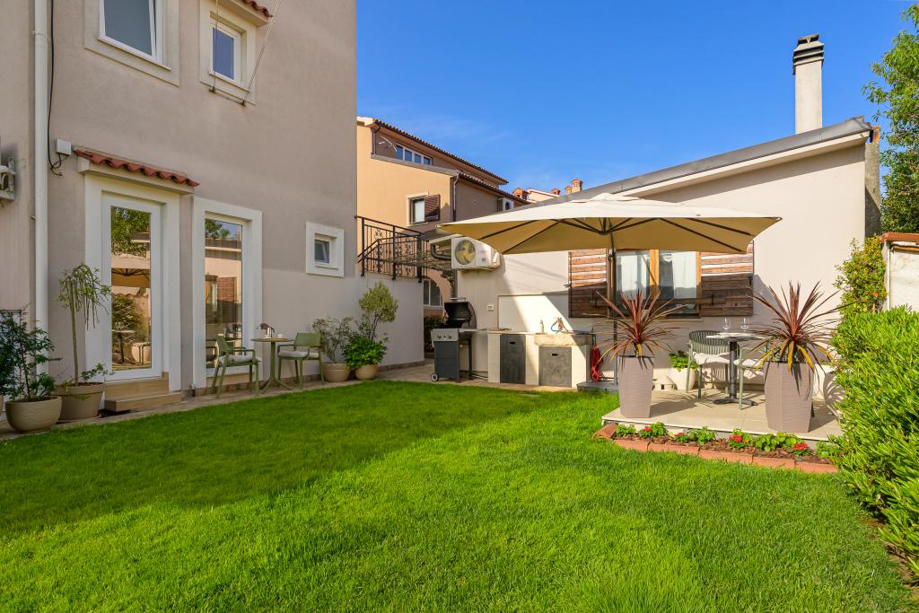 Apartamentul este situat la parterul unei case de familie și este închiriat exclusiv ca unic apartament. Apartamentul este nou, complet utilat... mașină de spălat vase, cuptor, aparat de cafea, prăjitor de pâine, fierbător, mașină de spălat și uscător, tacâmuri... Fiecare detaliu din apartament a fost decorat cu grijă și dragoste pentru a vă oferi confort maxim și pentru a vă permite să vă bucurați de vacanță. Apartamentul are o terasă verde frumoasă, înconjurată de un gard viu verde care vă oferă intimitate și liniște. Prima cafea de dimineață va avea un gust mult mai bun pe iarba verde și o oază de liniște cu cântecul păsărilor și ciripitul greierilor. Când vi se face foame, aveți și un grătar nou și mare, pentru a pregăti mese delicioase. Mașina dvs. este în siguranță în parcarea gratuită din interiorul casei. Apartamentul este situat într-o zonă liniștită a centrului orașului, înconjurat de case de familie. Toate obiectivele turistice ale orașului Pula, precum și centre comerciale, o farmacie, un spital, restaurante, cafenele, se află la 100 până la 900 m distanță și puteți vizita totul la o plimbare relaxantă, fără a fi nevoie să folosiți o mașină.