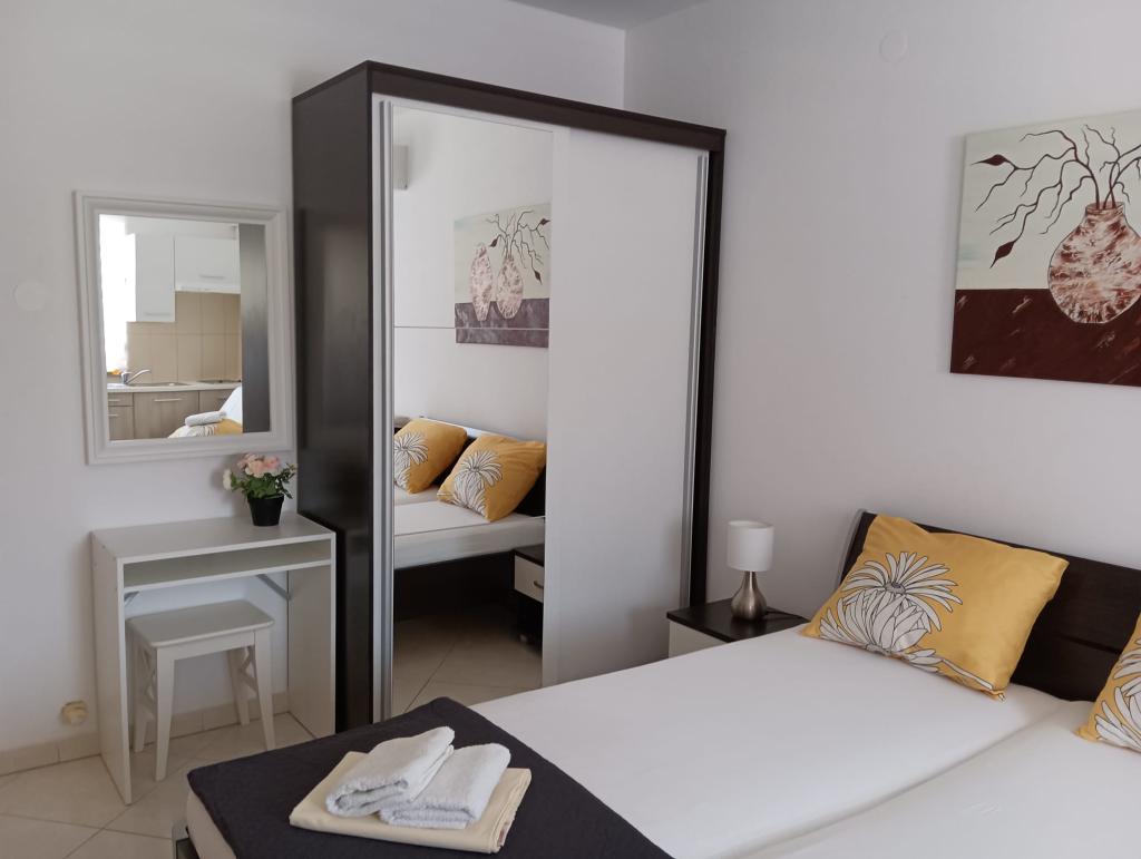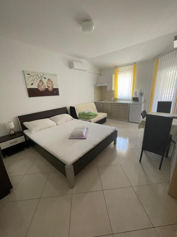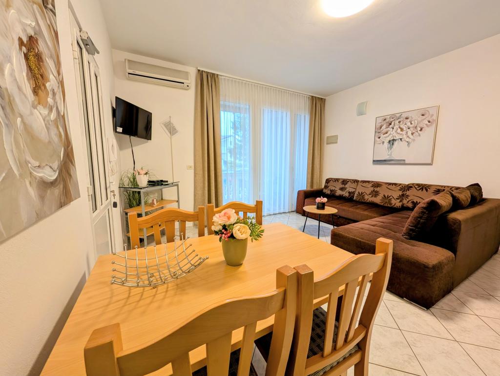 Novogradeni și mobilate apartamente în golf de nisip. Suntem la 5 minute de mers pe jos de plaja. Prin Pula sunt la 3 km distanță, dar avem o stație de autobuz la 50 de metri distanță. În apropiere sunt multe restaurante, parc acvatic și alte forme de divertisment.